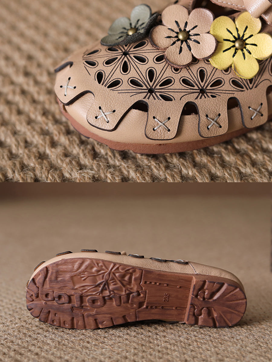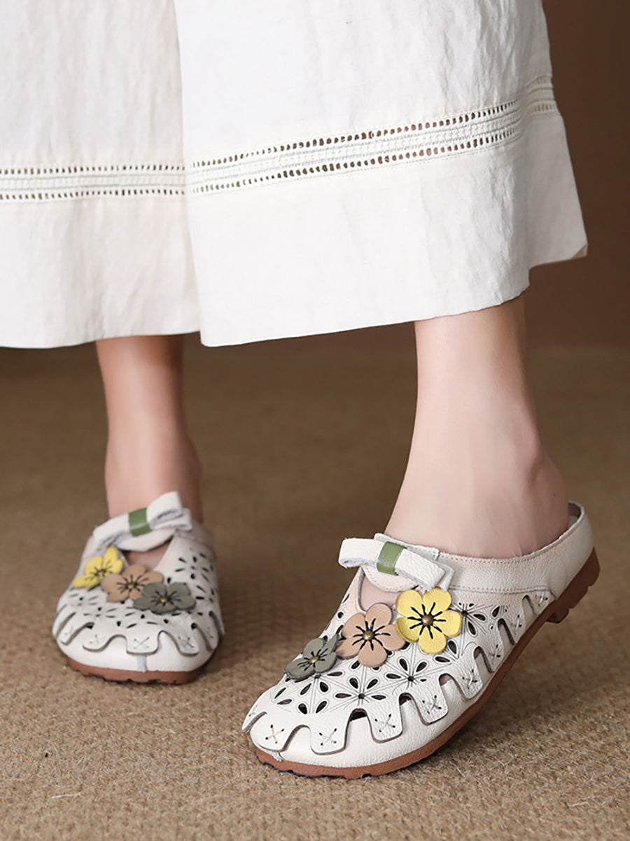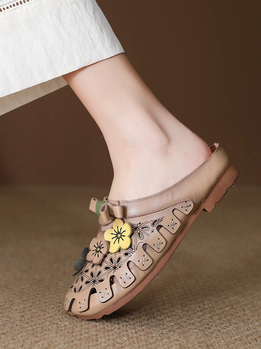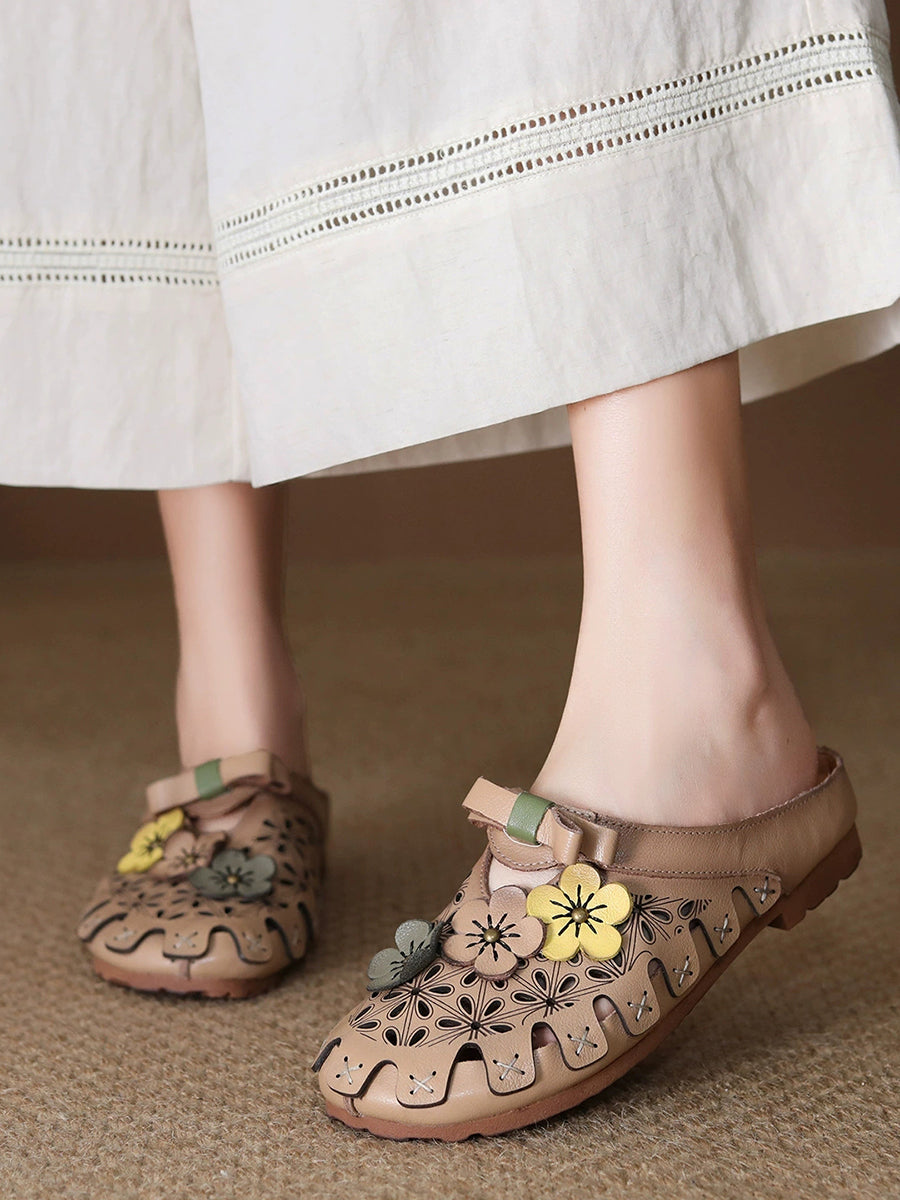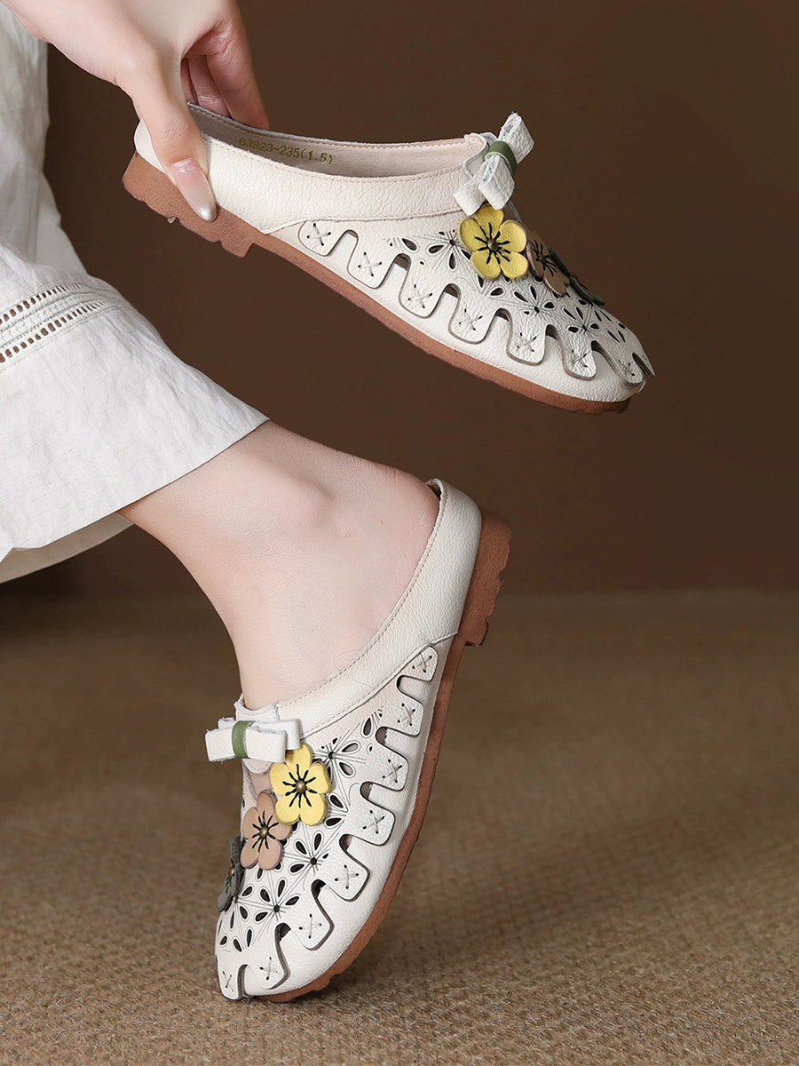 Pantuflas de verano para mujer de piel auténtica con detalles de piel.