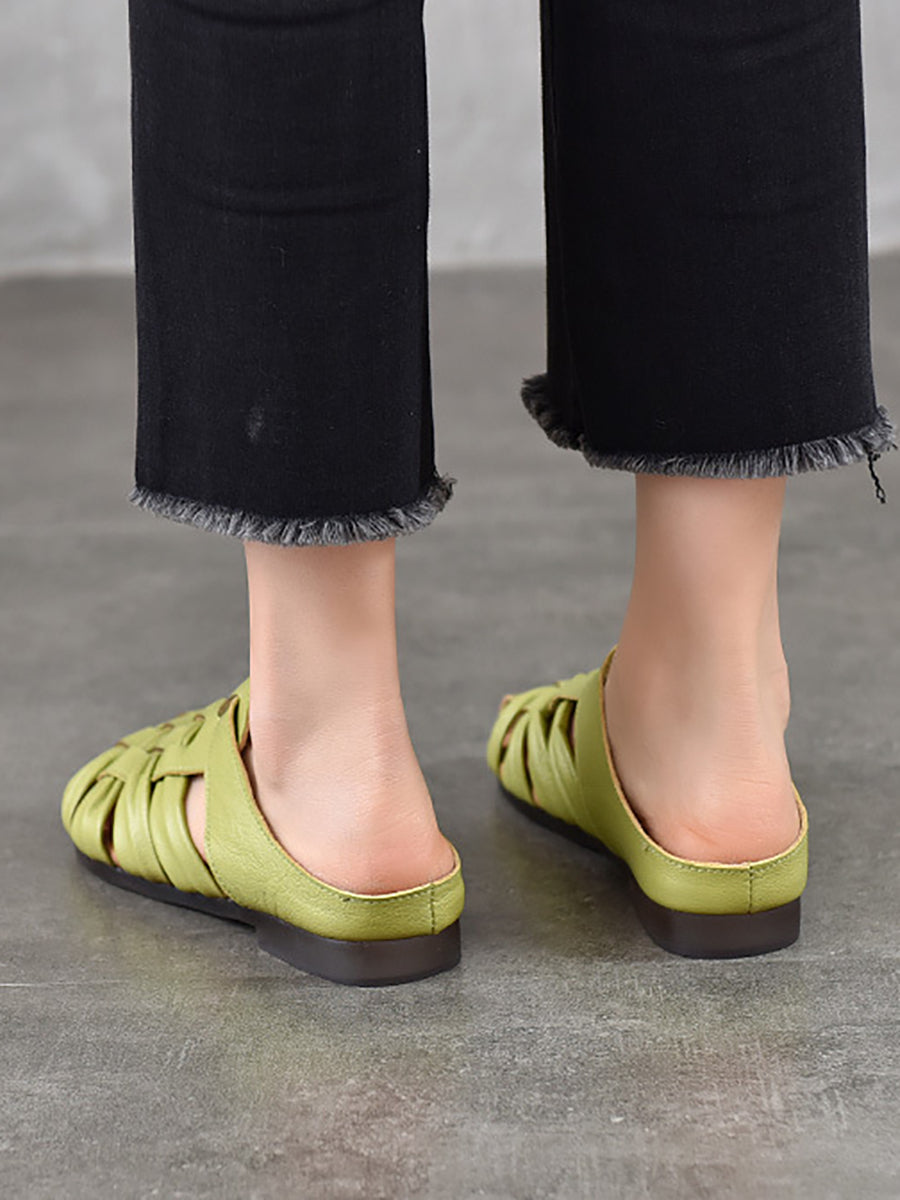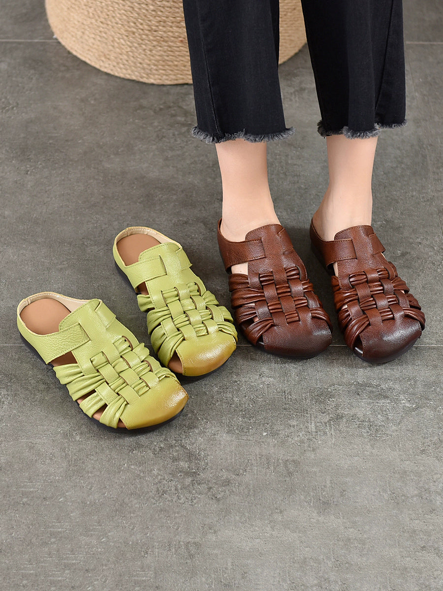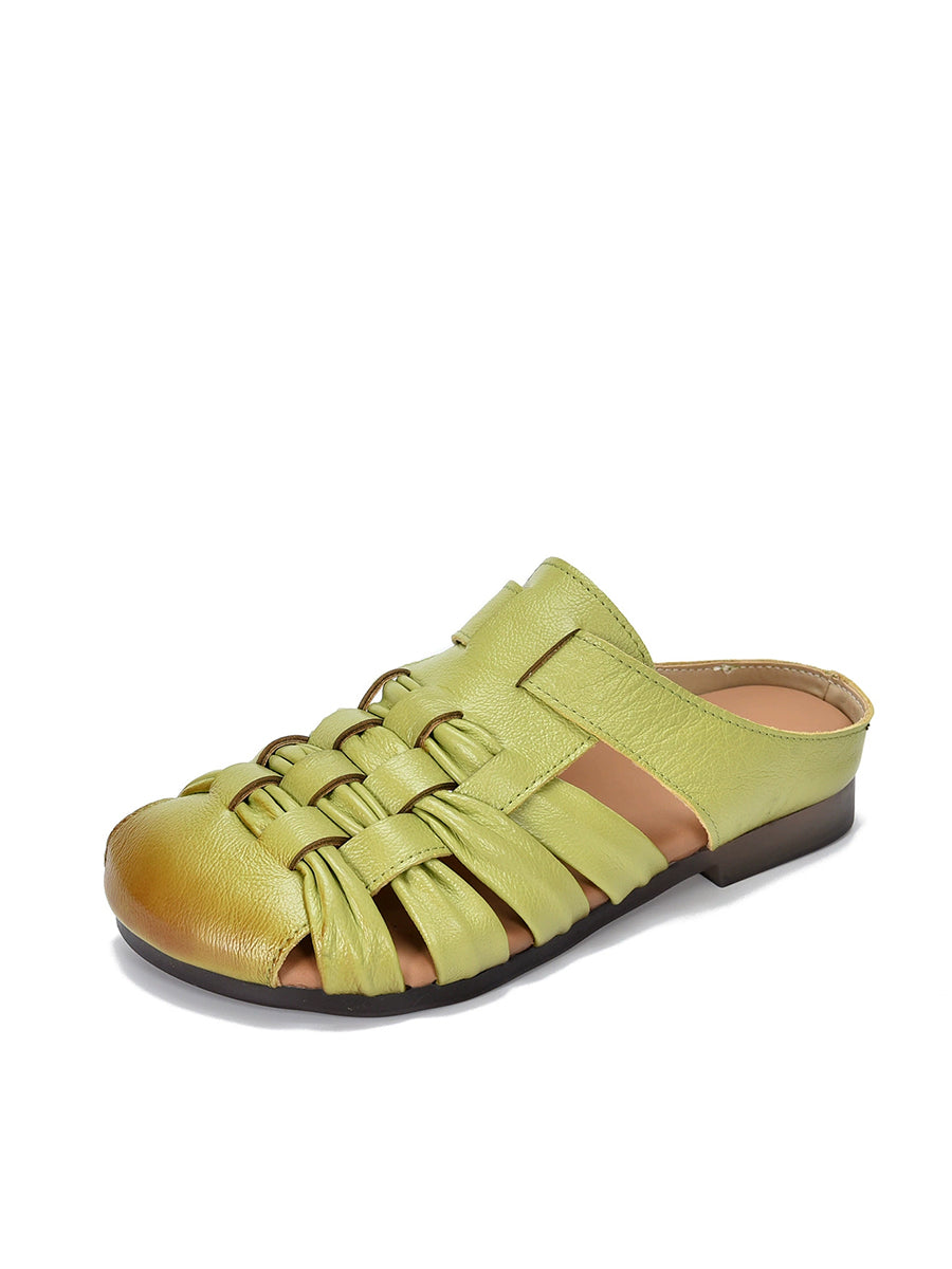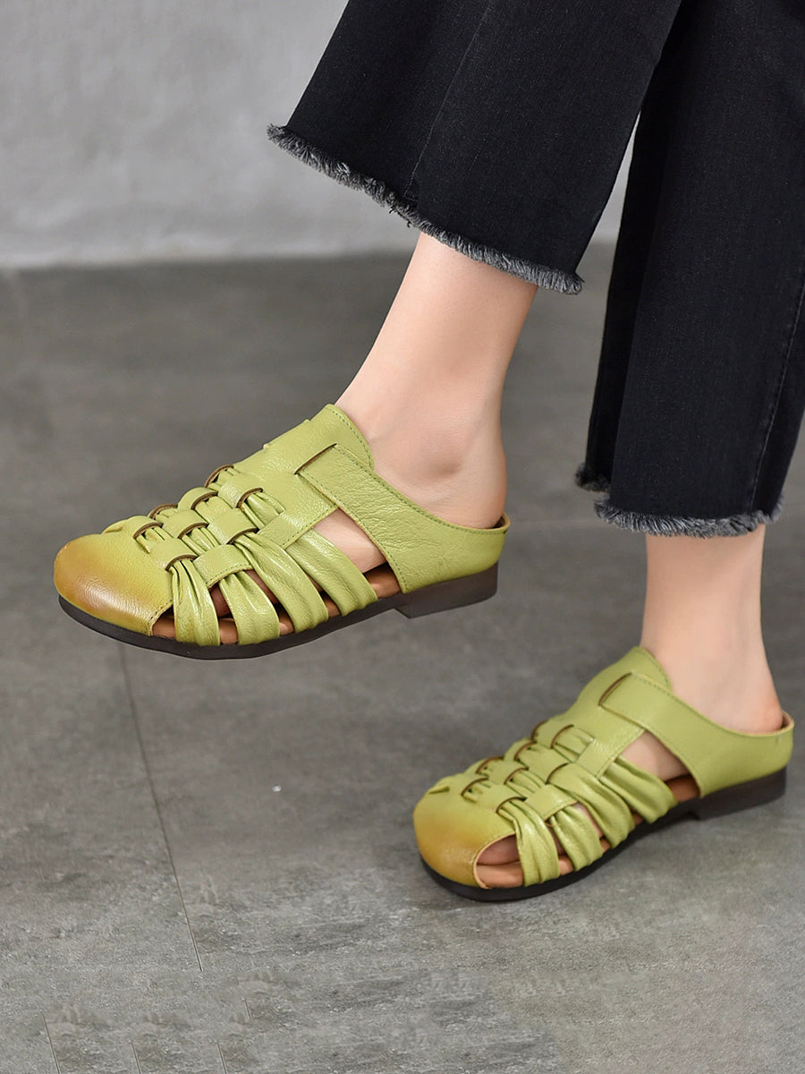 Pantuflas de verano de piel auténtica para mujer