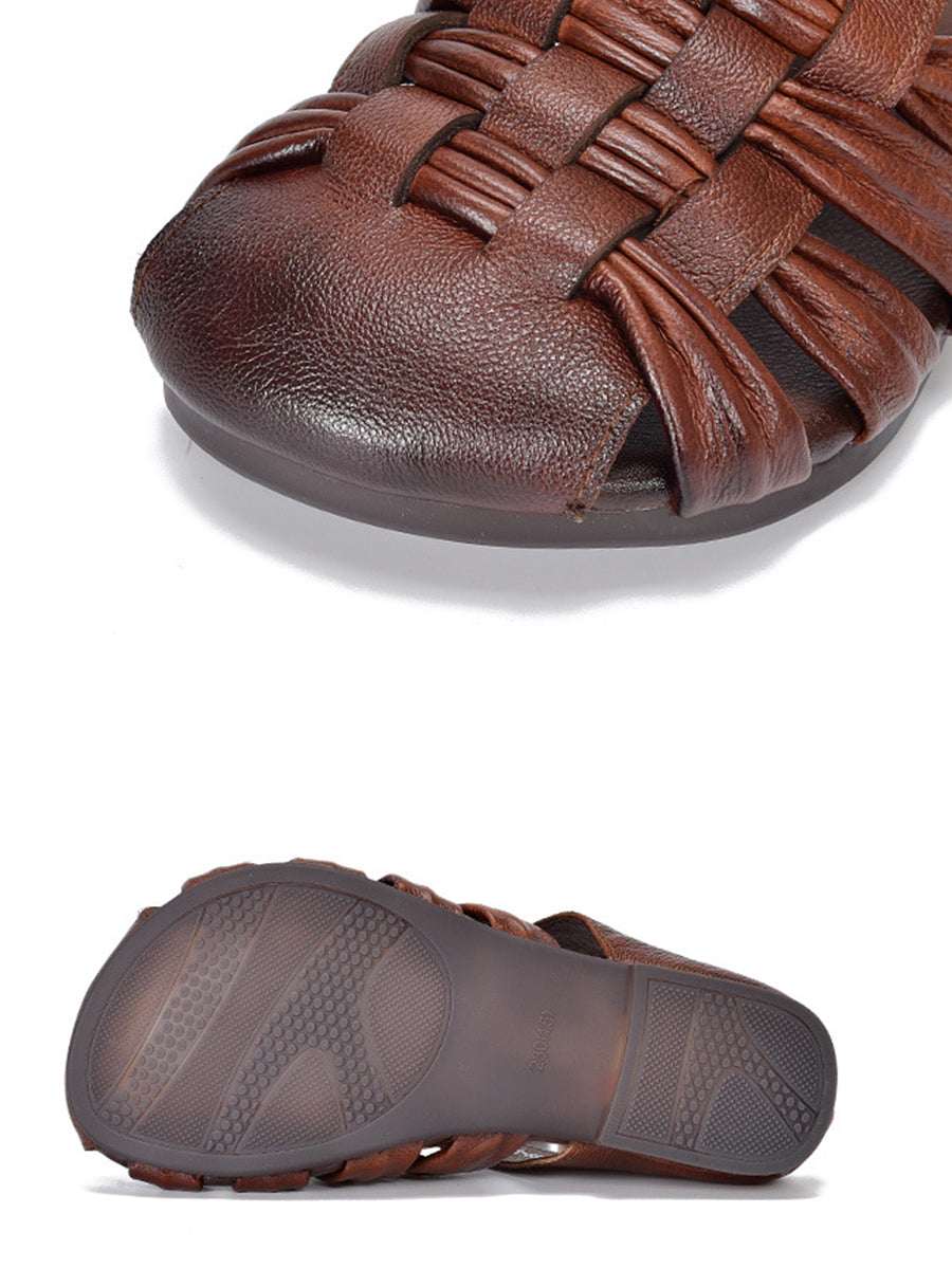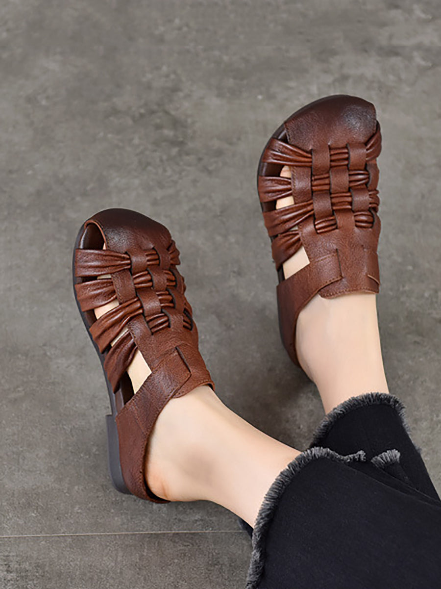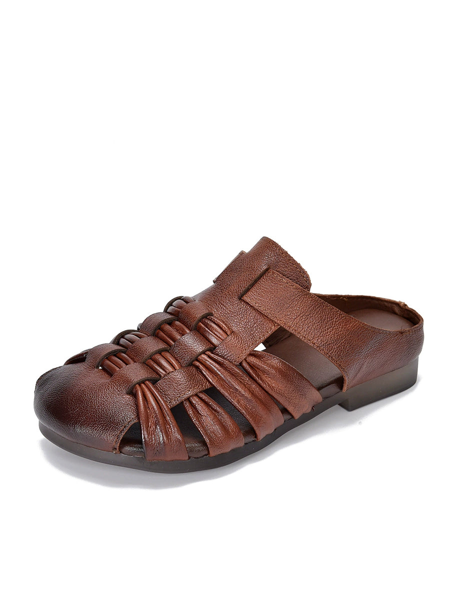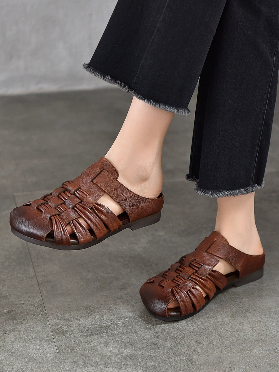 Pantuflas de verano de piel auténtica para mujer