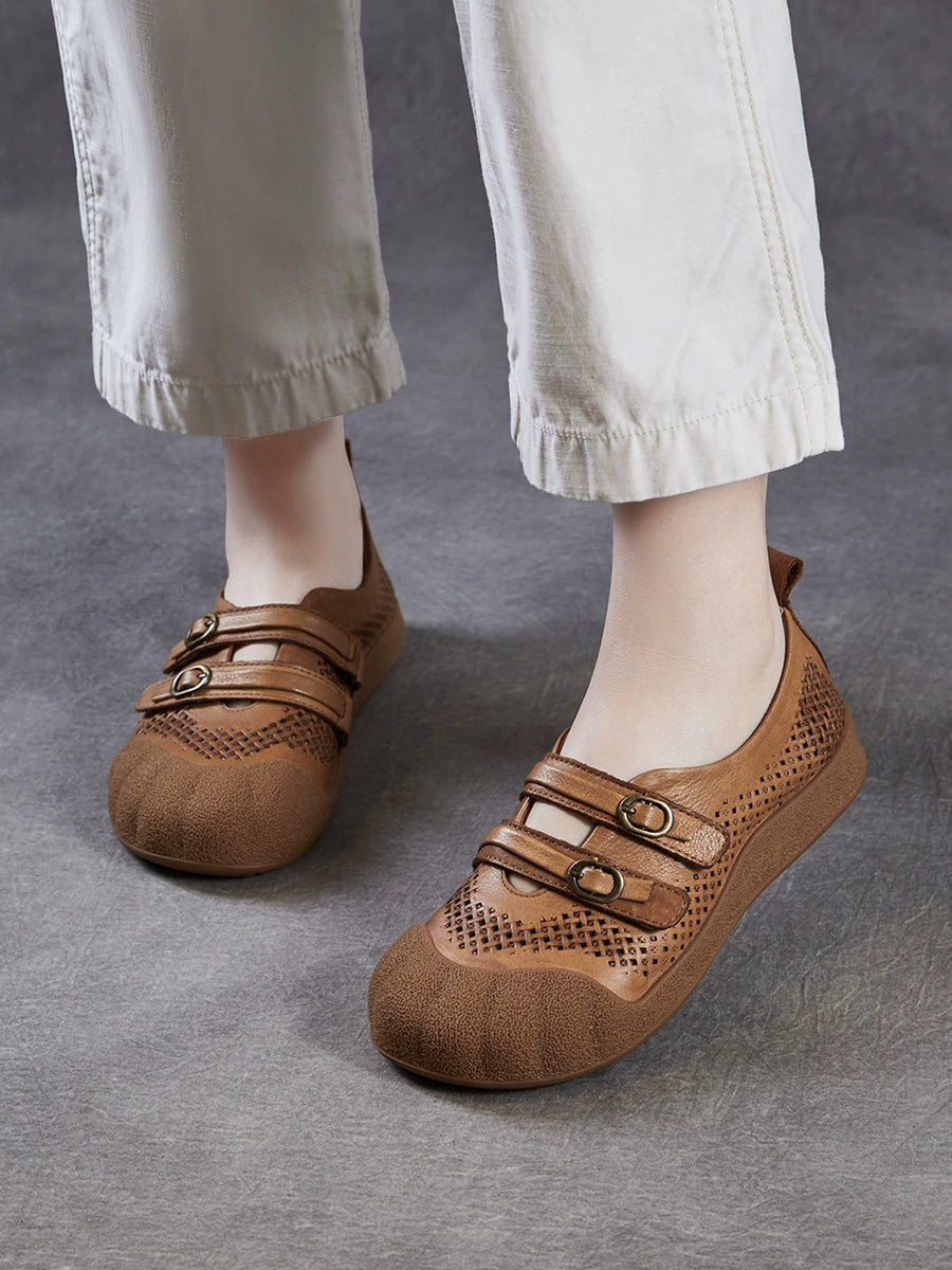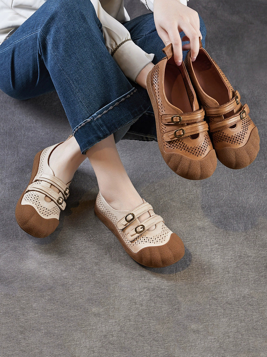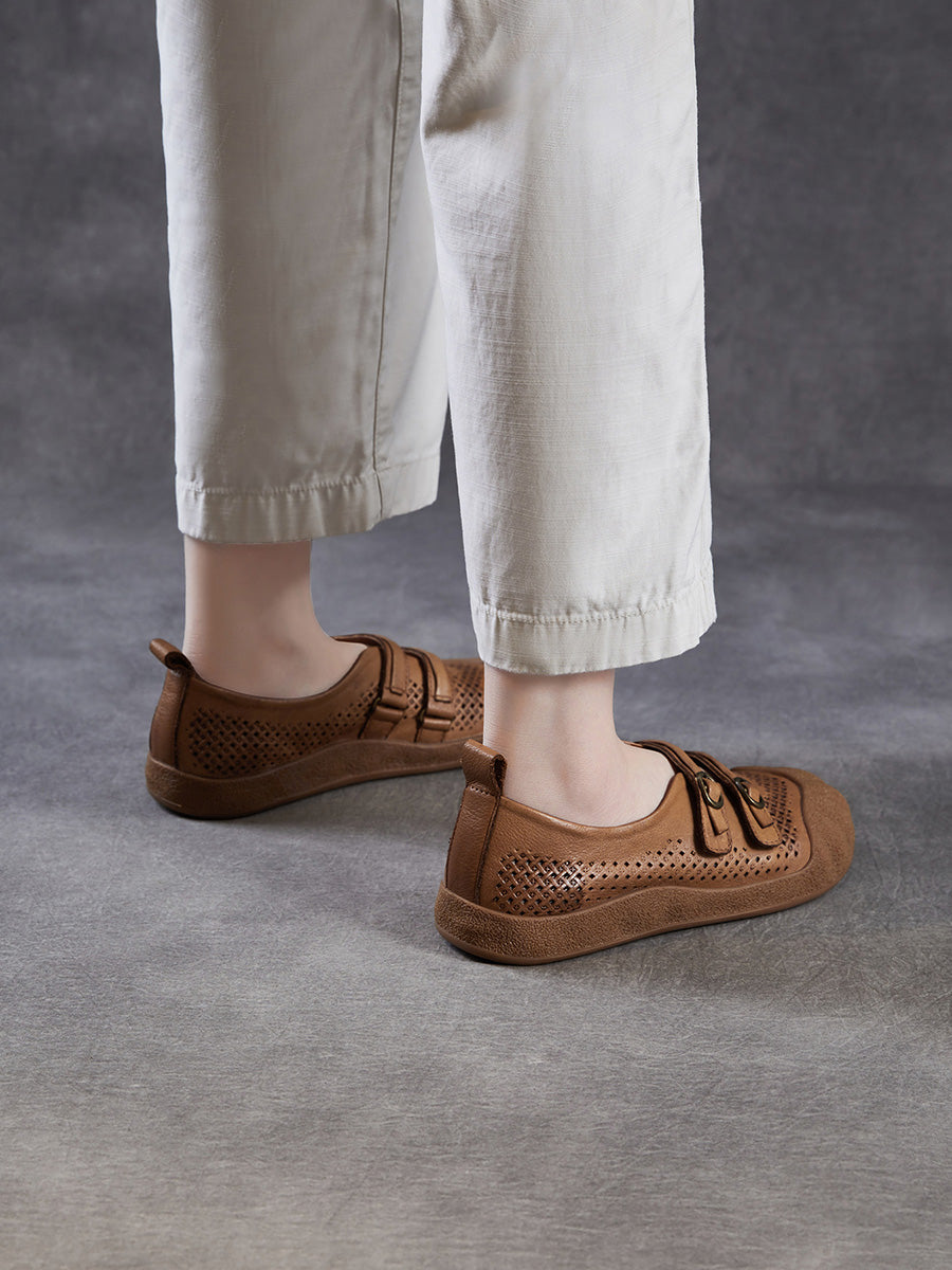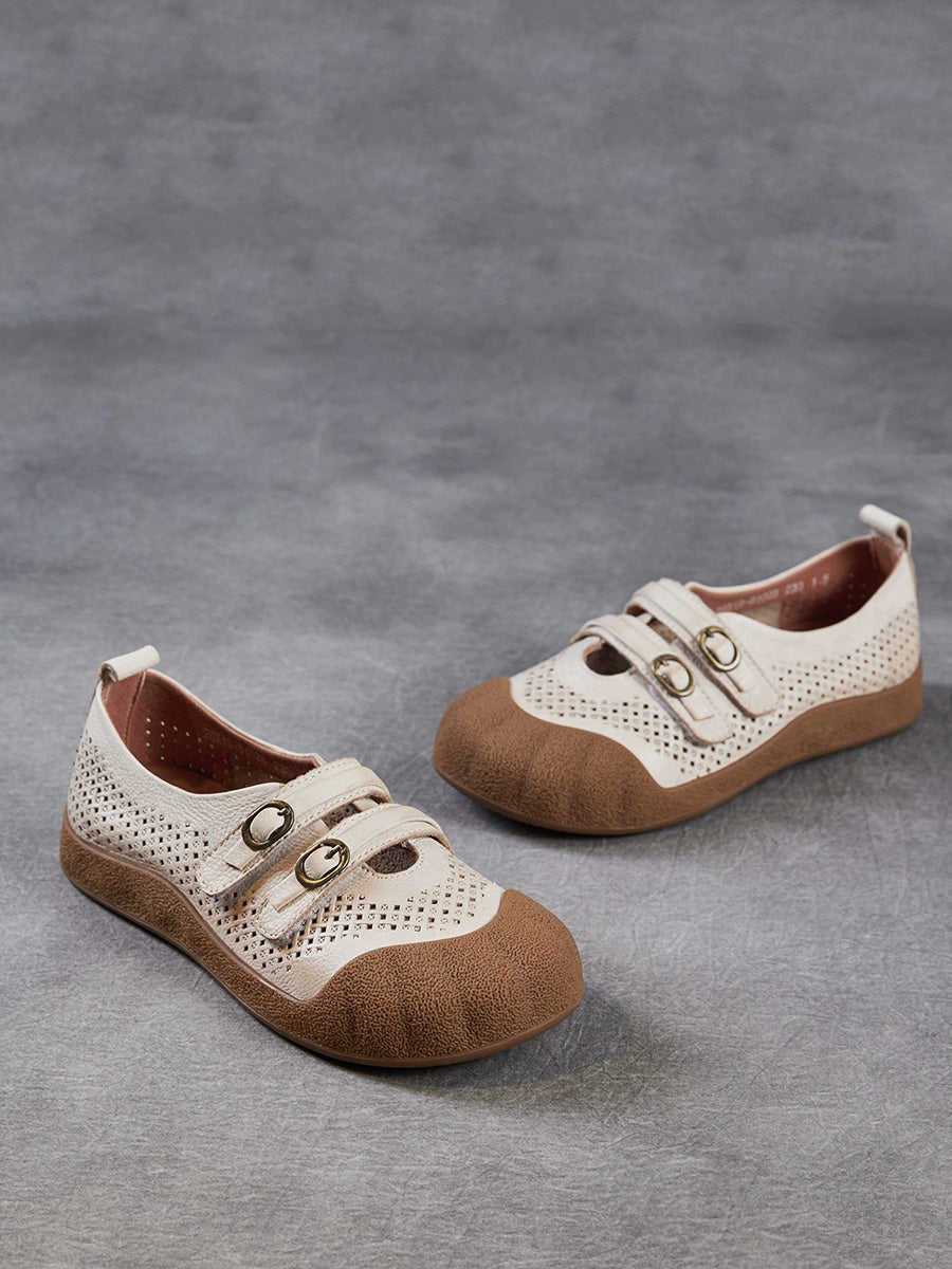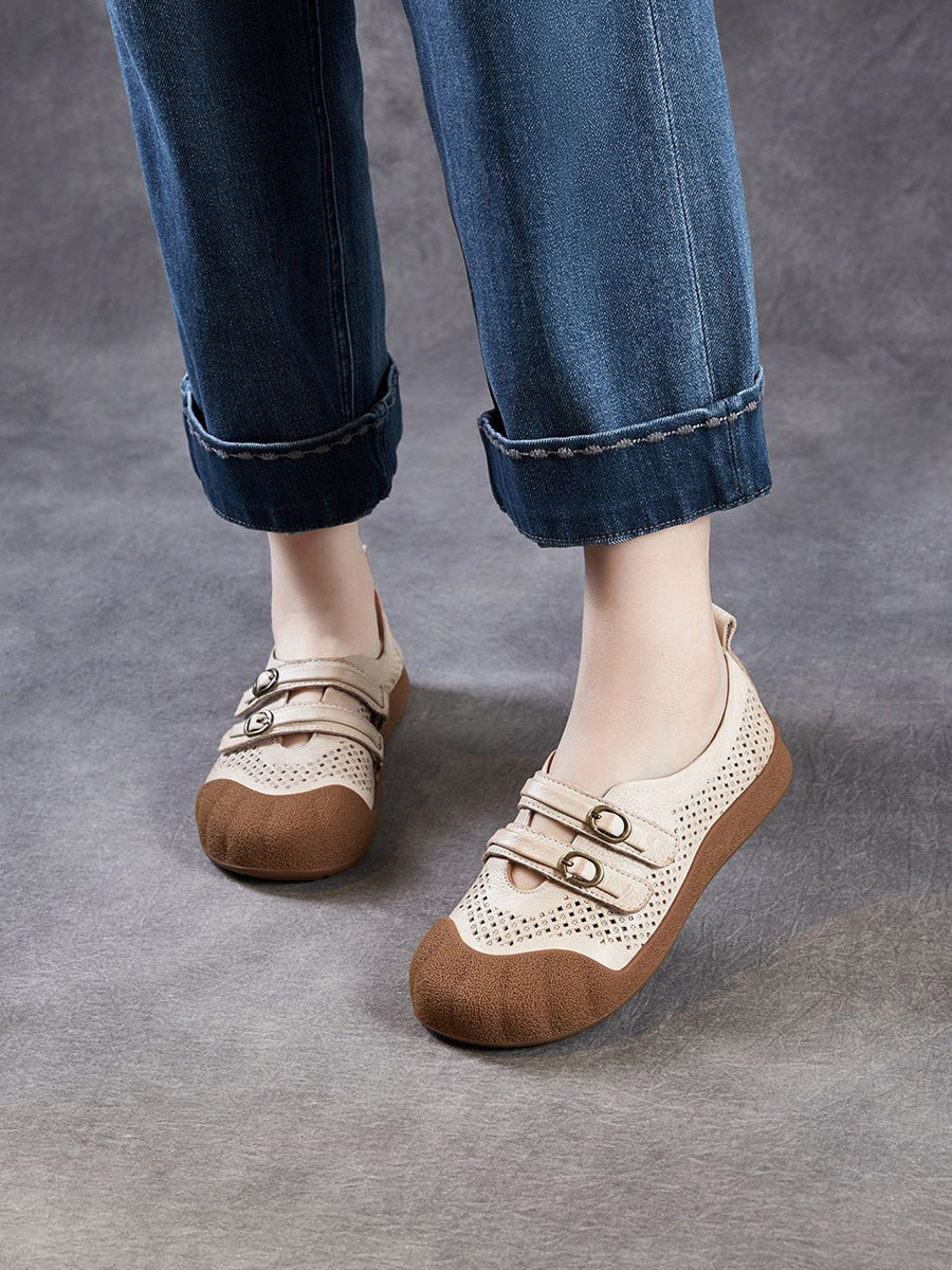 Sandalias de verano para mujer de piel auténtica con inserciones de cuero.