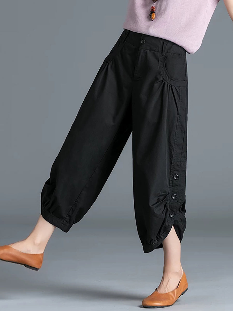 Pantalones capri de verano para mujer, 100 % algodón, color puro