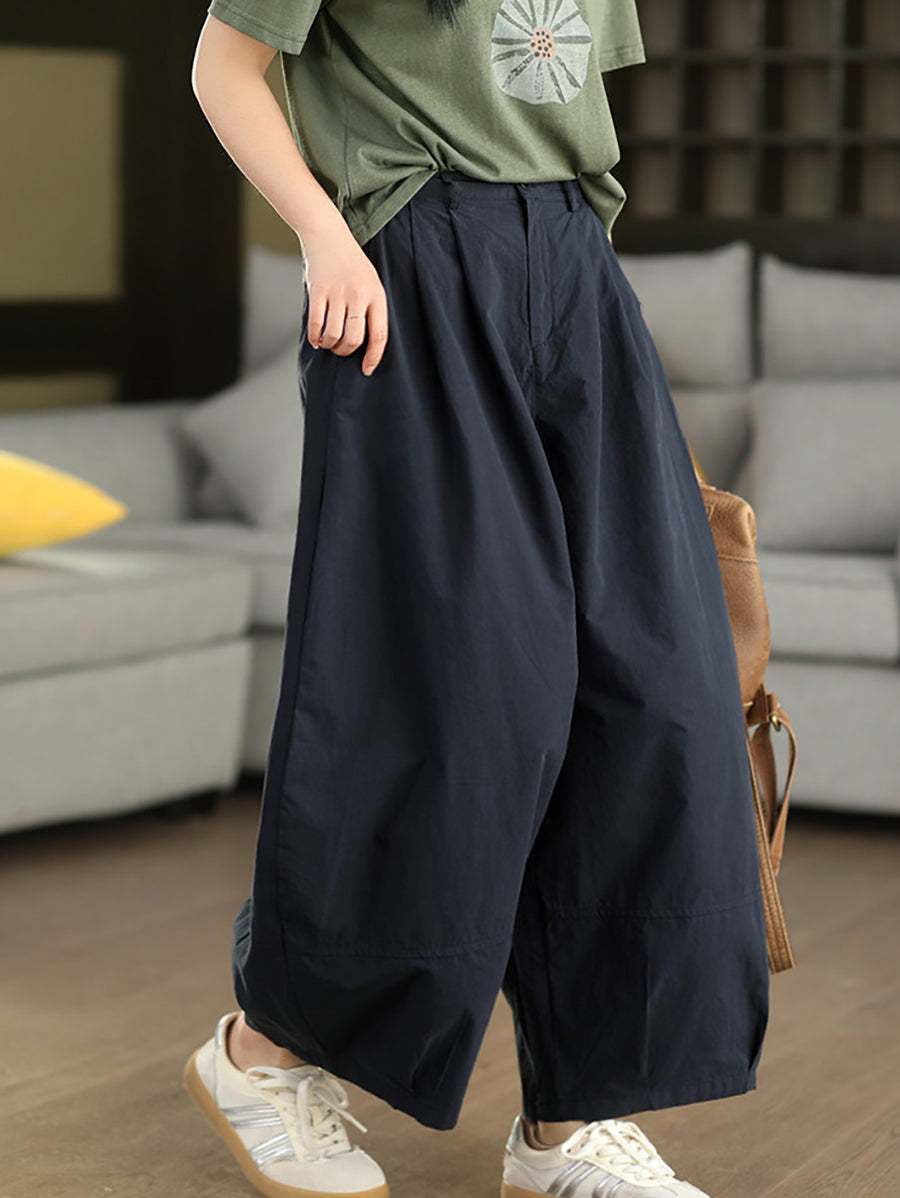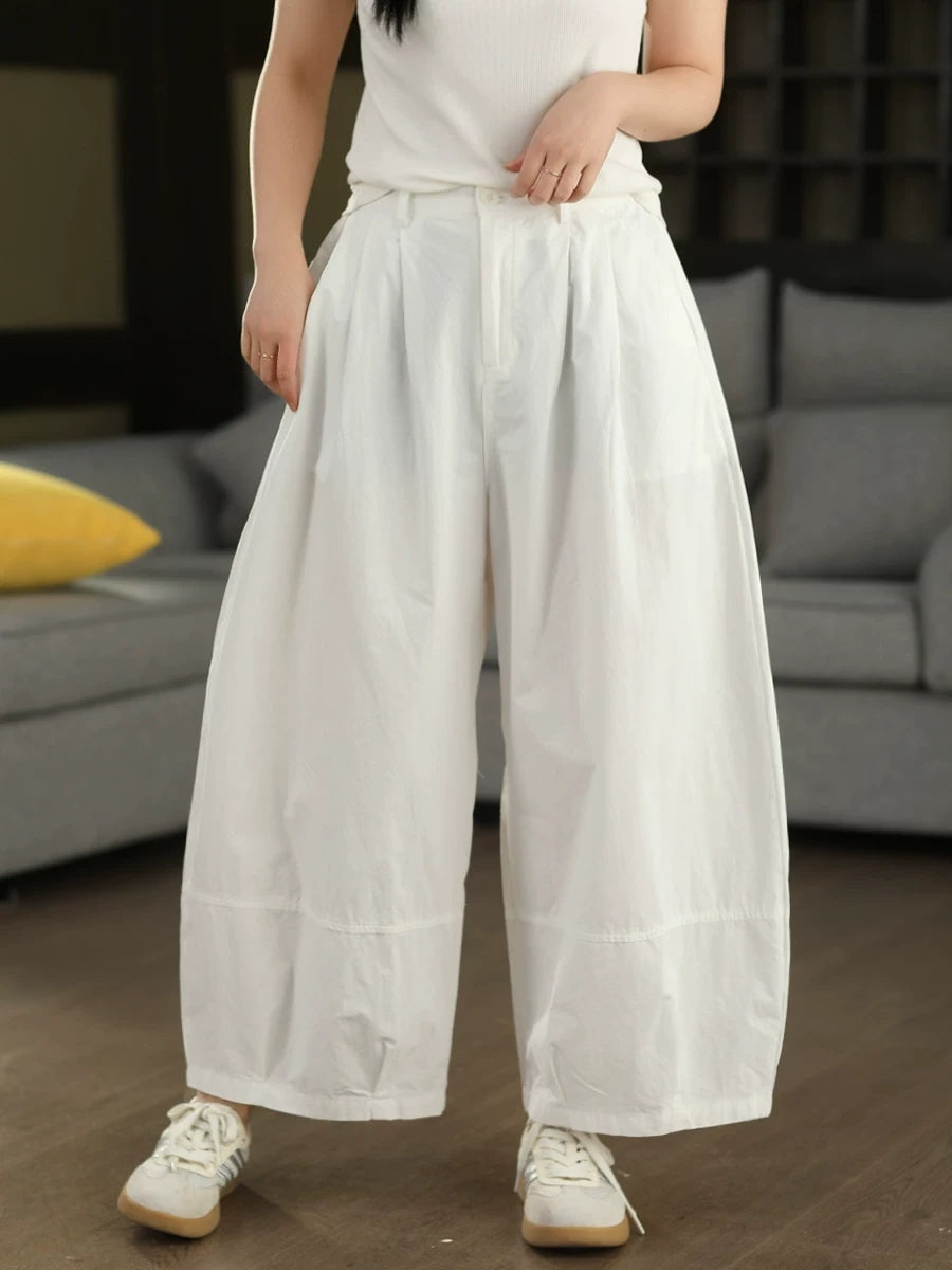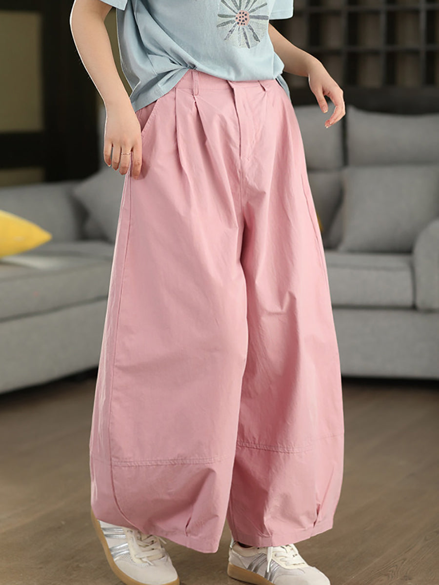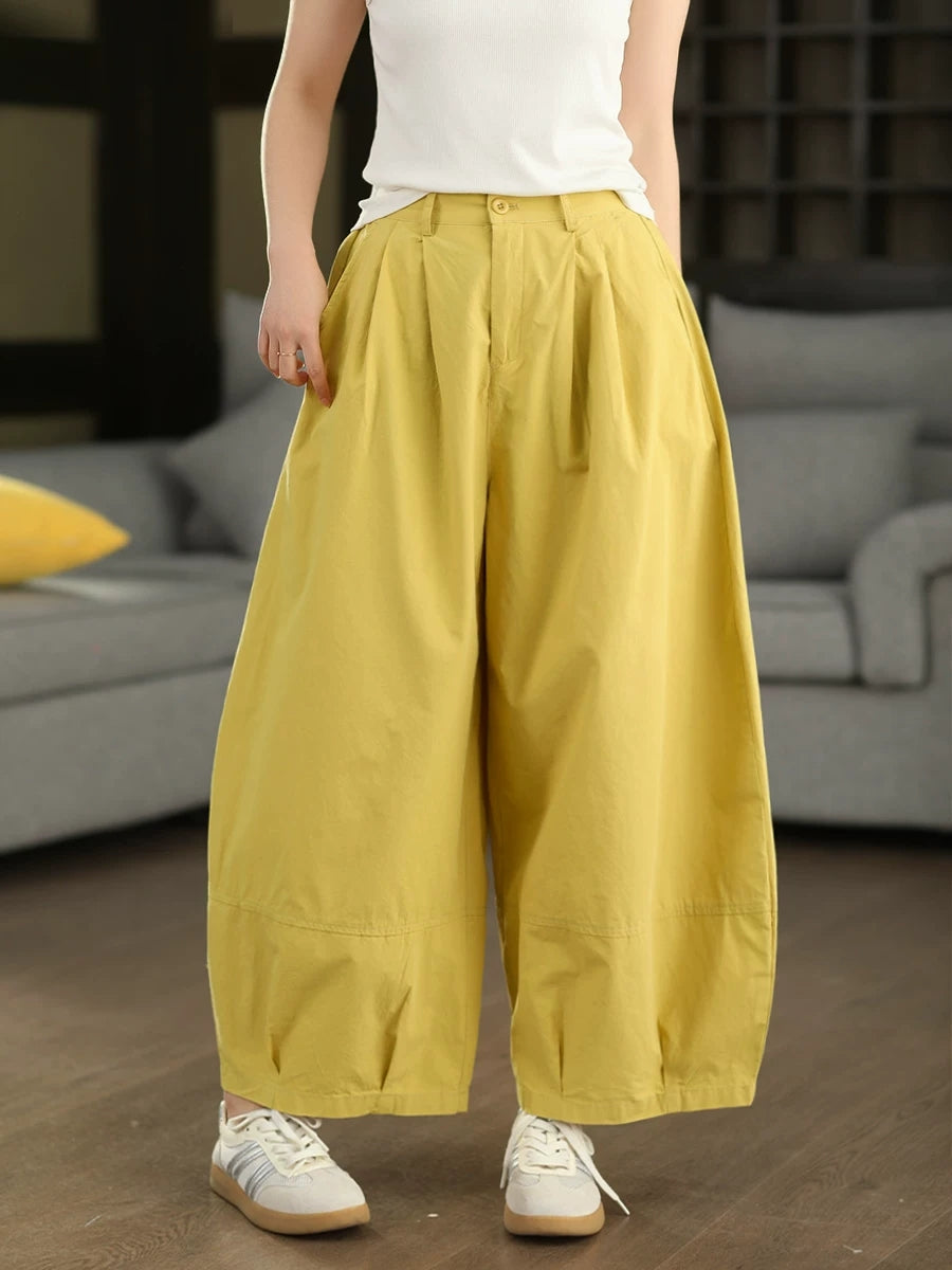 Pantalones de mujer de pierna ancha, color liso, 100% algodón, para verano.