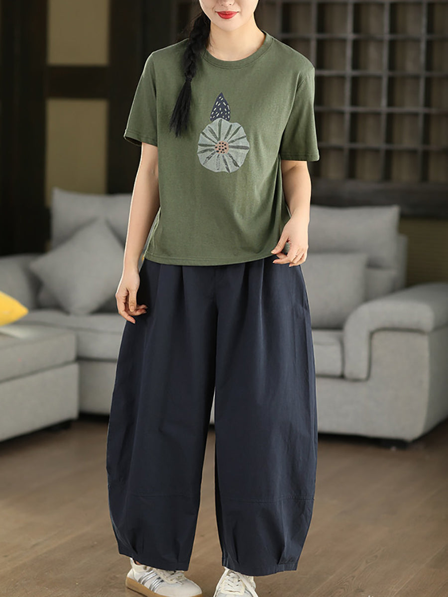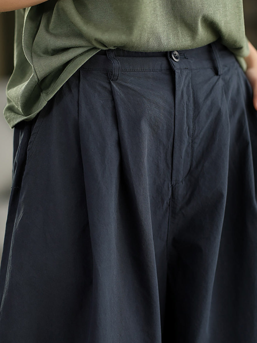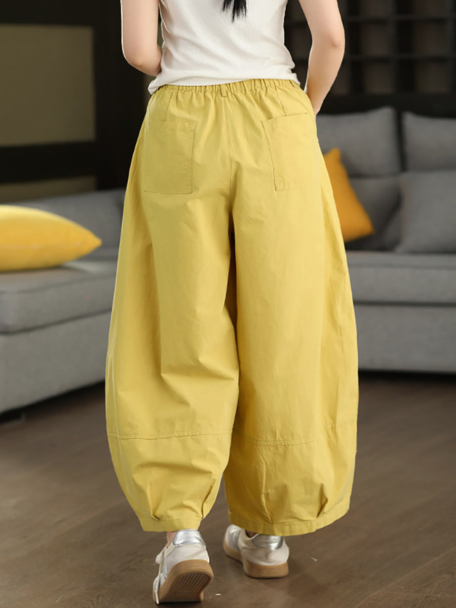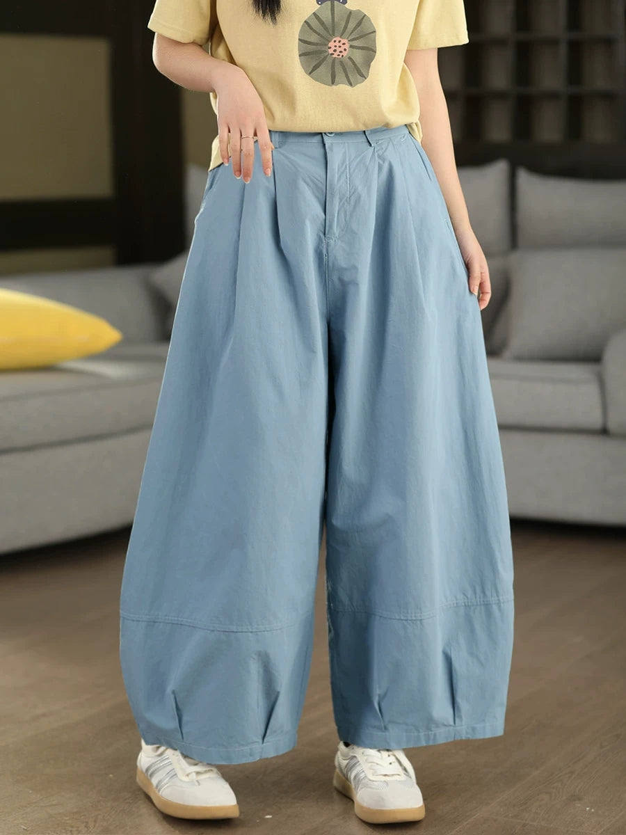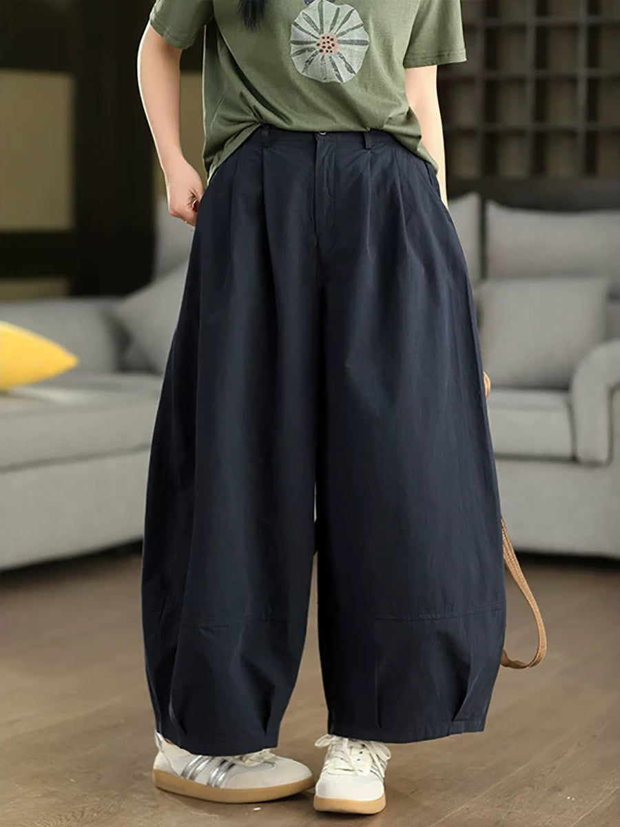 Pantalones de mujer de pierna ancha, color liso, 100% algodón, para verano.