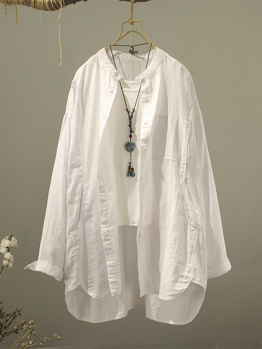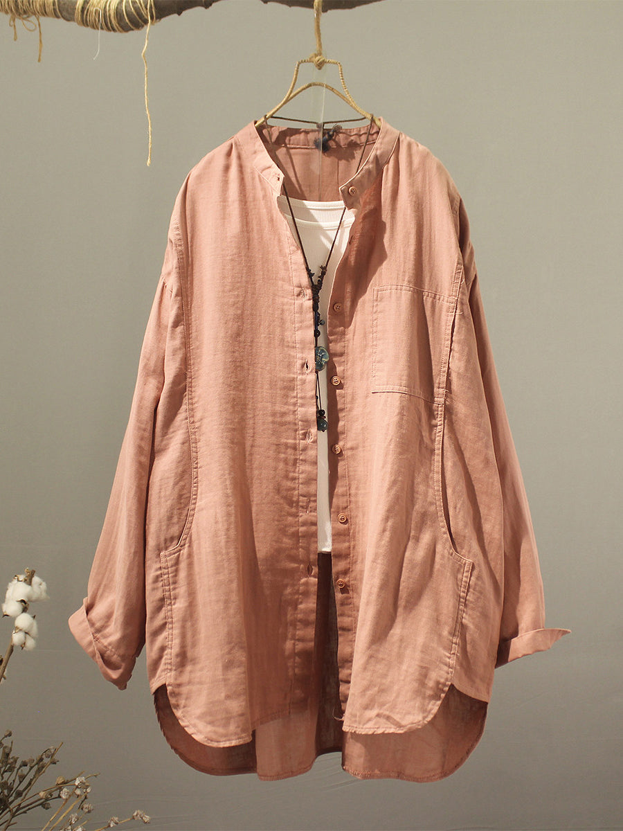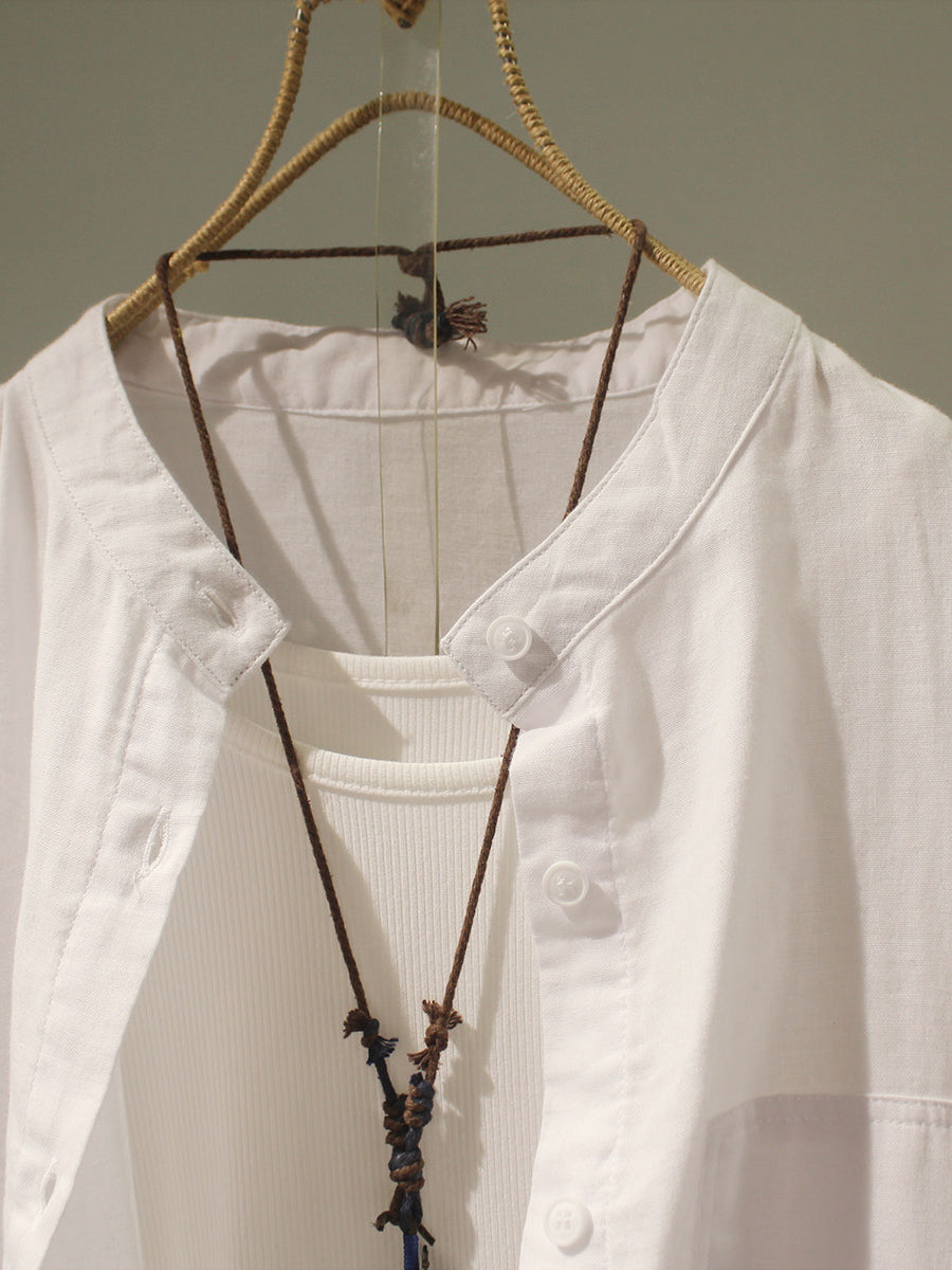 Camisa de verano para mujer de algodón liso con cuello alto.