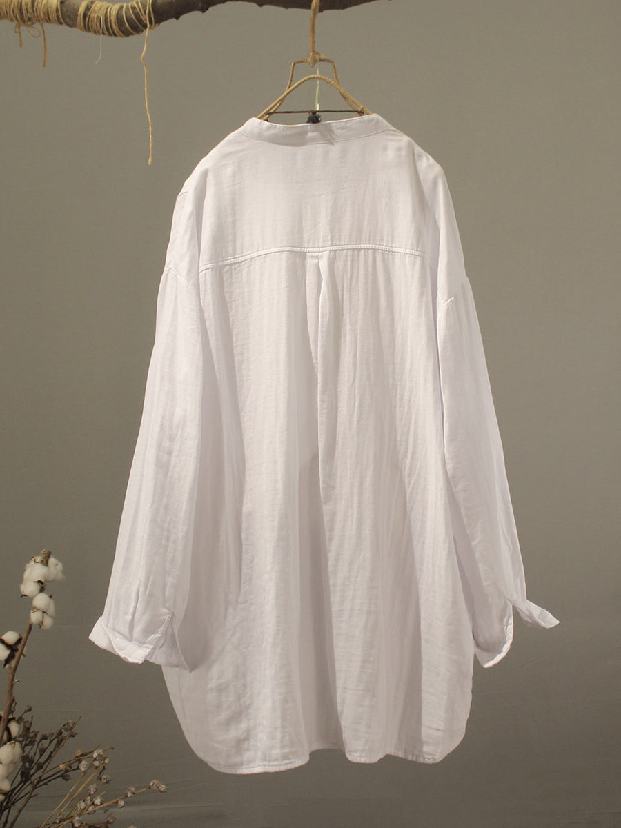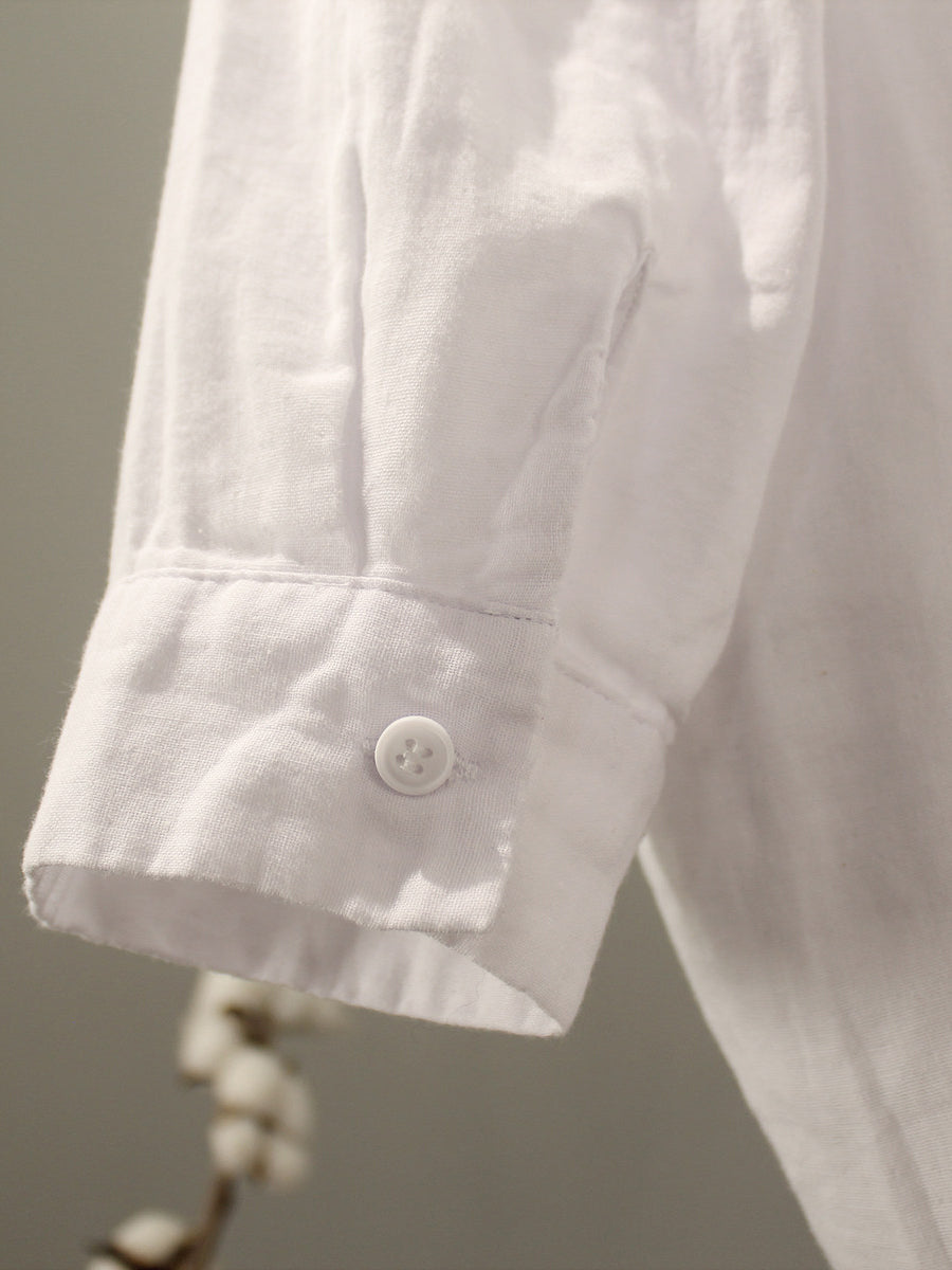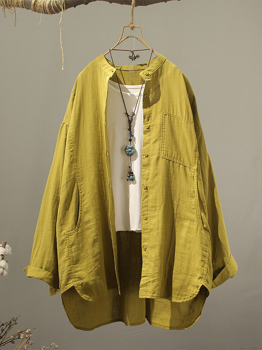 Camisa de verano para mujer de algodón liso con cuello alto.