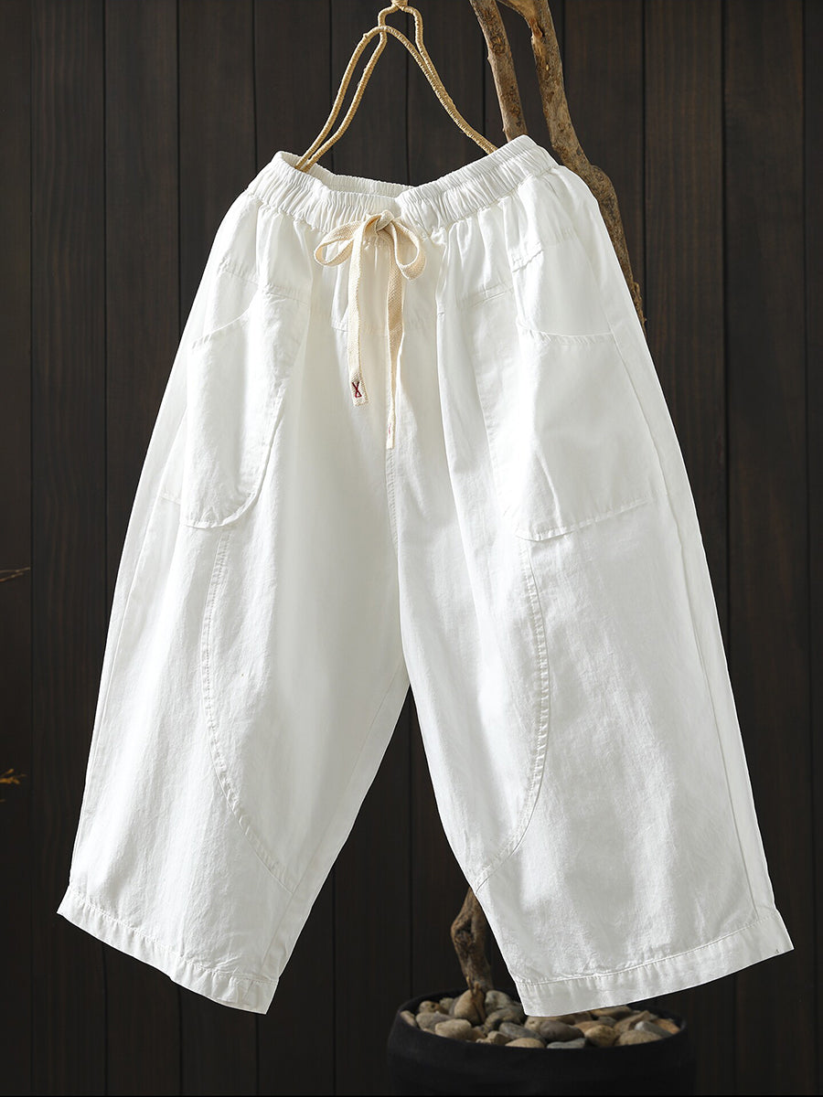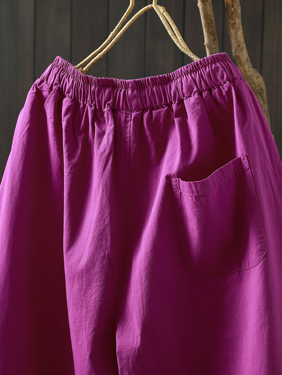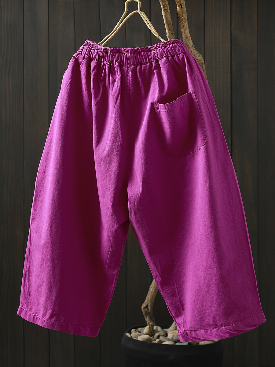 Pantalones de mujer de algodón de color liso y pierna ancha para verano.