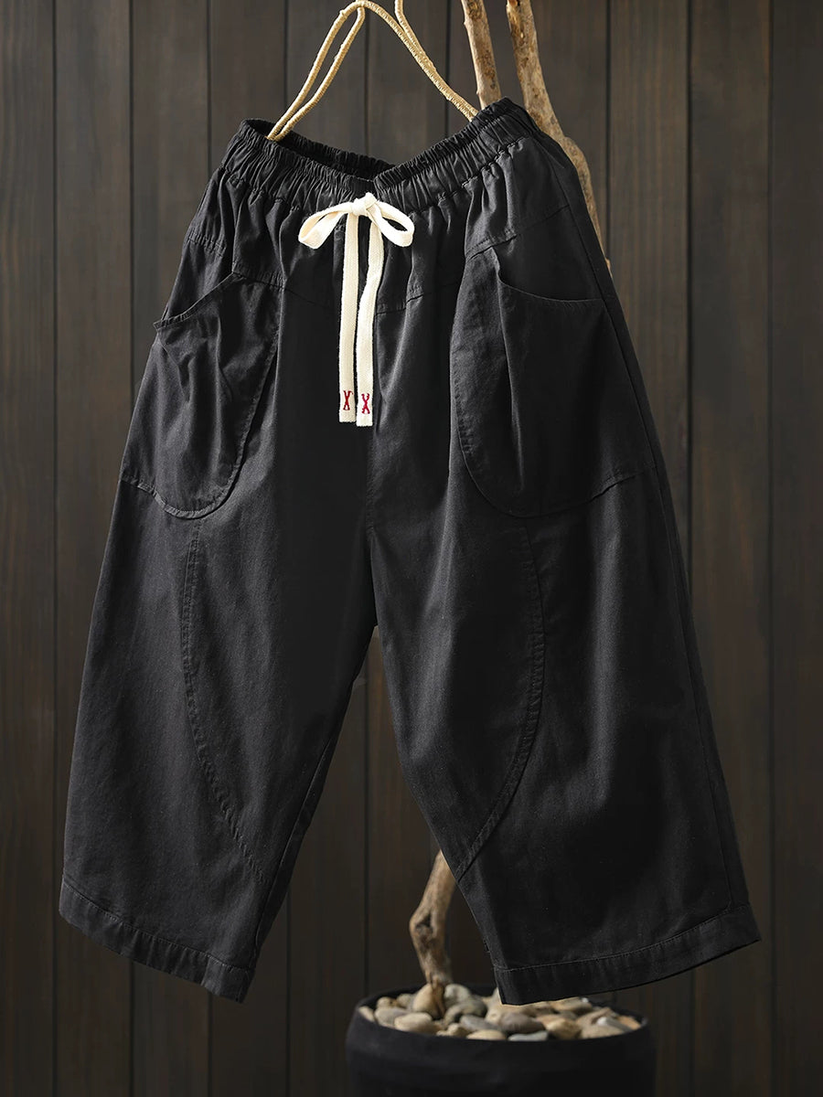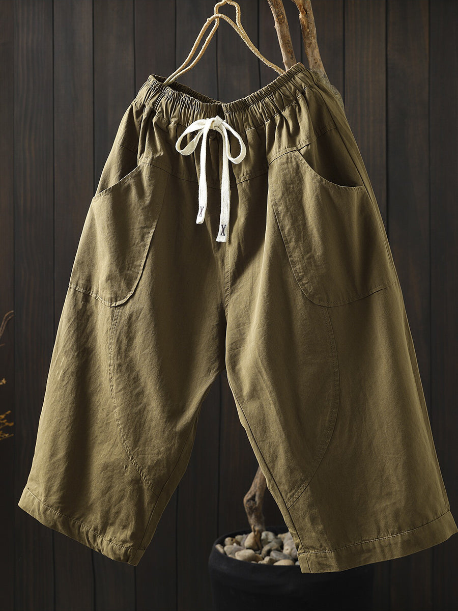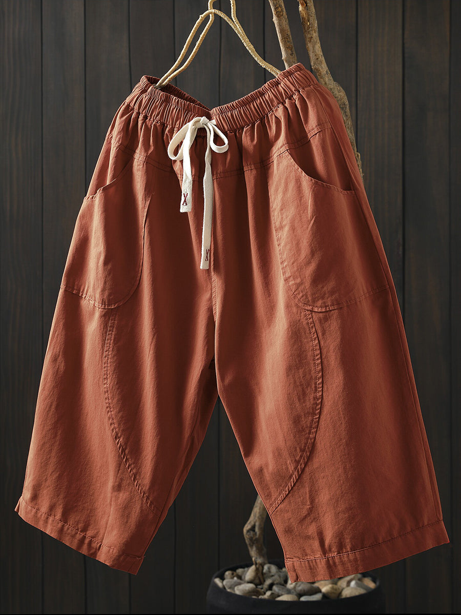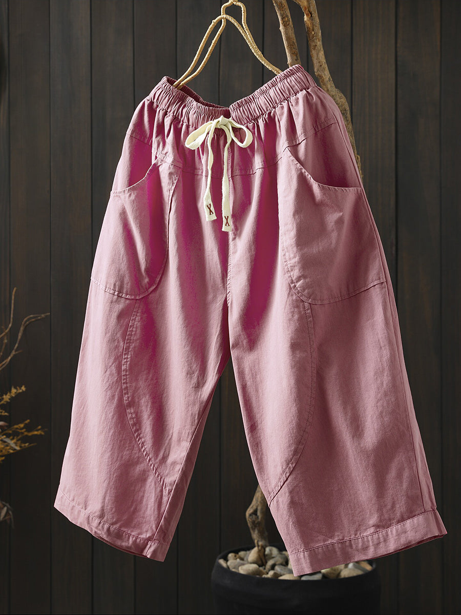 Pantalones de mujer de algodón de color liso y pierna ancha para verano.