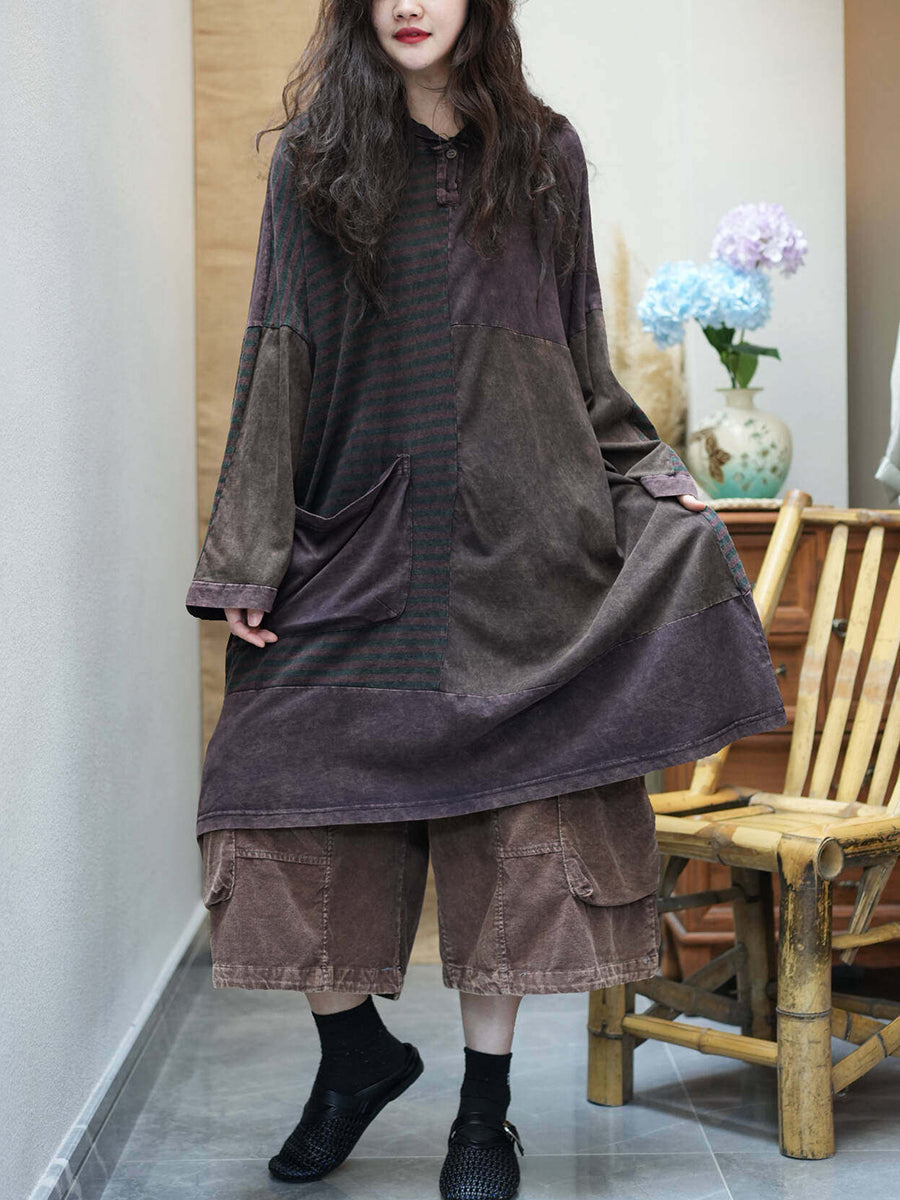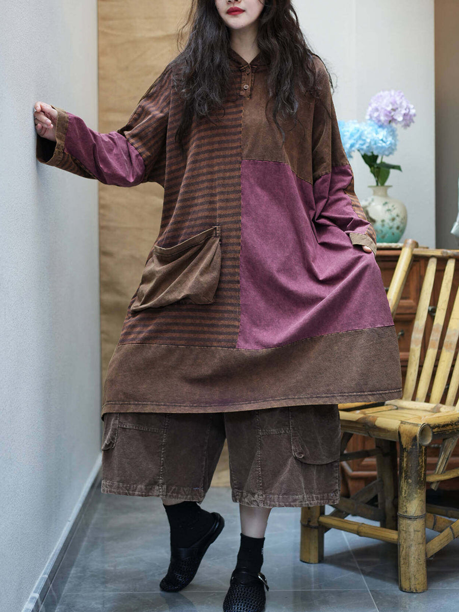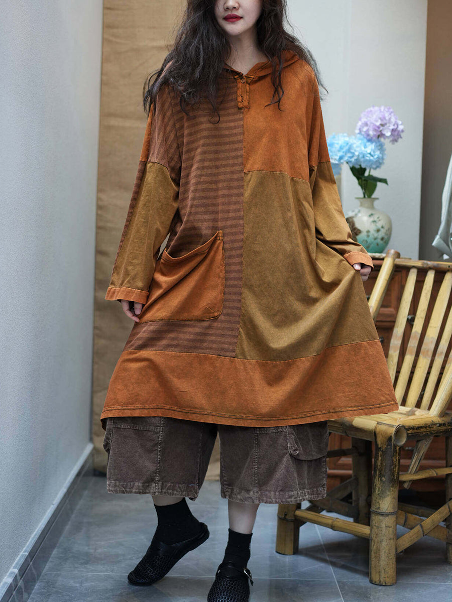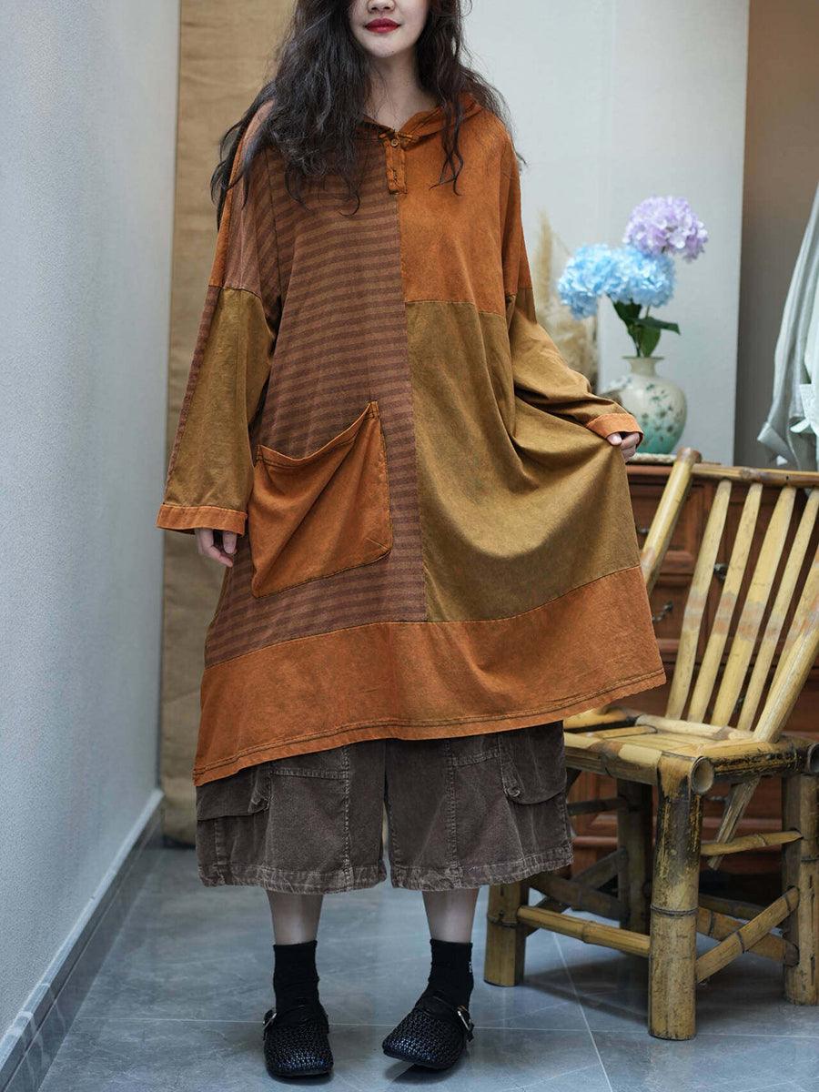 Vestido de verano retro de verano para mujer con capucha y estampado de rayas