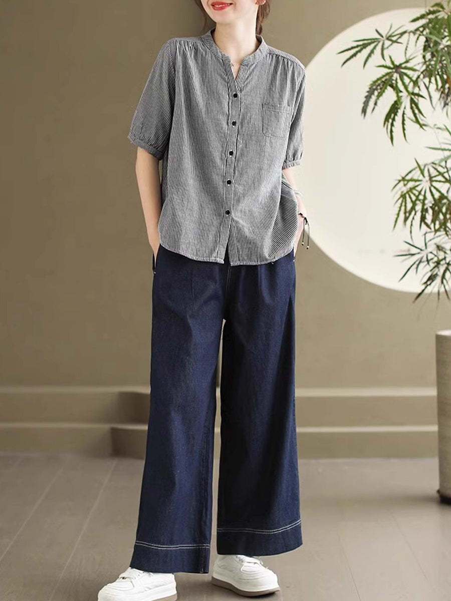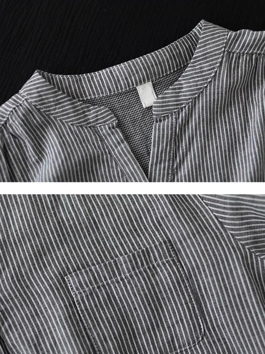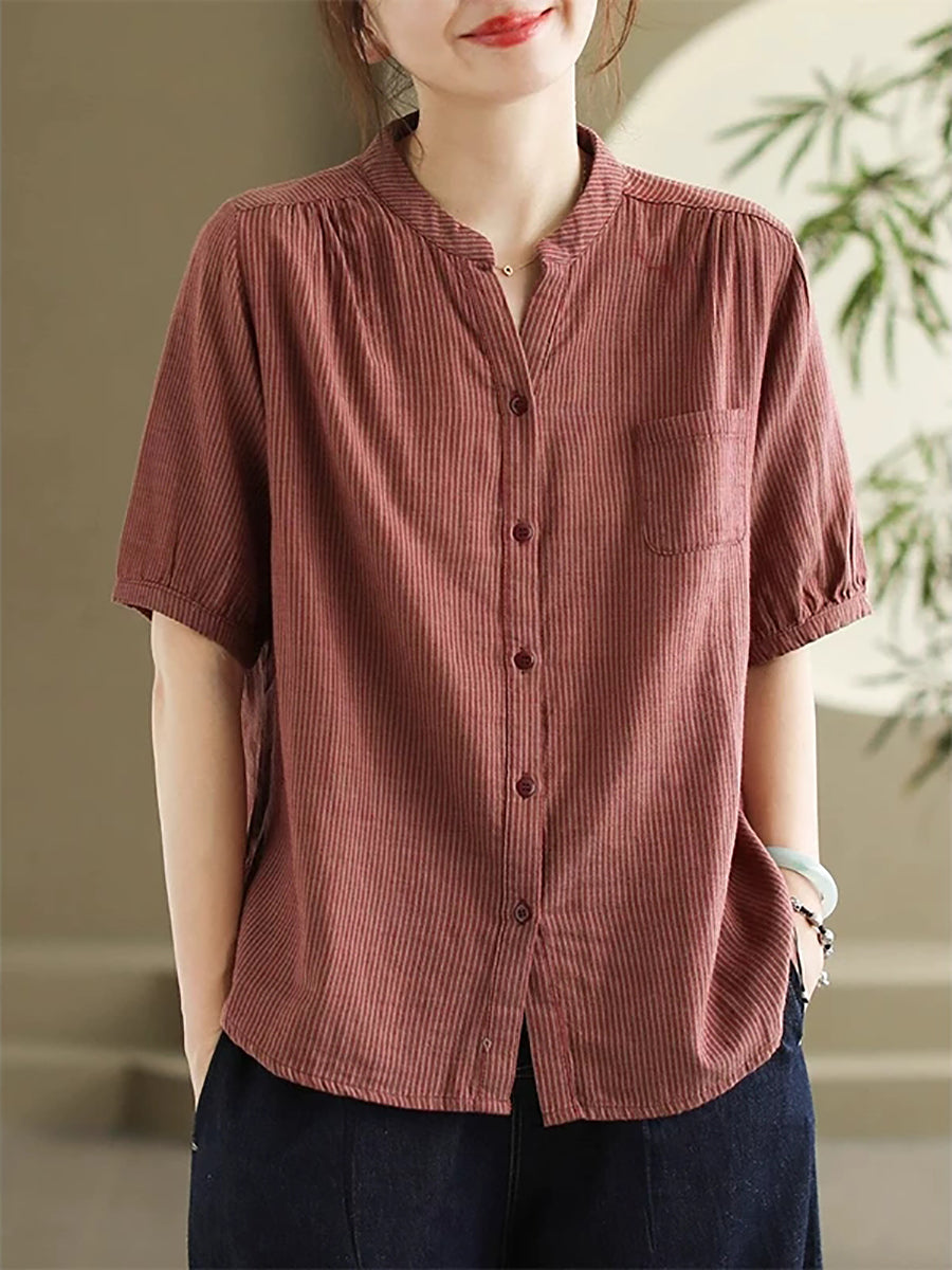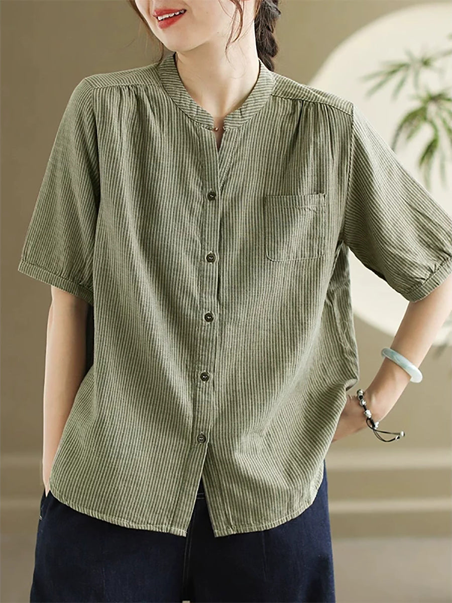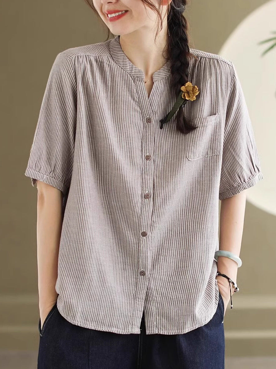 Blusa de mujer de verano estilo retro con cuello en V y rayas, 100% algodón.
