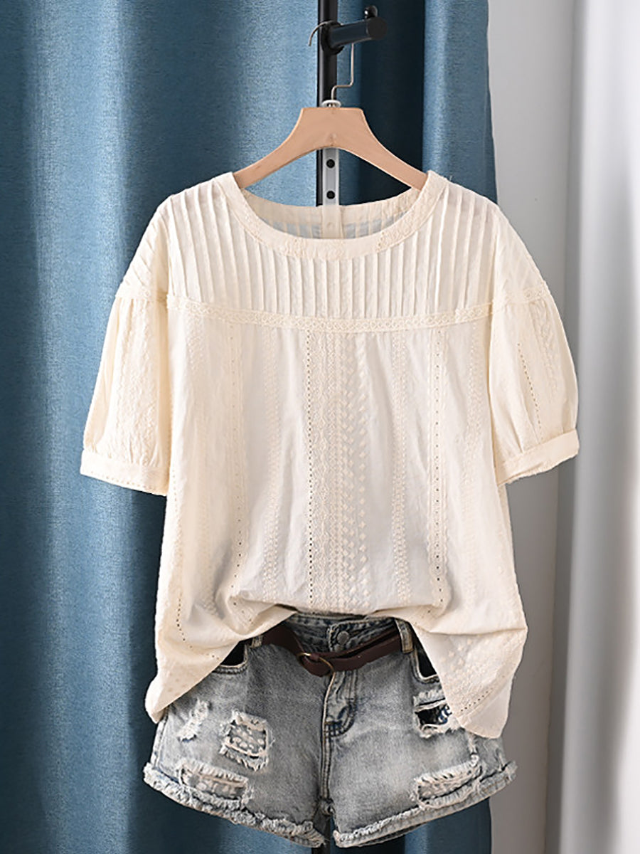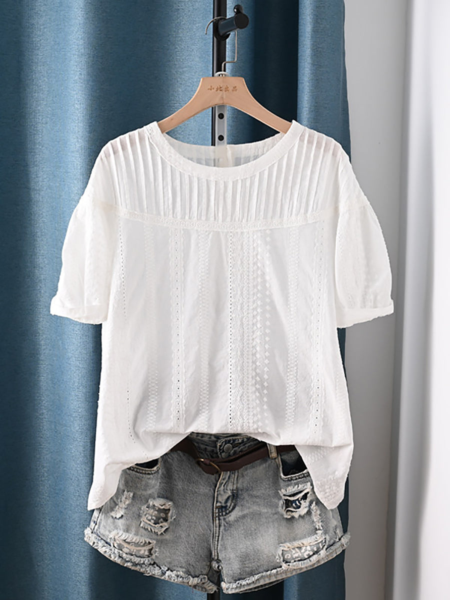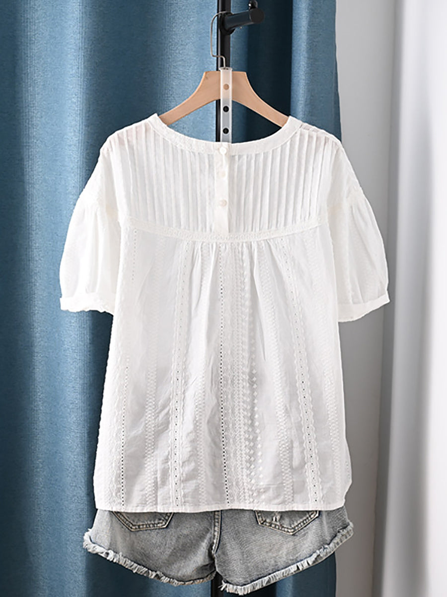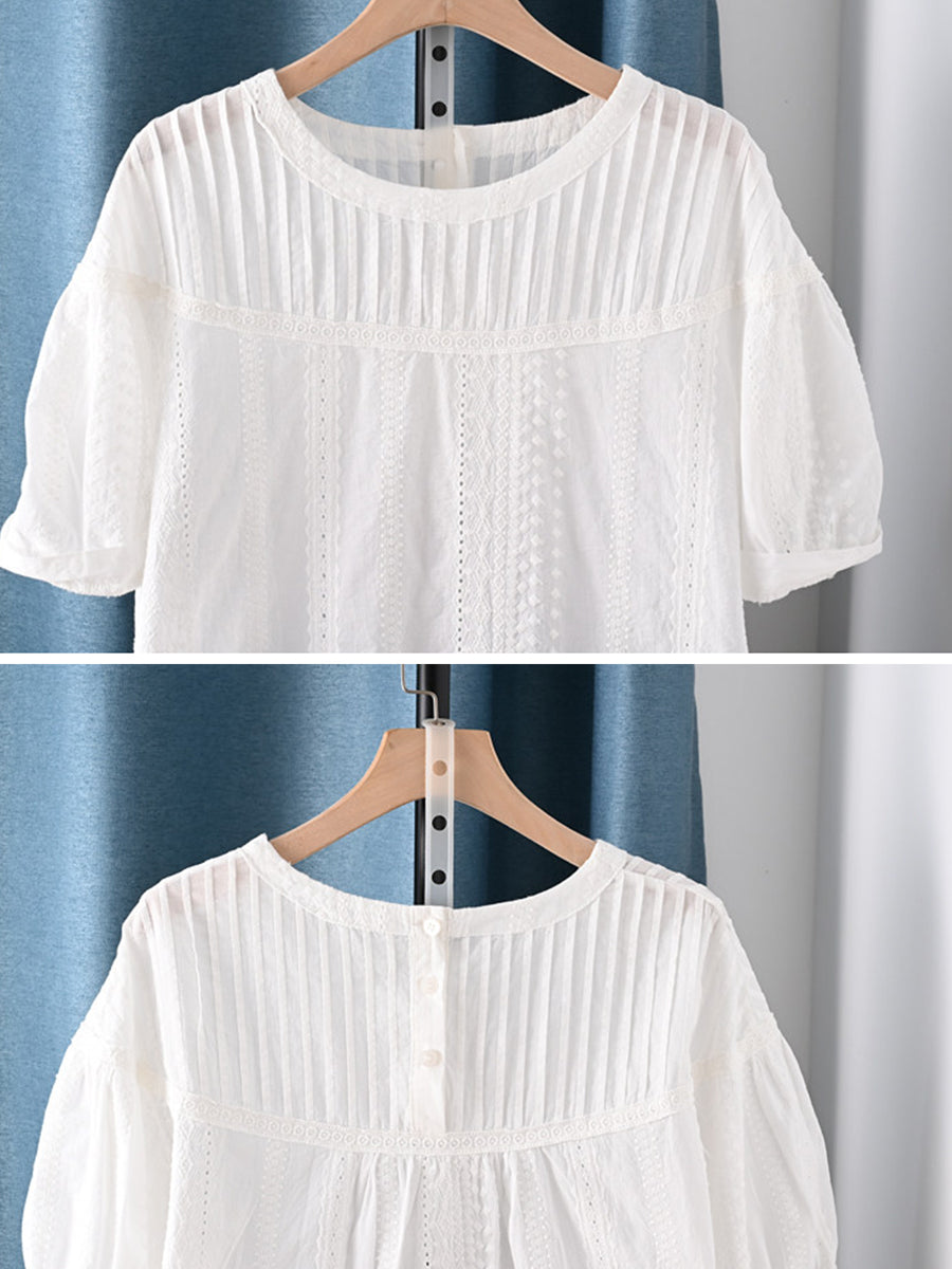 Blusa de verano para mujer con cuello redondo fruncido, 100% algodón.