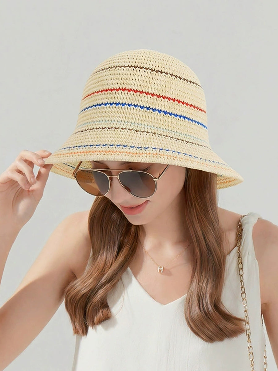 Sombrero tipo cubo a rayas para mujer, ideal para el verano y con protección solar.