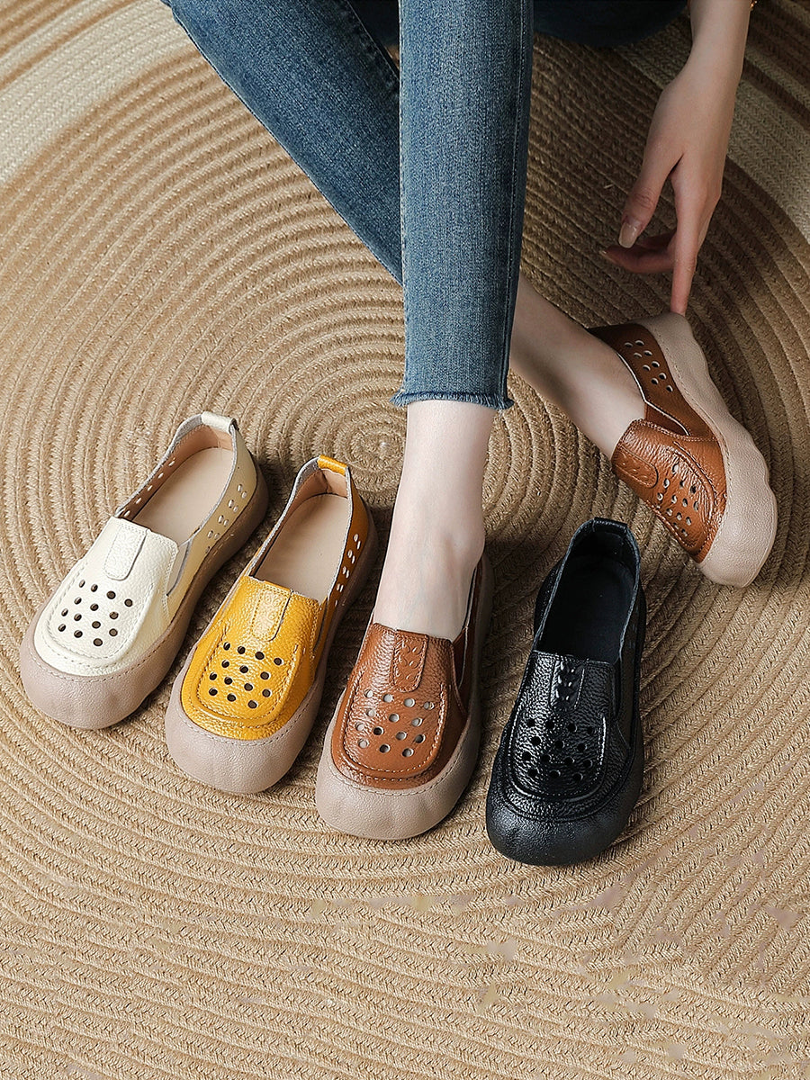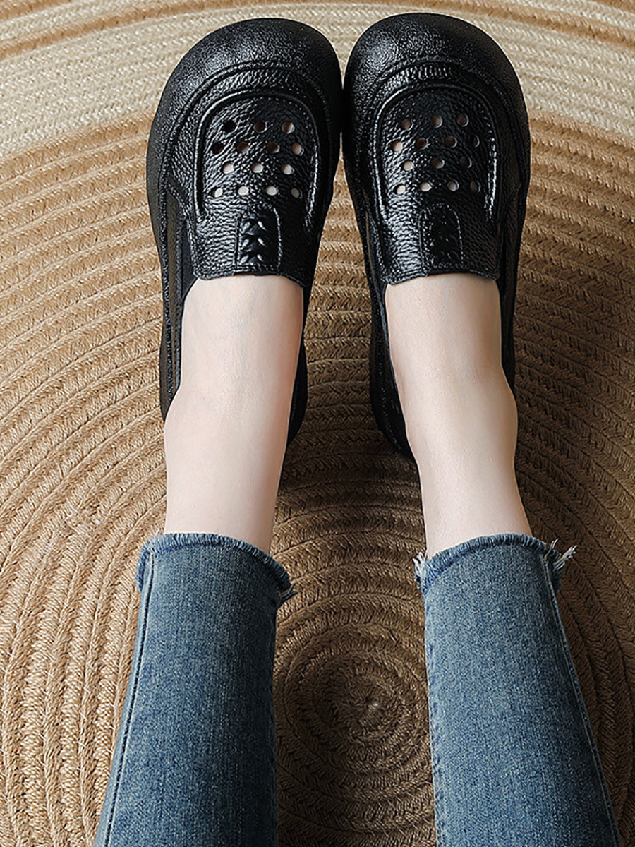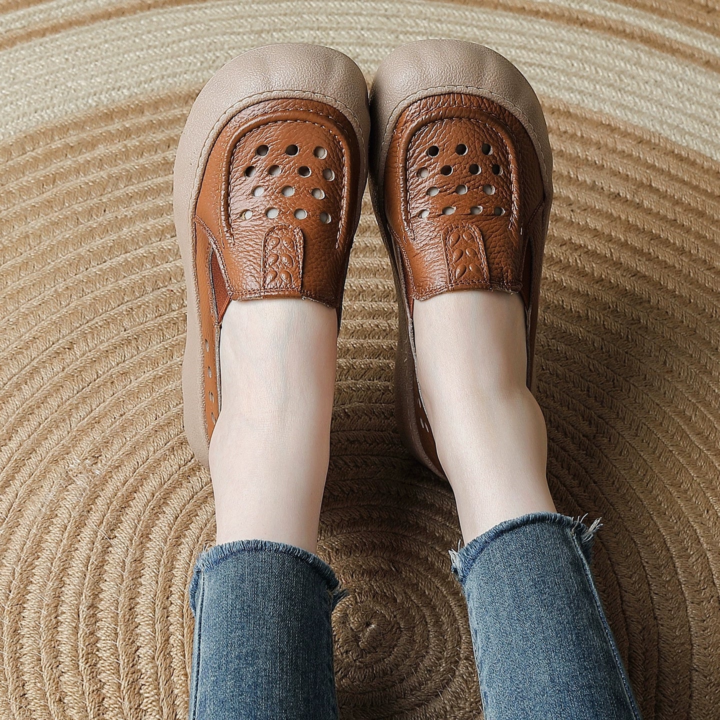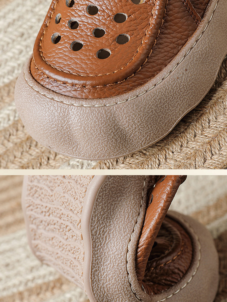 Pantuflas de verano vintage de piel auténtica tejida para mujer