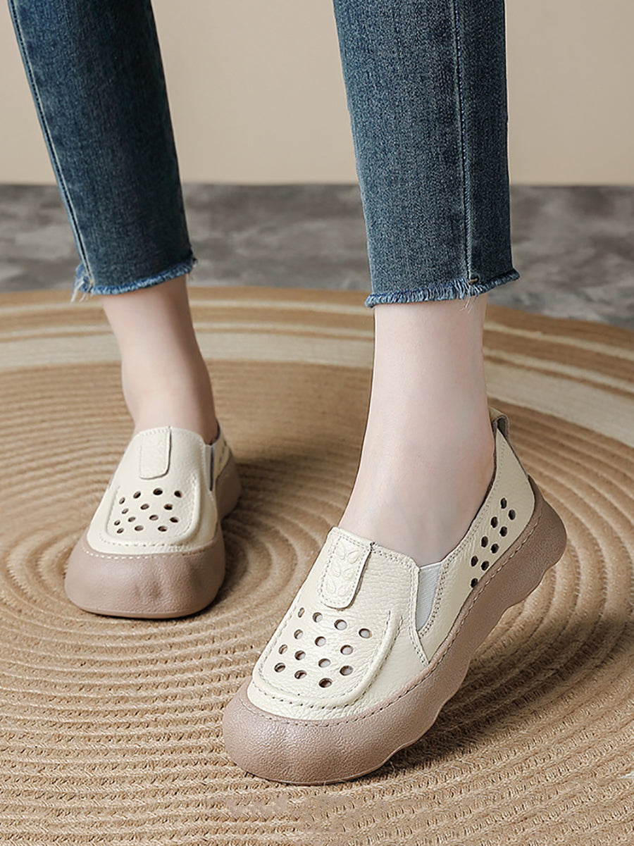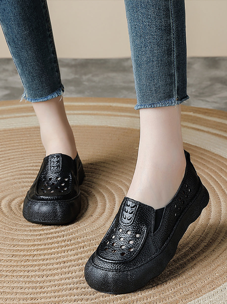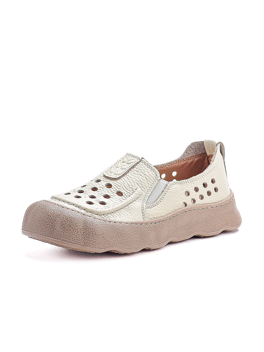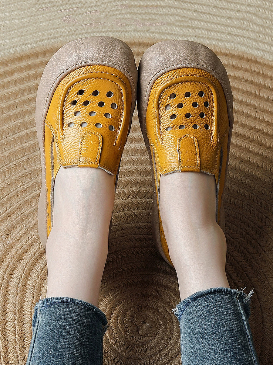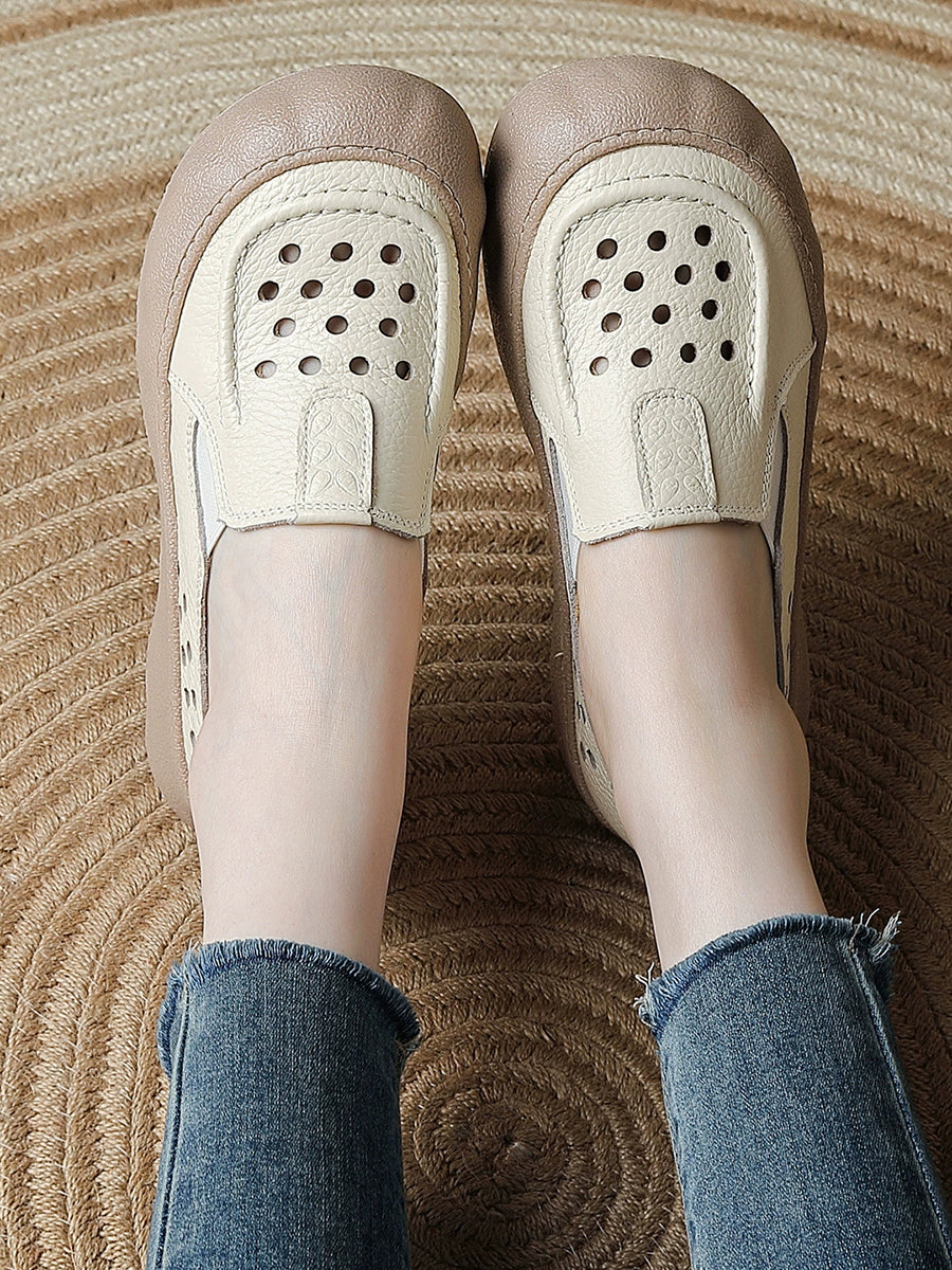 Pantuflas de verano vintage de piel auténtica tejida para mujer