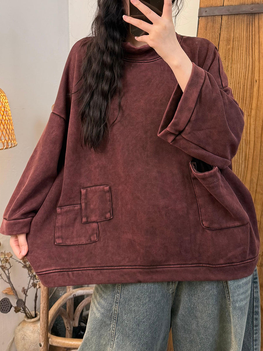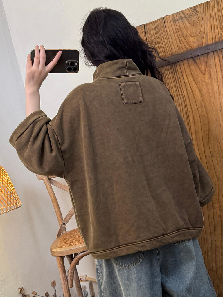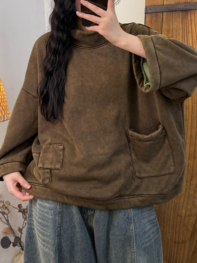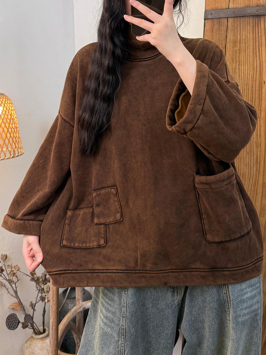 Blusa vintage de mujer con cuello alto y forro polar, estilo otoño.