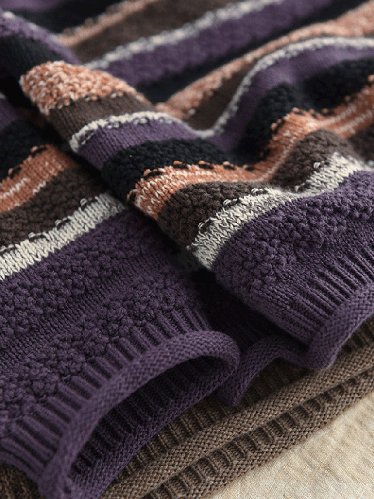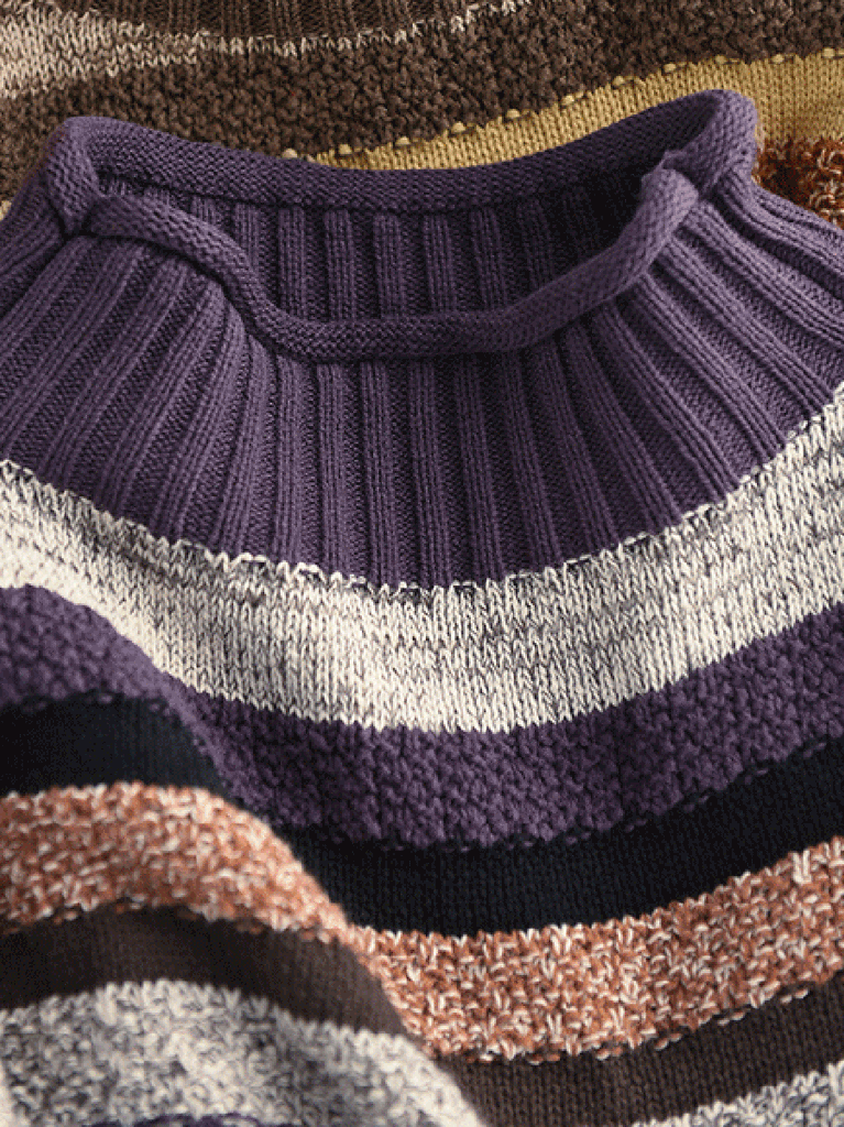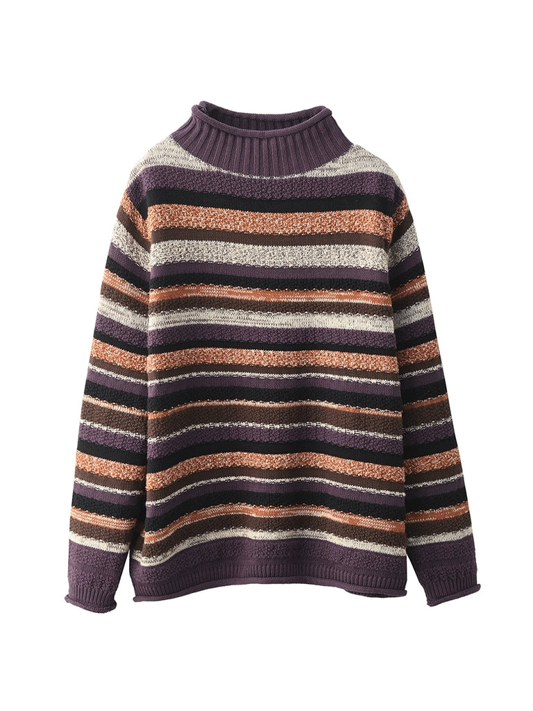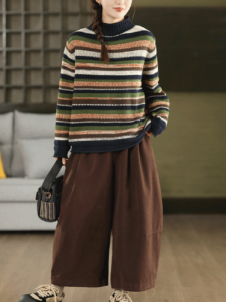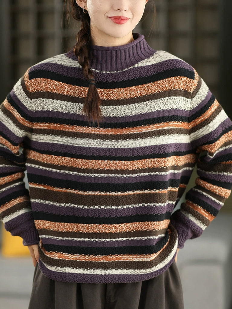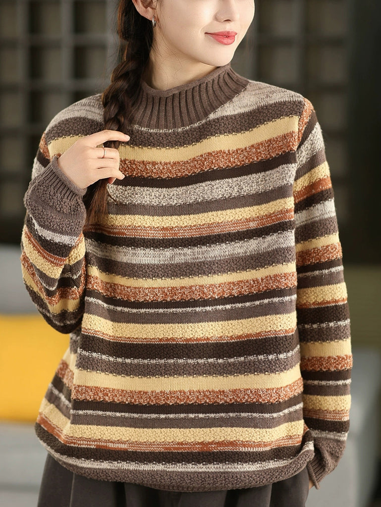 Suéter vintage de otoño con cuello alto y rayas para mujer