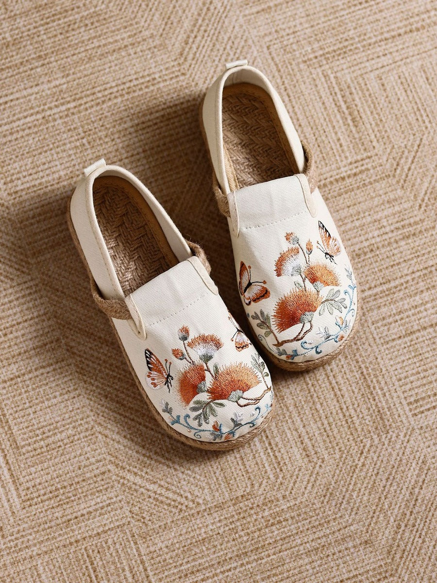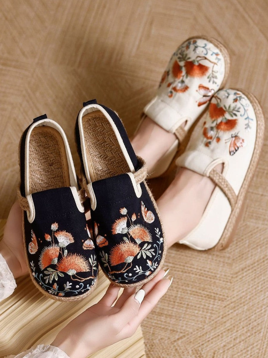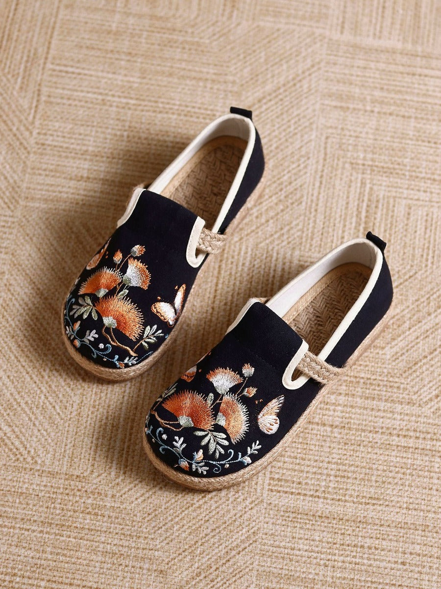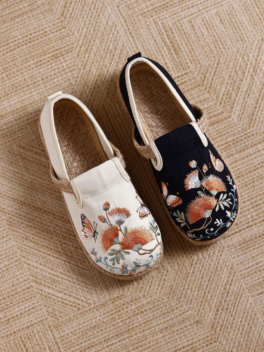 Calzado vintage de algodón y lino, elaborado a mano con detalles artesanales. Cómodo y transpirable para uso diario.