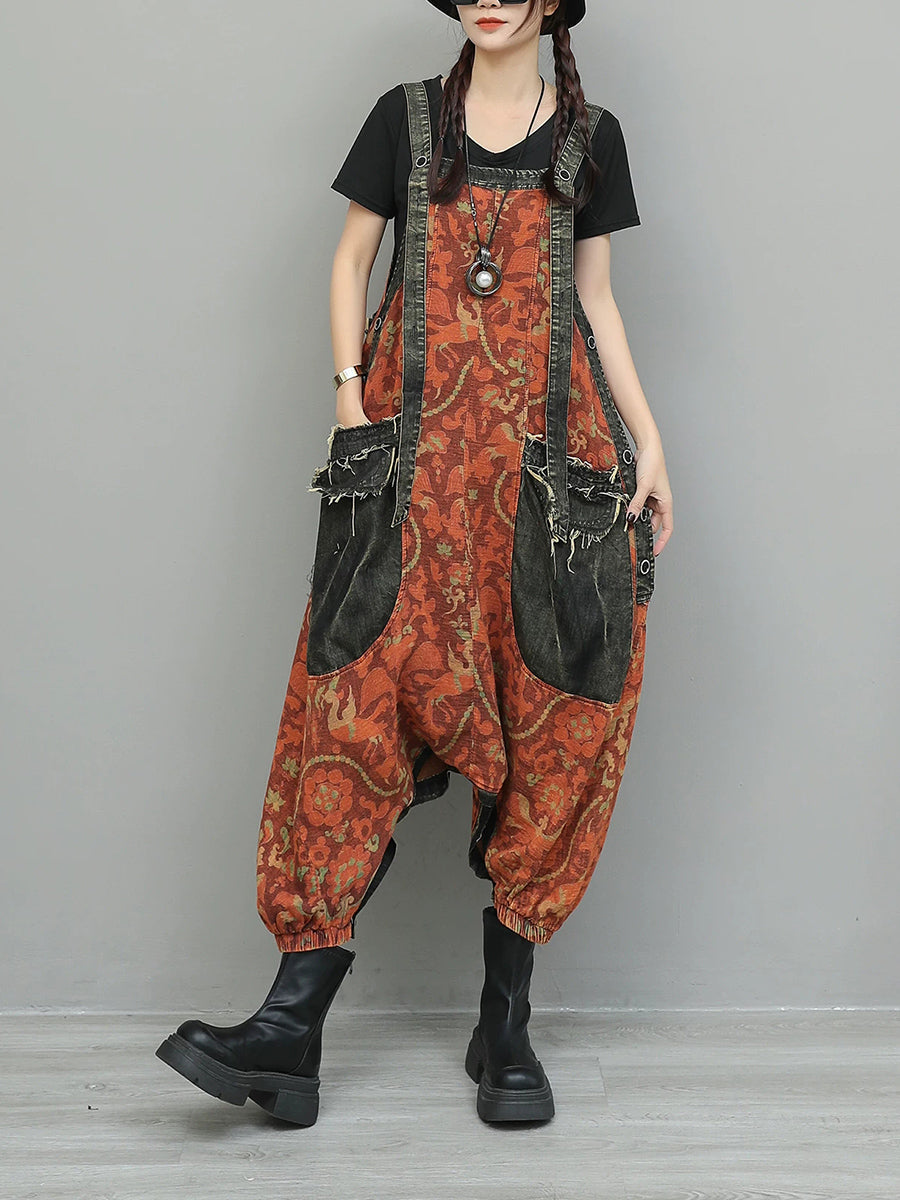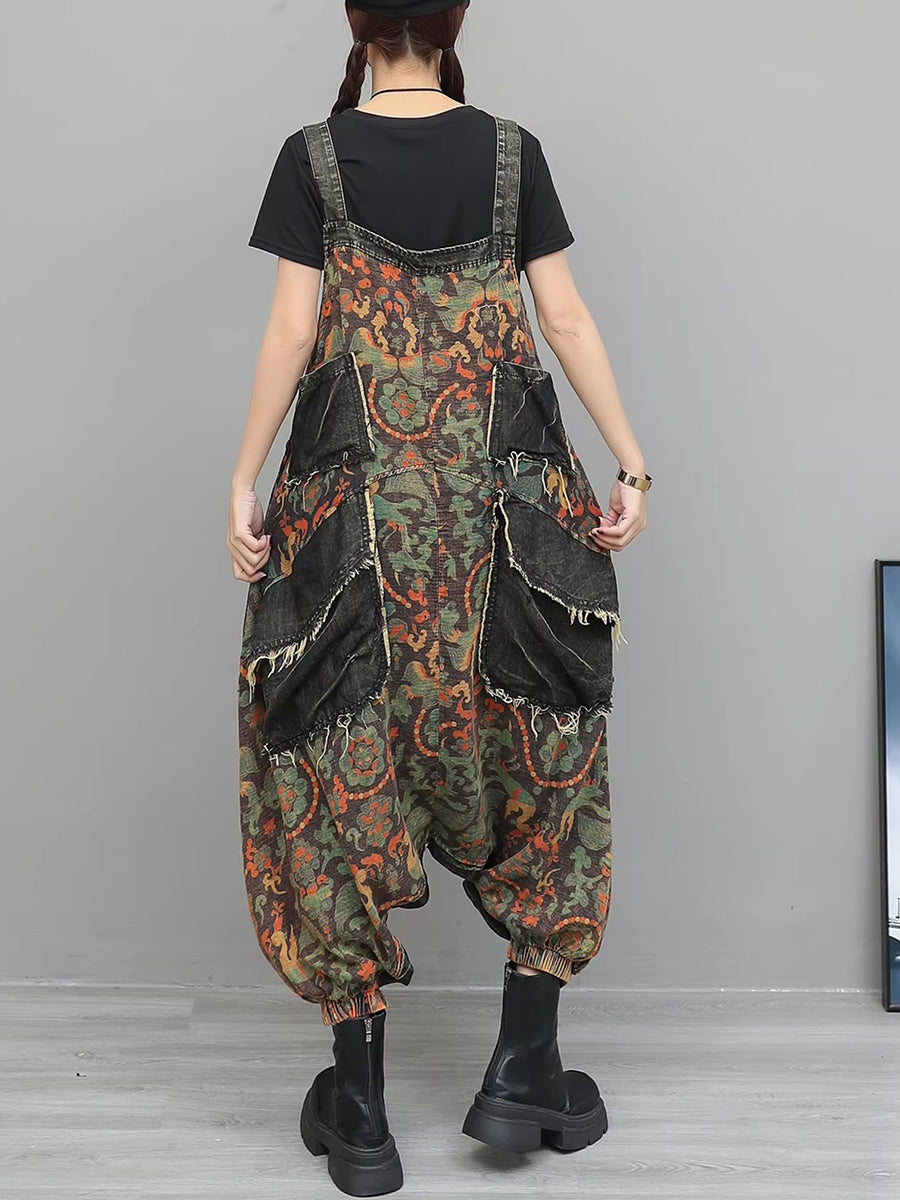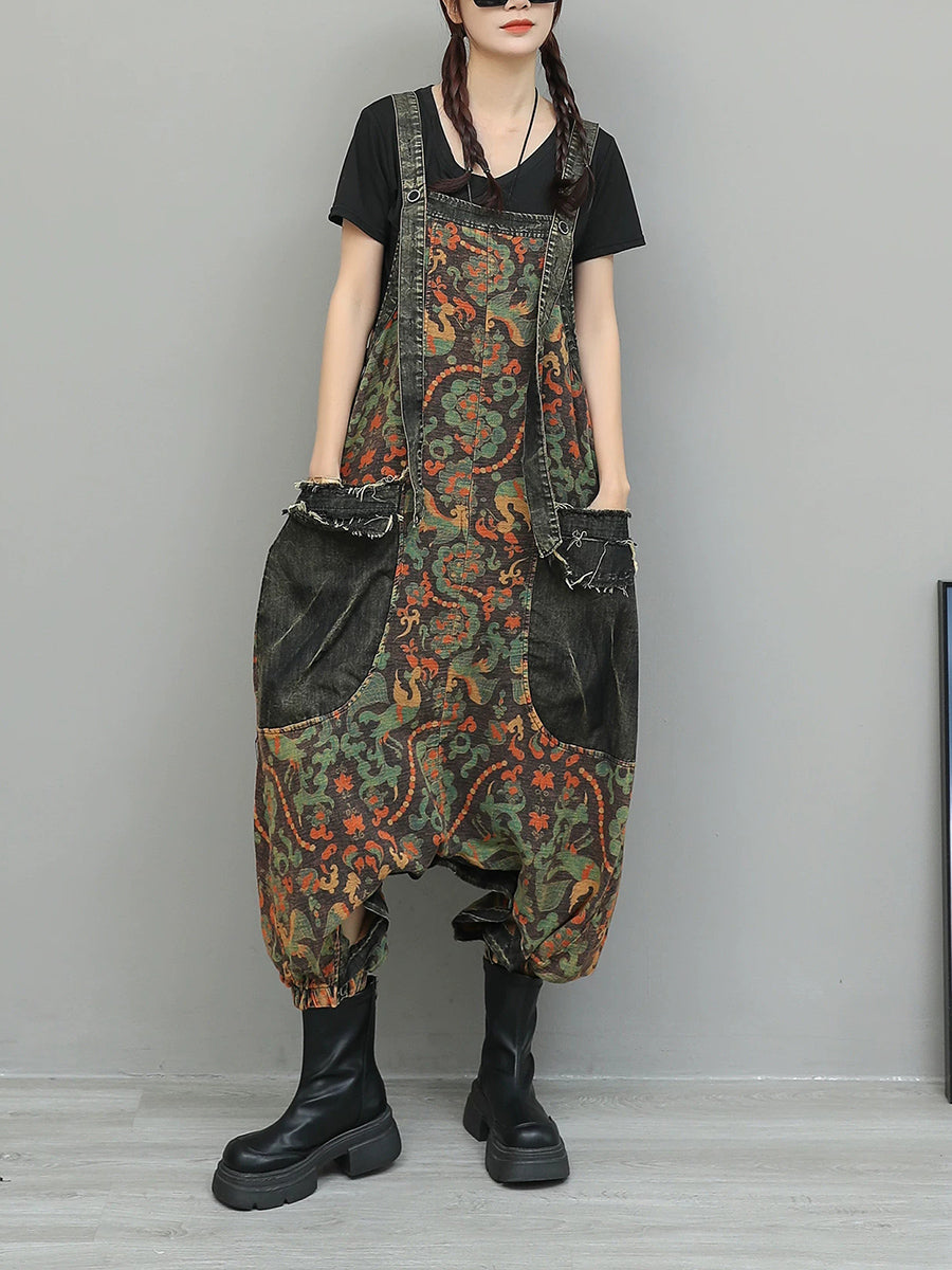 Monos vaqueros vintage con flores para mujer
