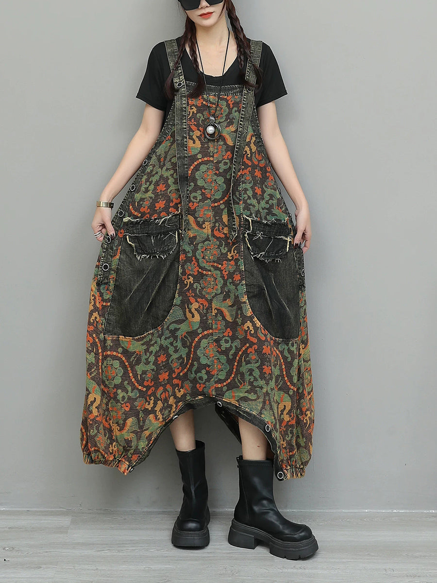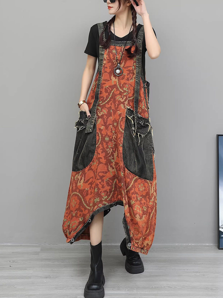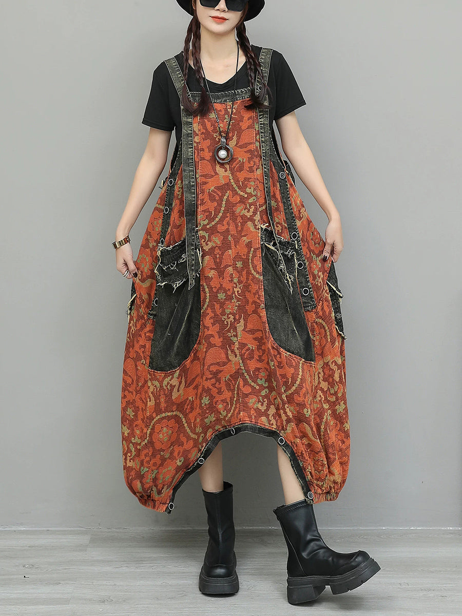 Monos vaqueros vintage con flores para mujer