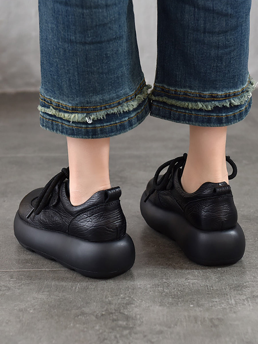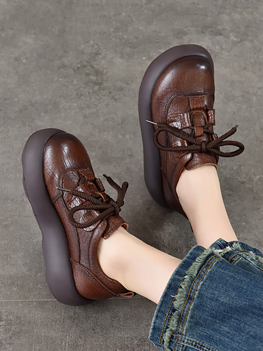 Zapatos de plataforma vintage de piel auténtica para mujer