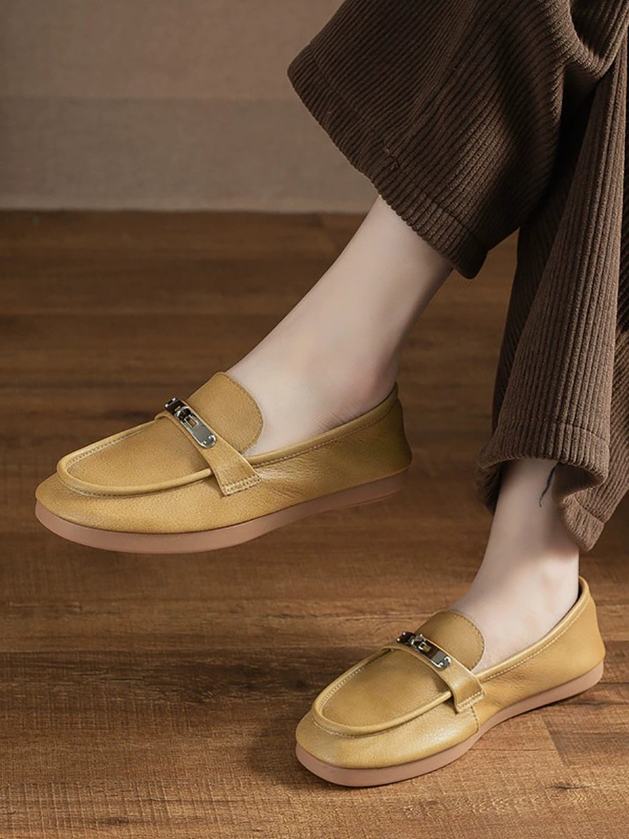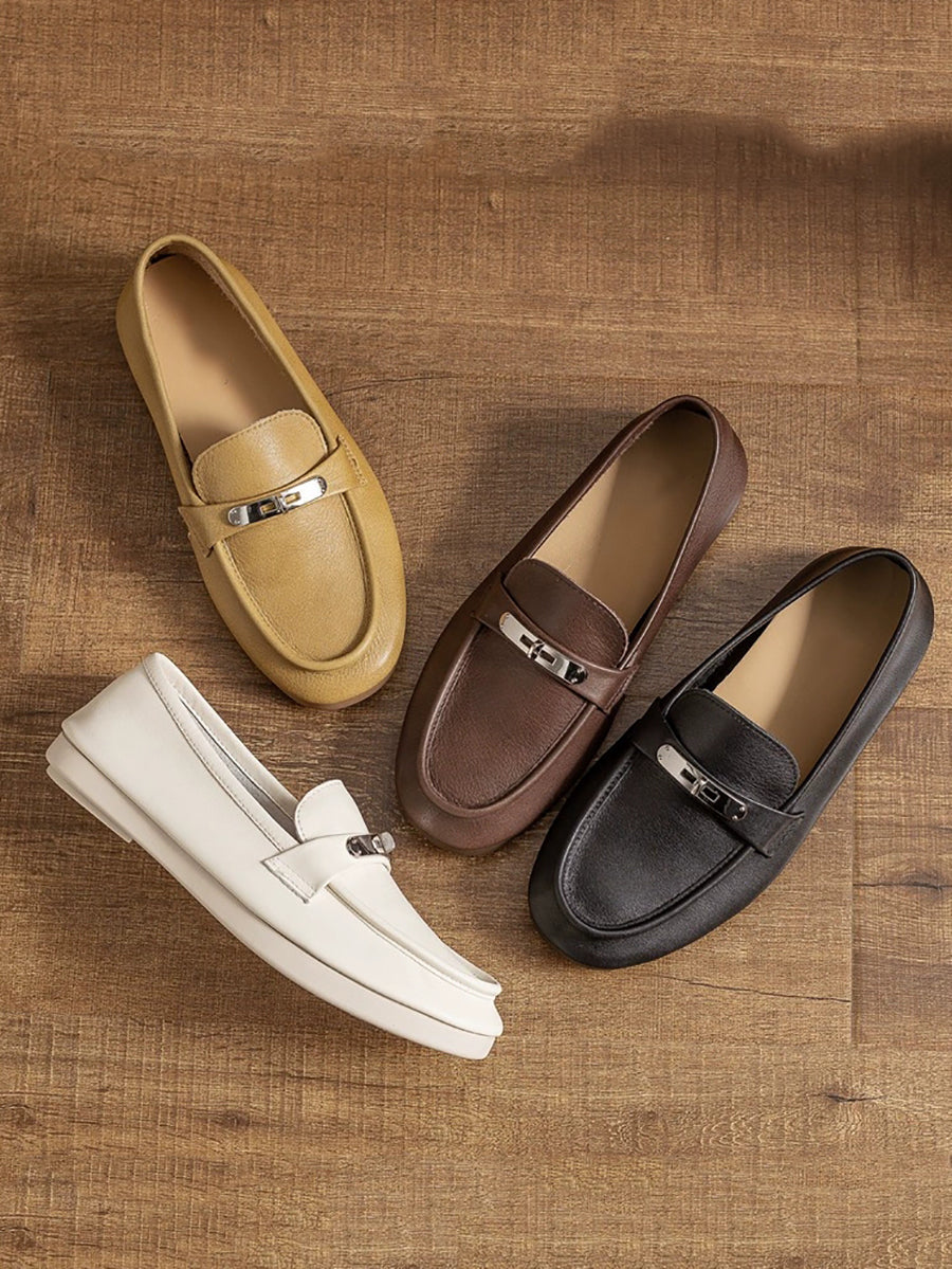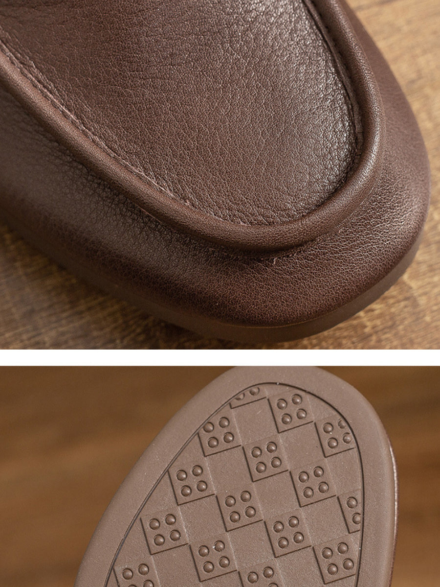 Zapatos mocasines planos vintage de piel auténtica para mujer