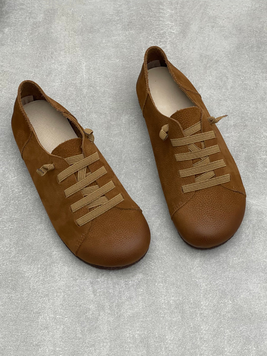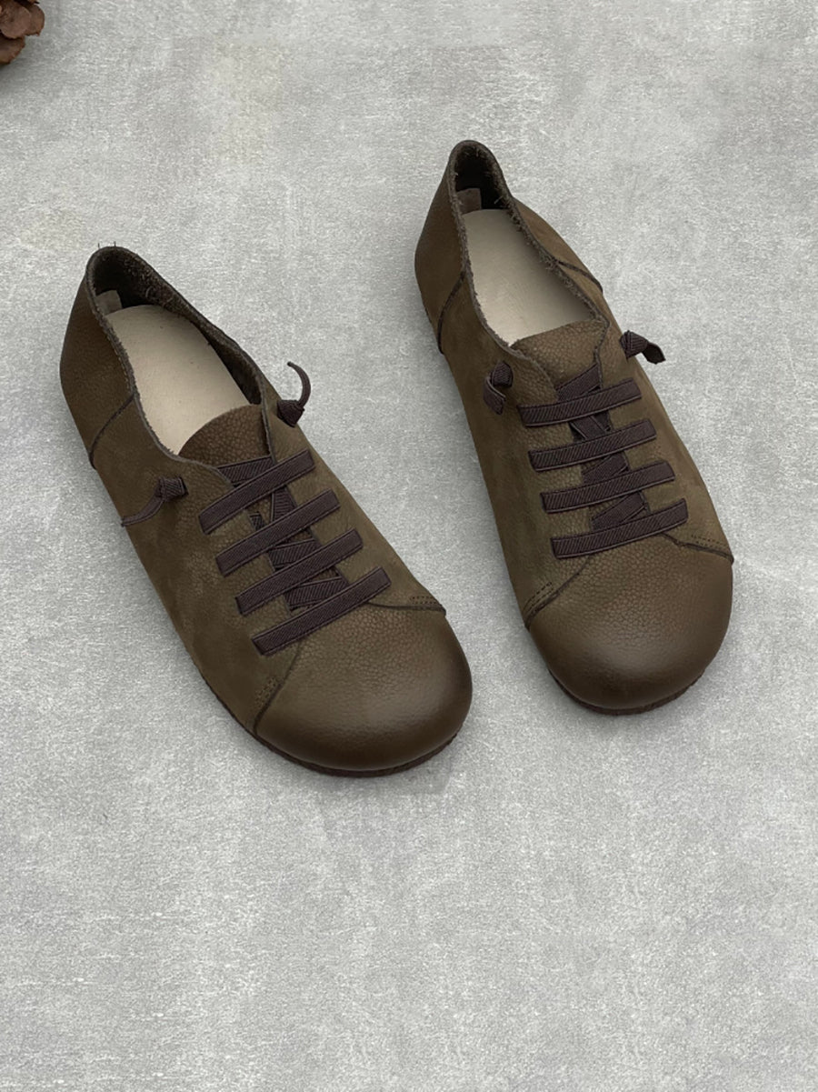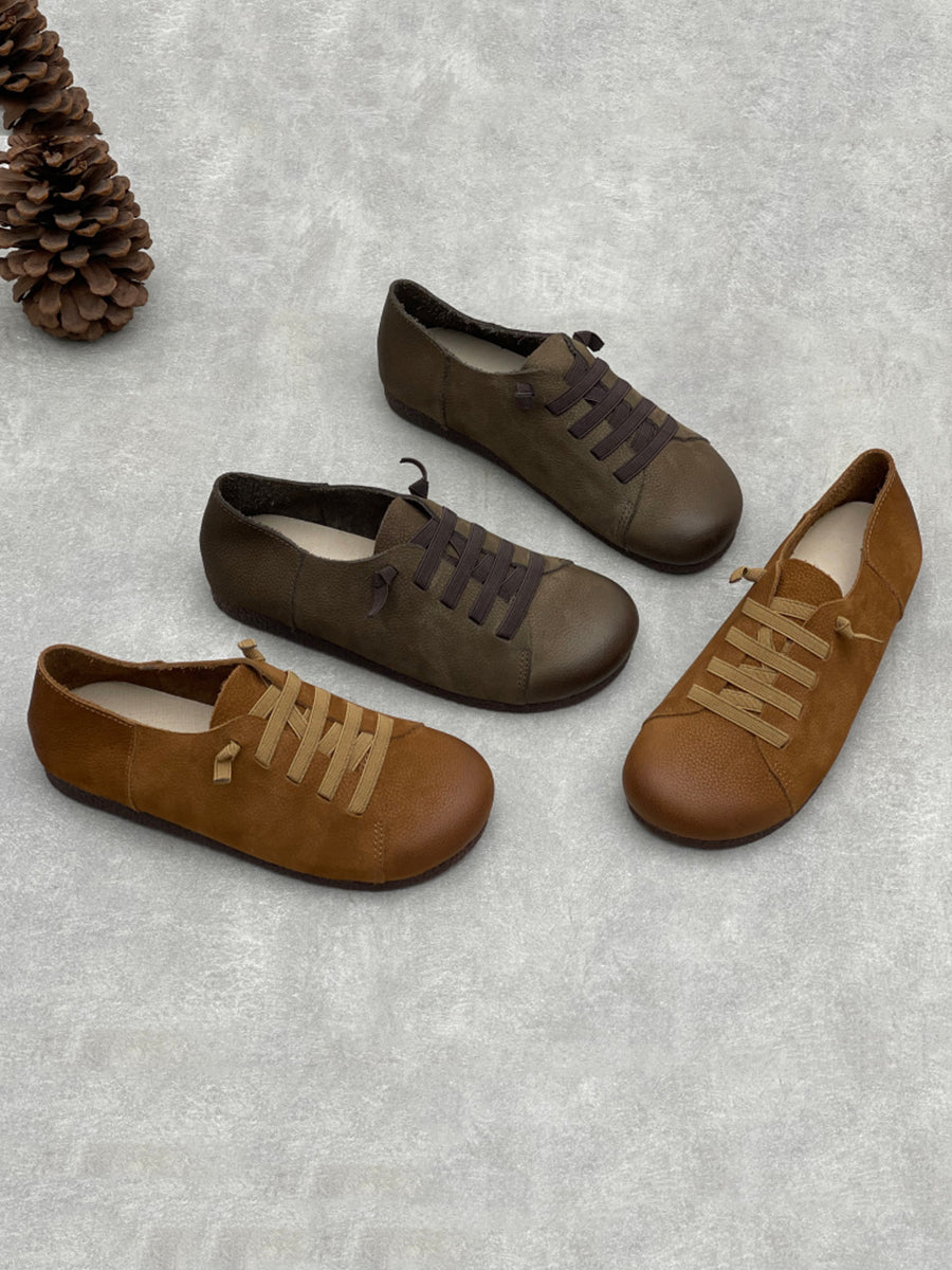 Zapatos planos vintage de piel auténtica para mujer