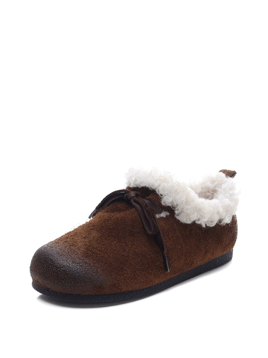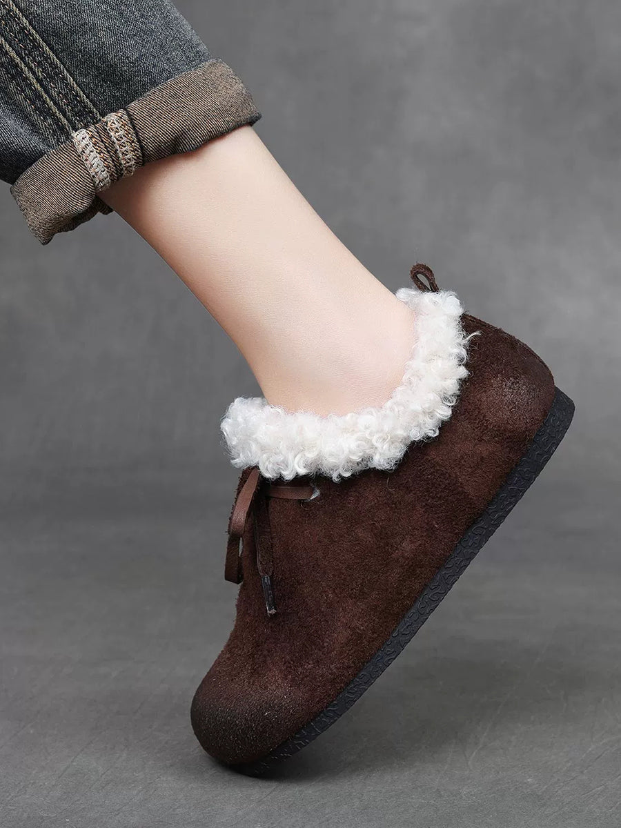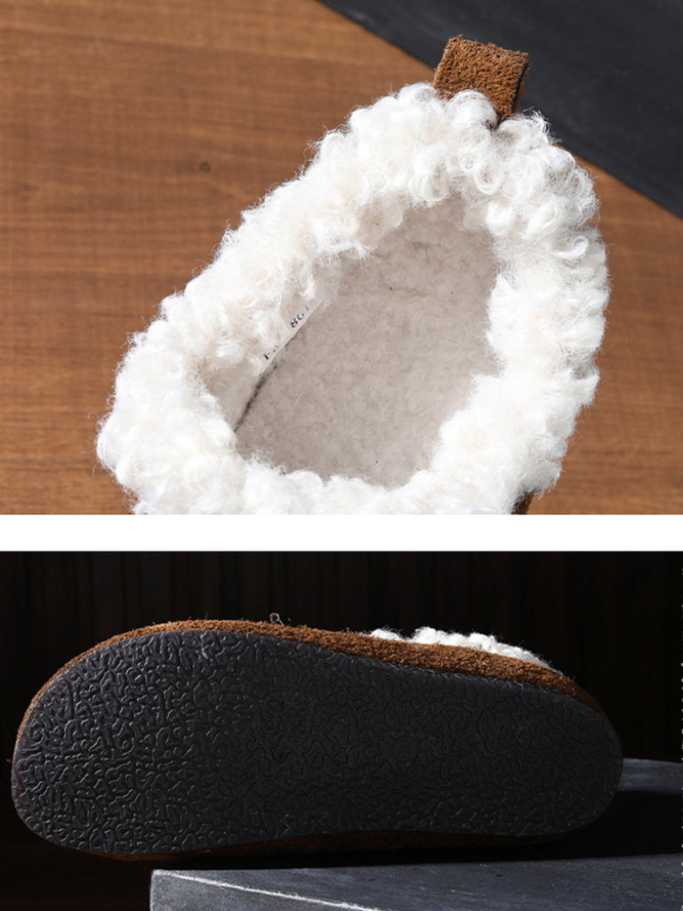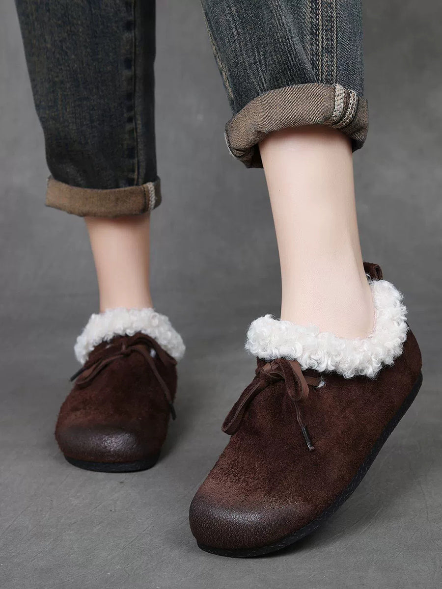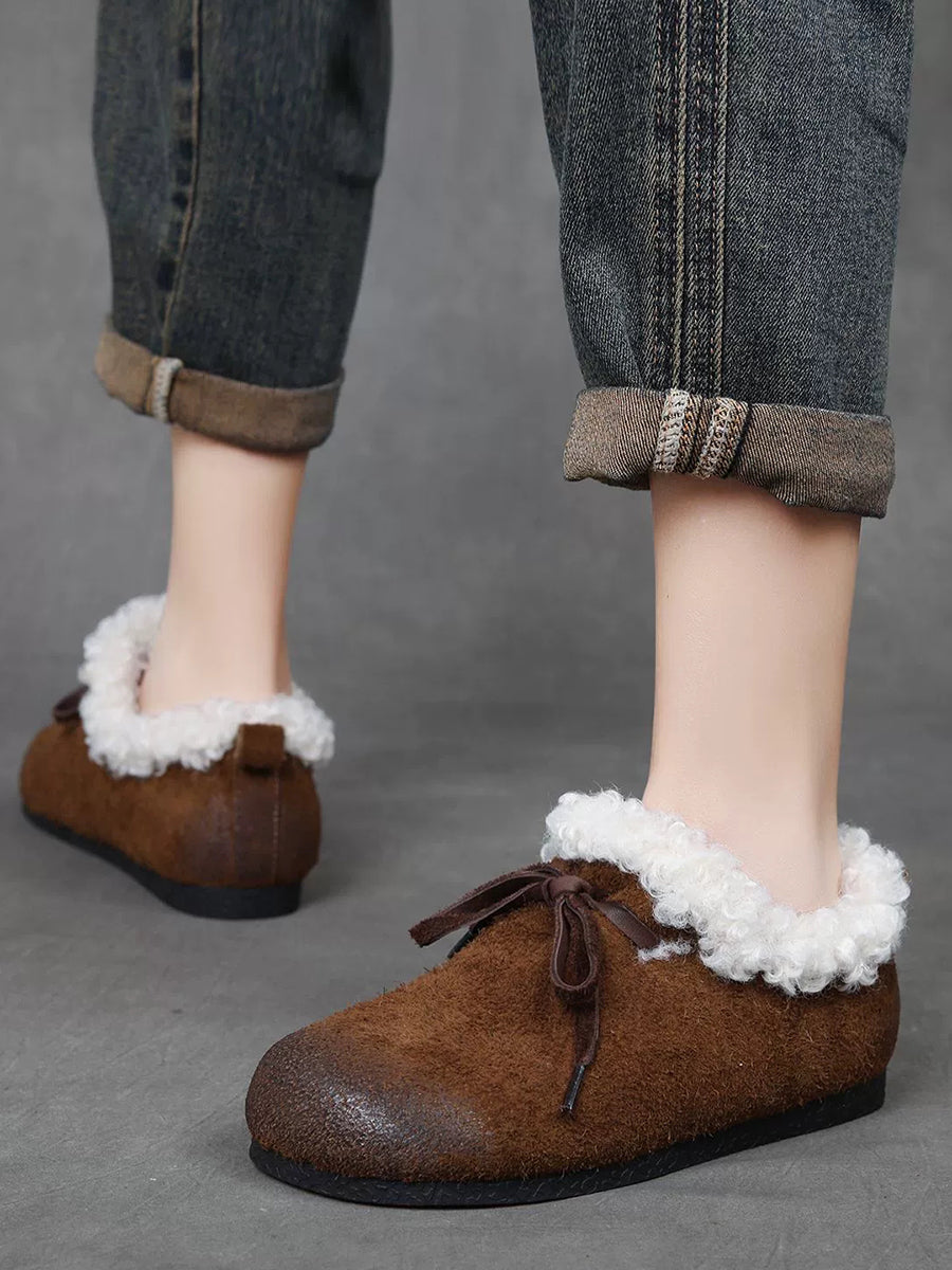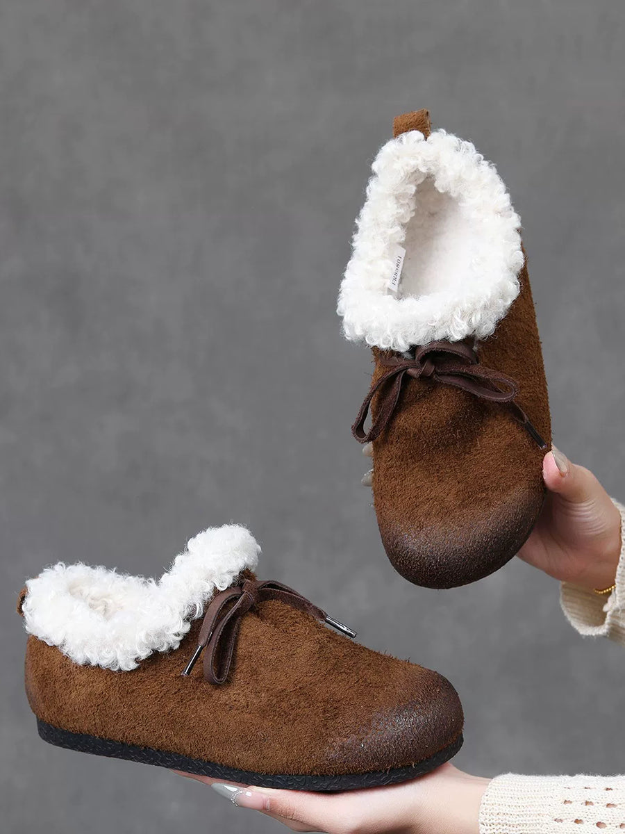 Zapatos vintage de piel auténtica con forro polar para mujer