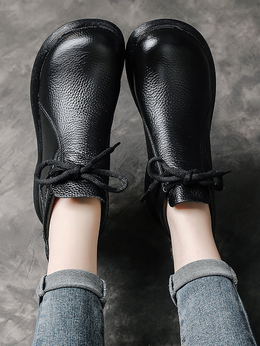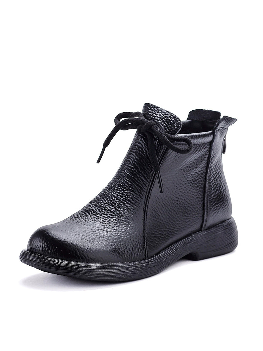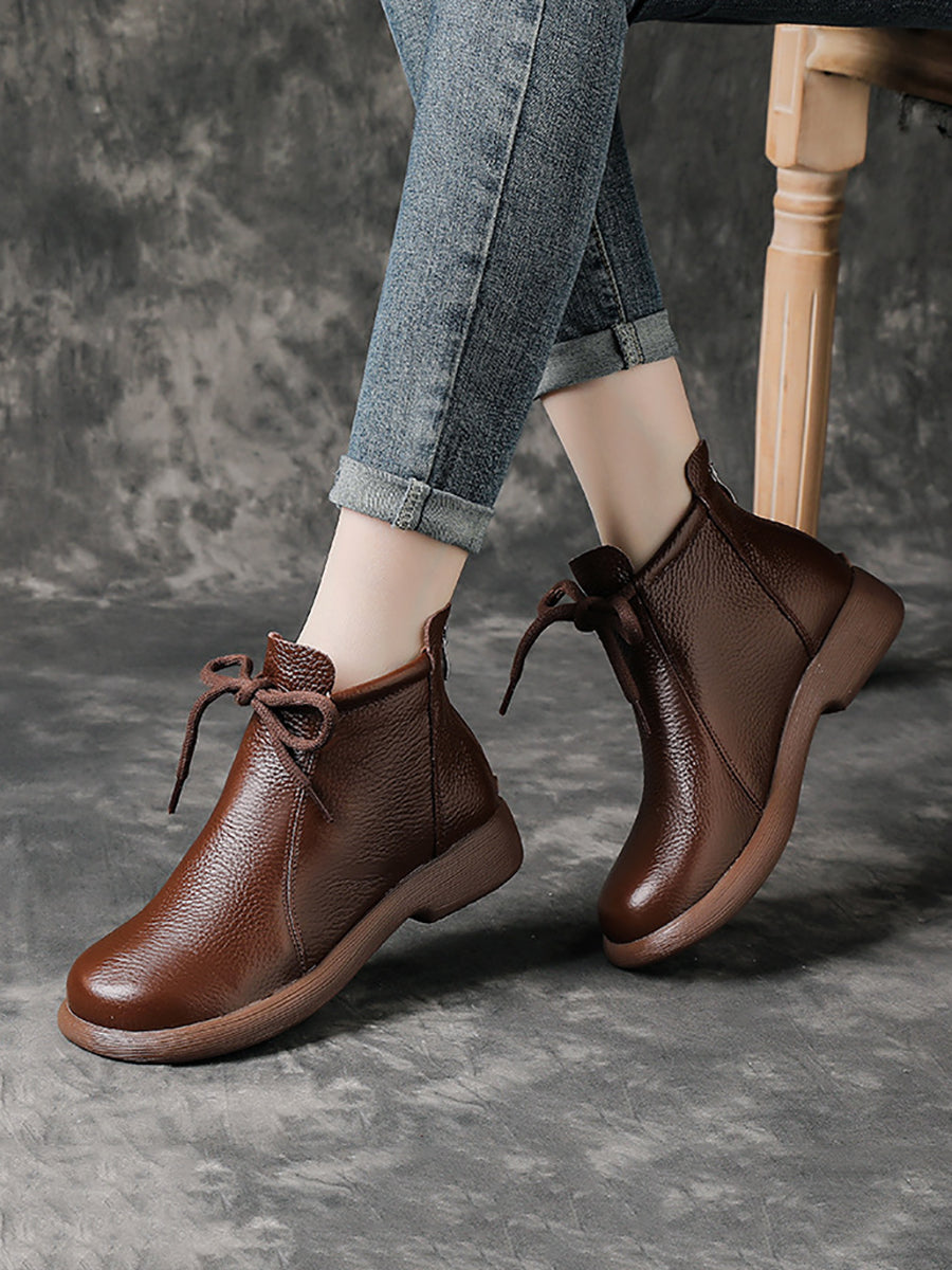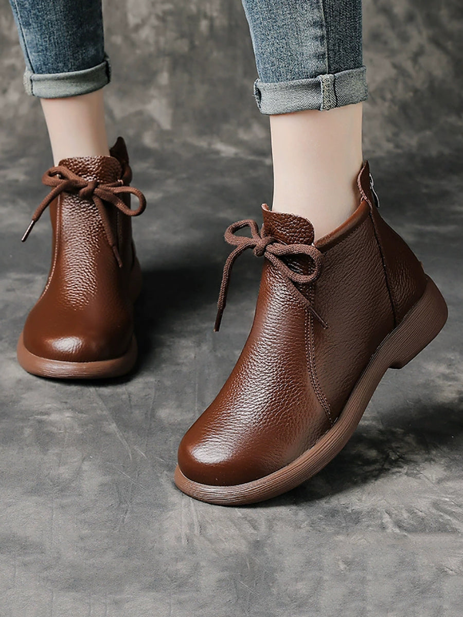Botas vintage de piel auténtica con tacón bajo para mujer