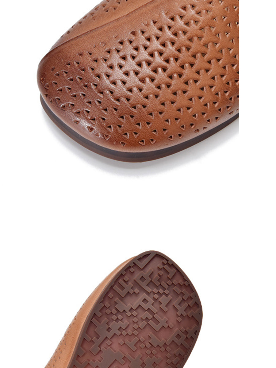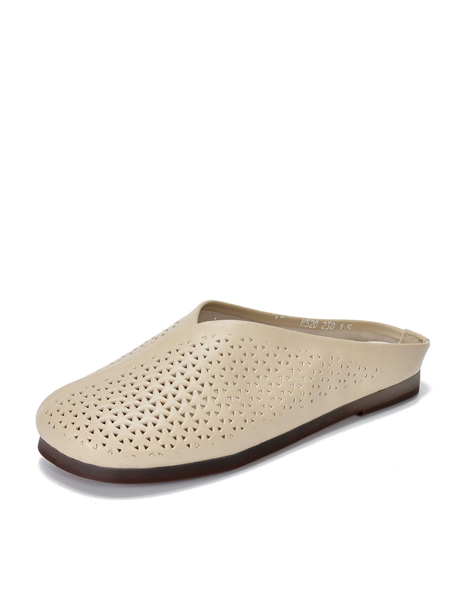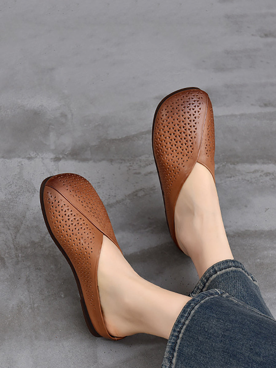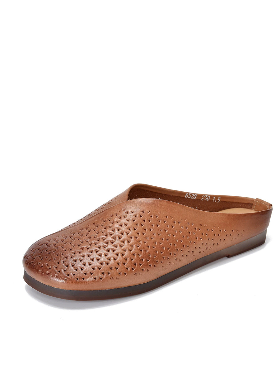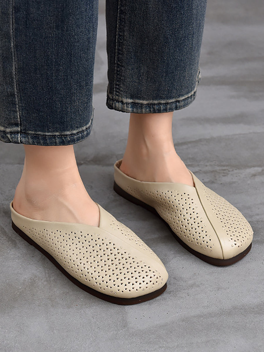 Pantuflas planas suaves de piel auténtica vintage para mujer