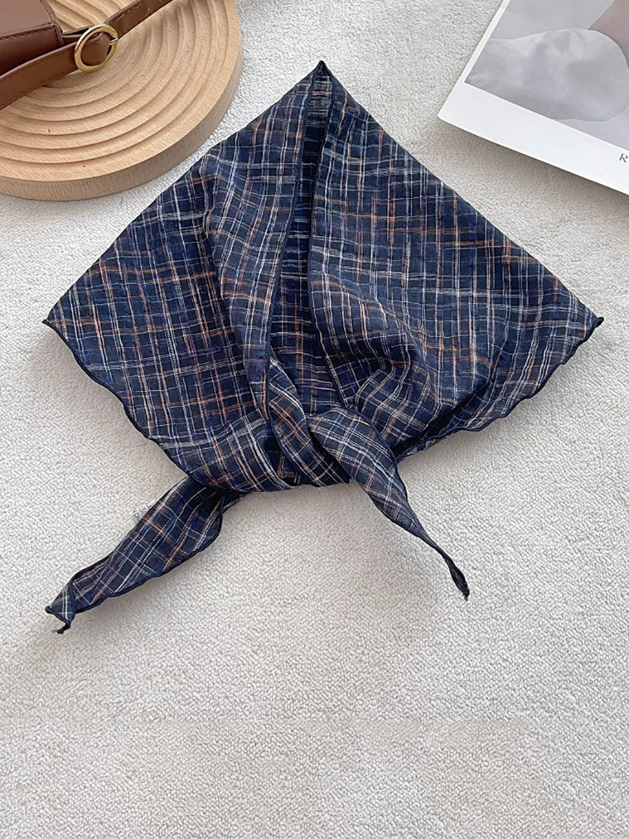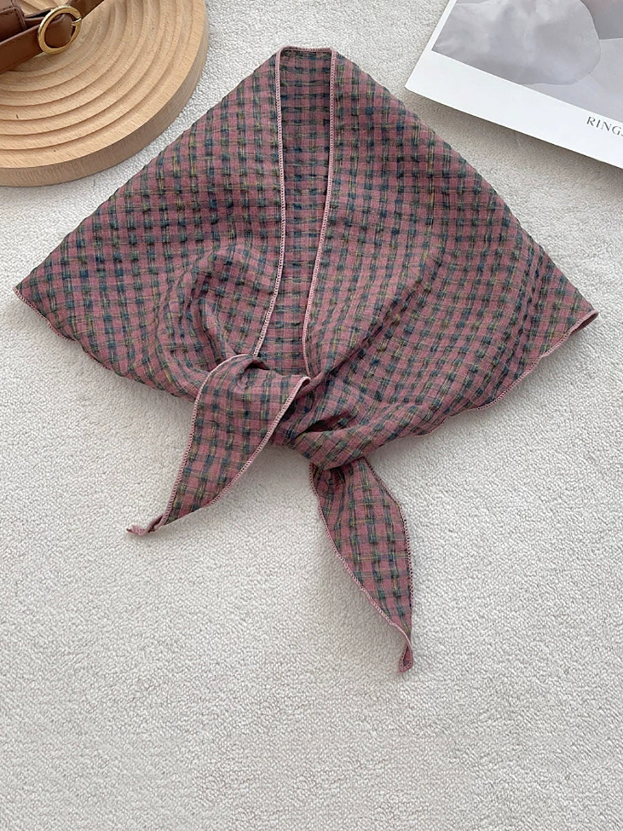 Bufanda triangular de algodón a cuadros vintage para mujer