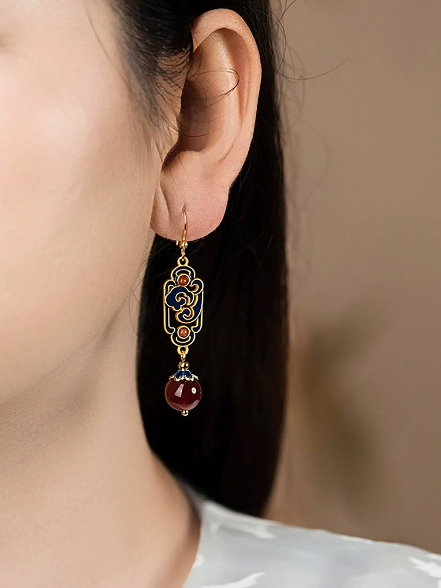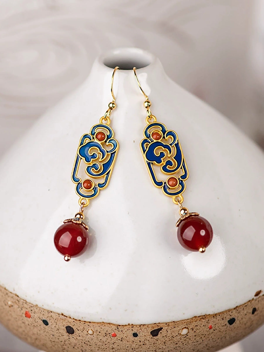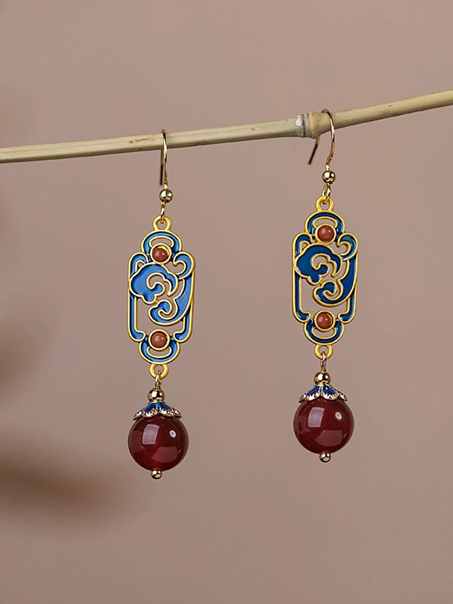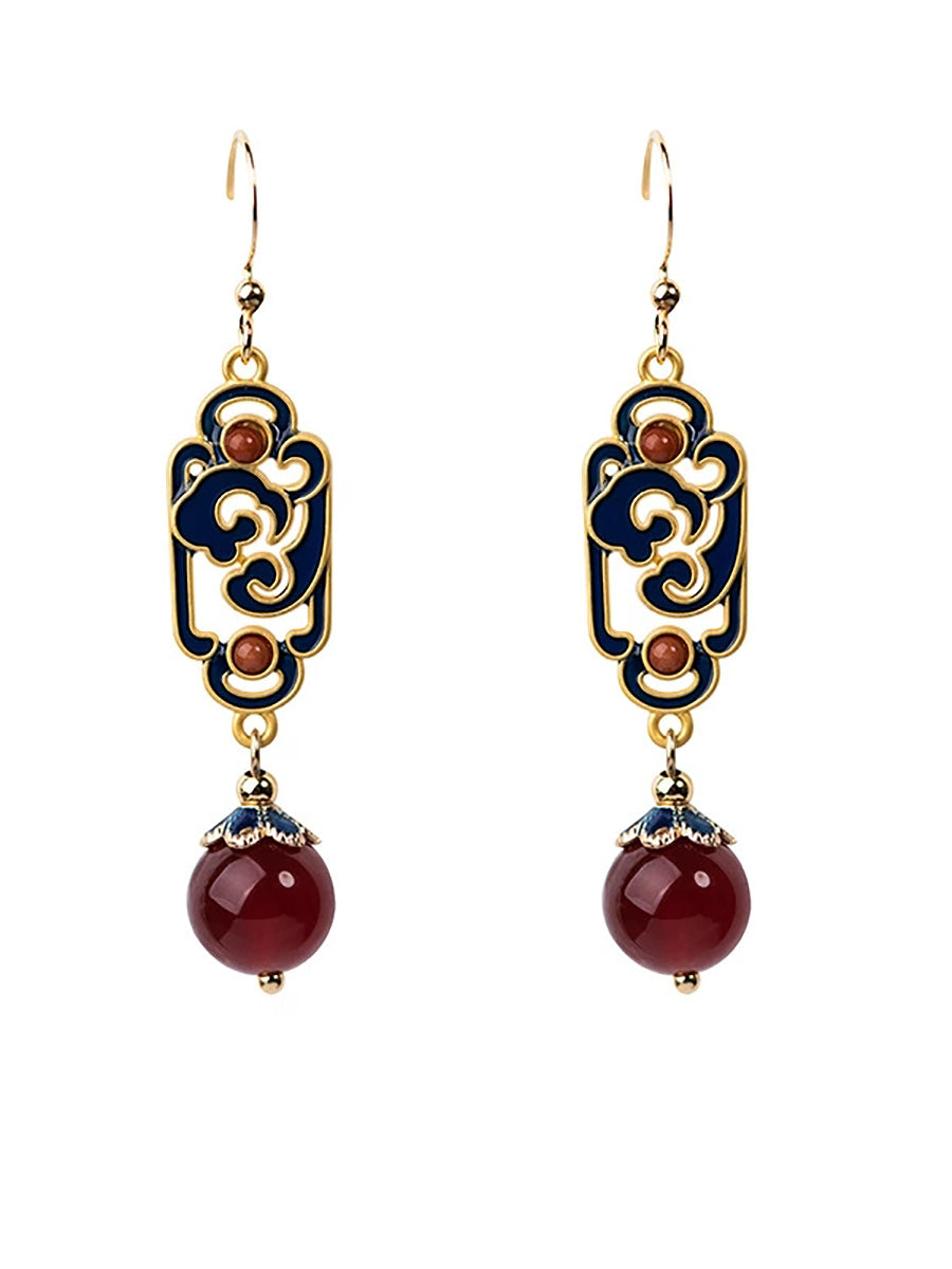 Pendientes vintage de aleación de esmalte de ágata roja para mujer