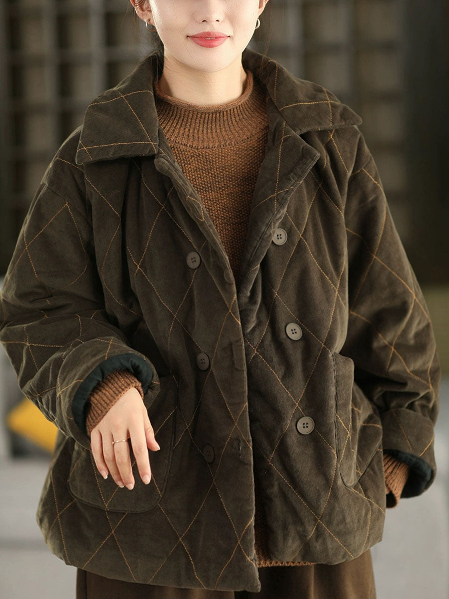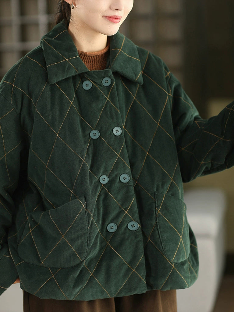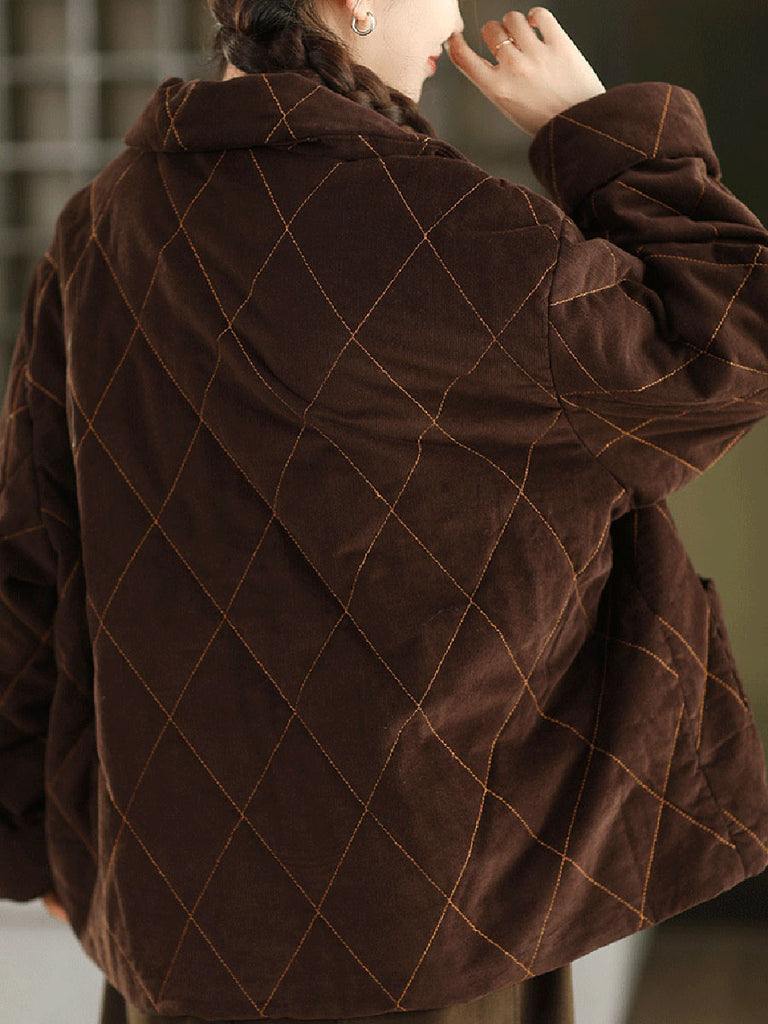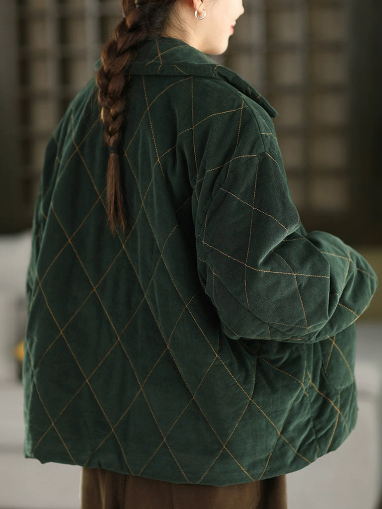 Chaqueta acolchada con cuello vuelto y romboides vintage para mujer