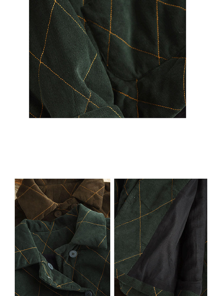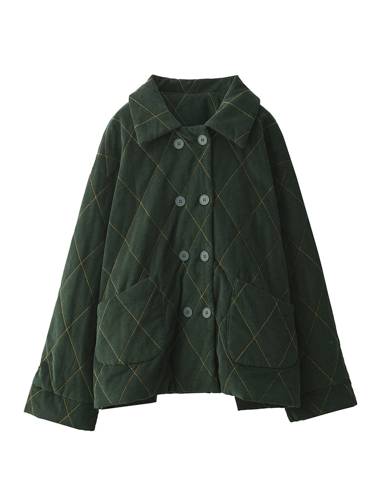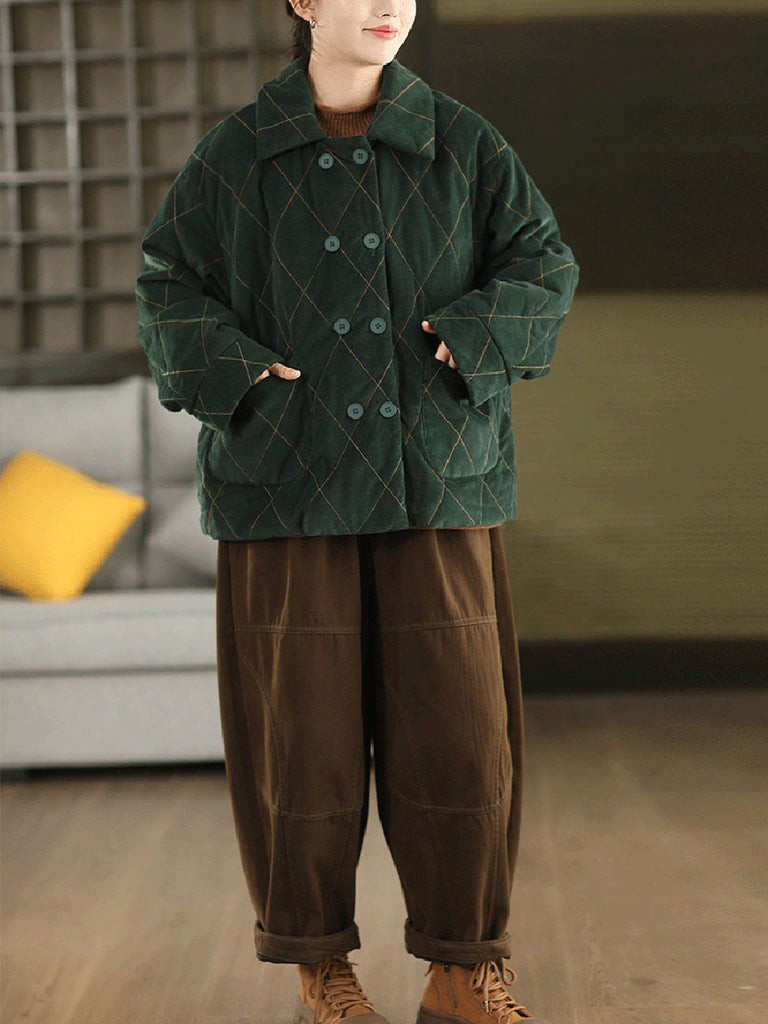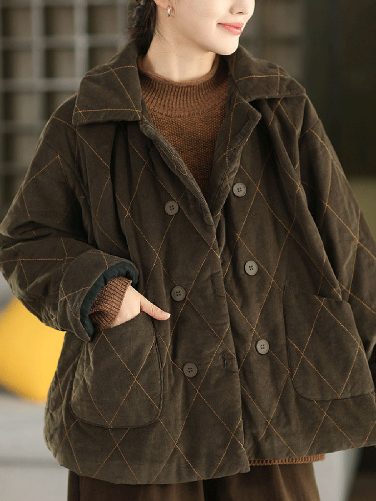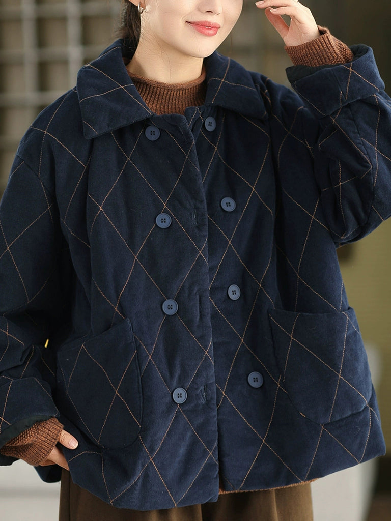 Chaqueta acolchada con cuello vuelto y romboides vintage para mujer