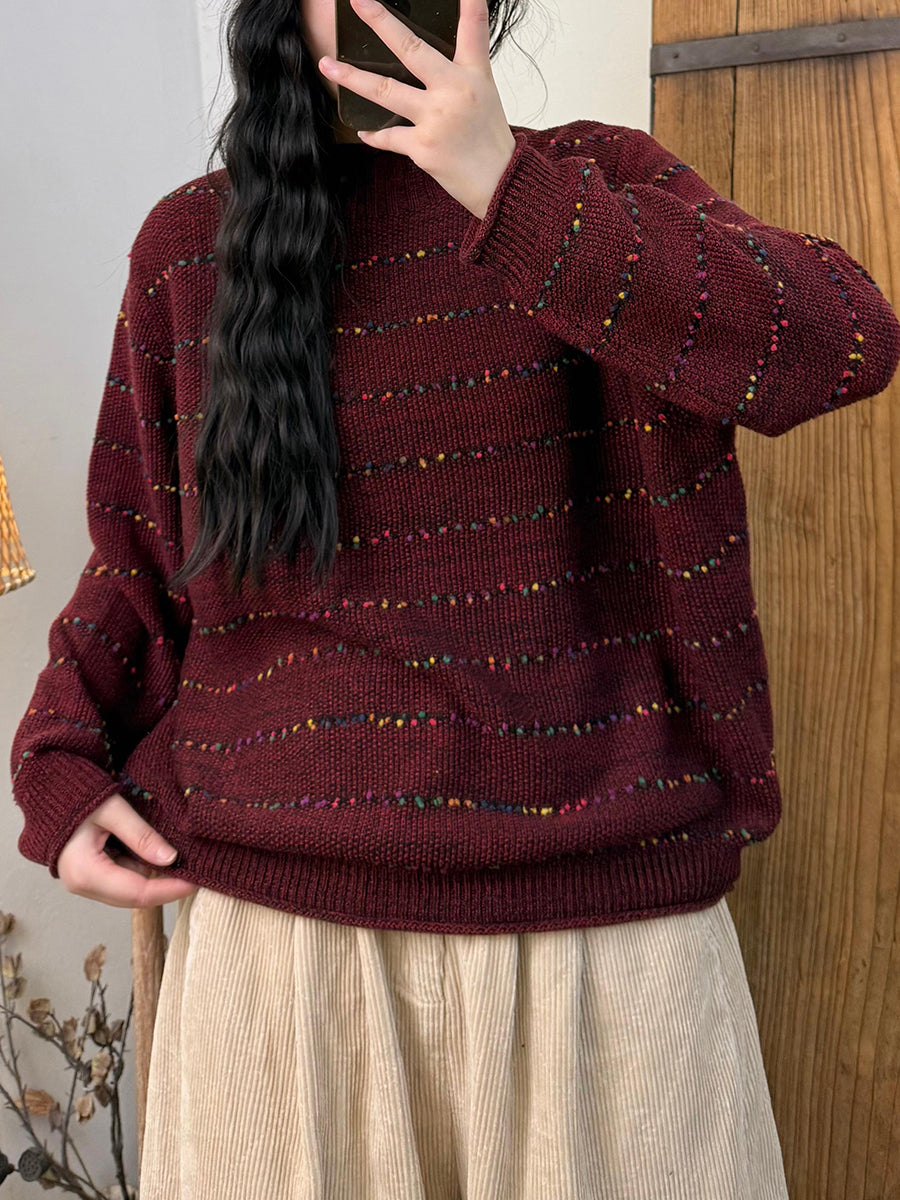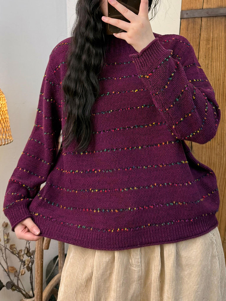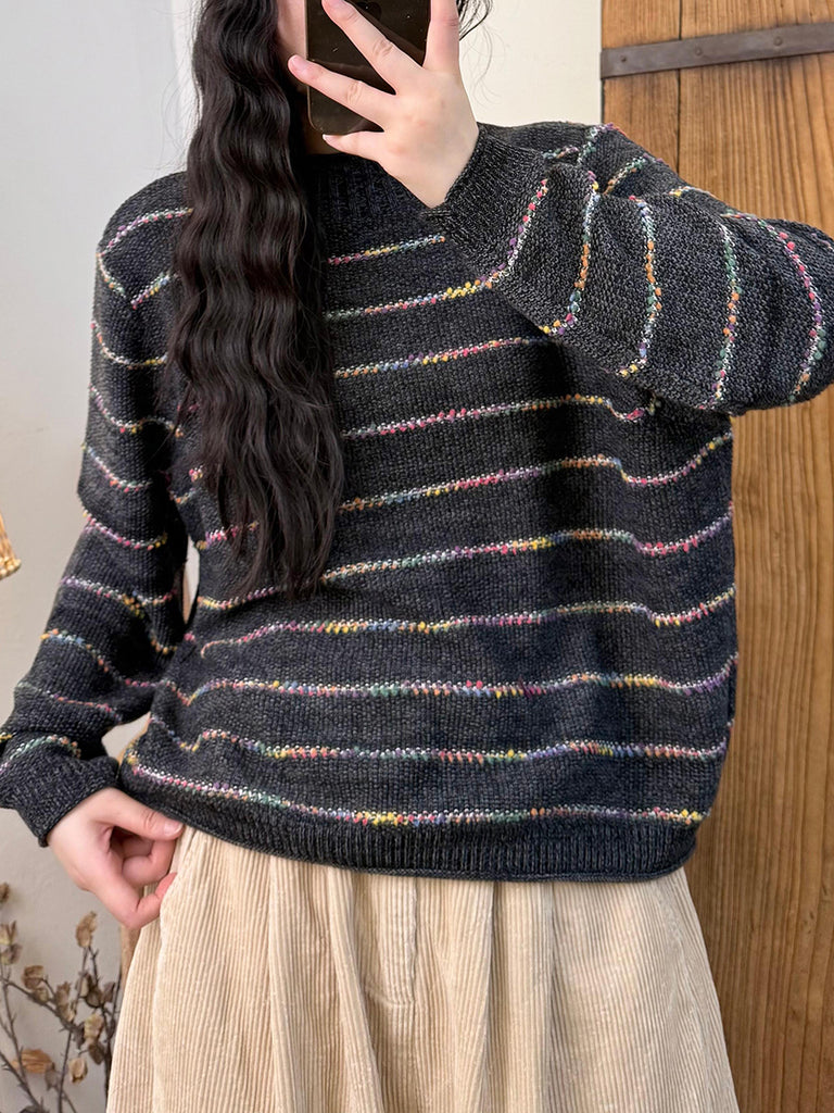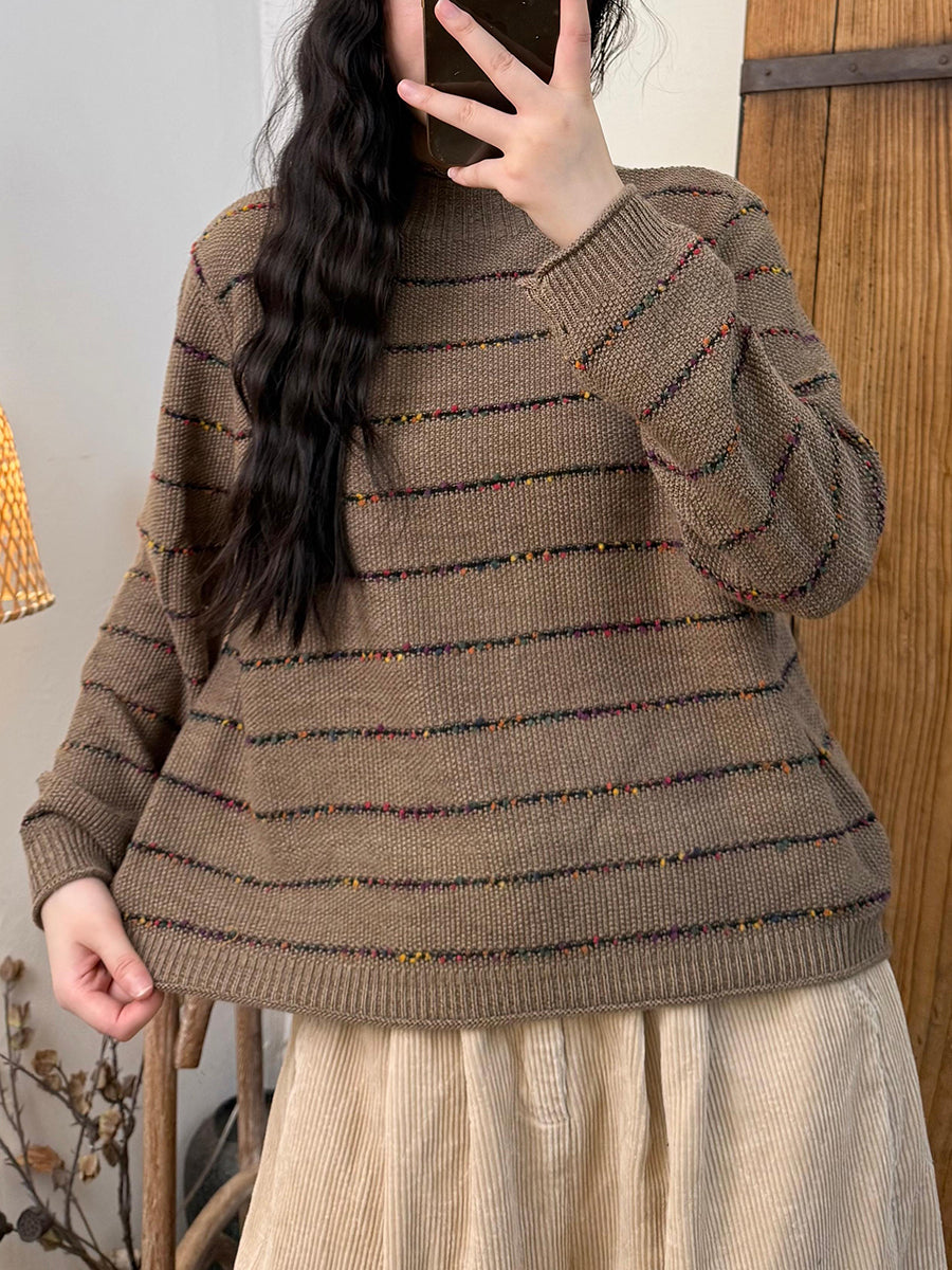 Suéter de punto con cuello alto y rayas vintage para mujer