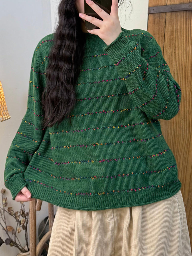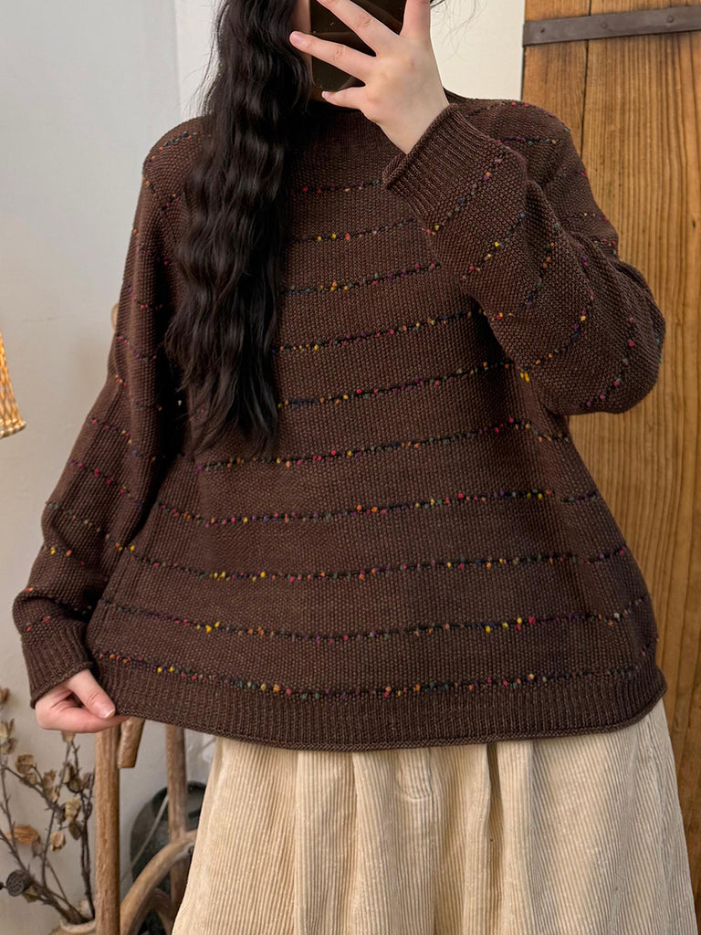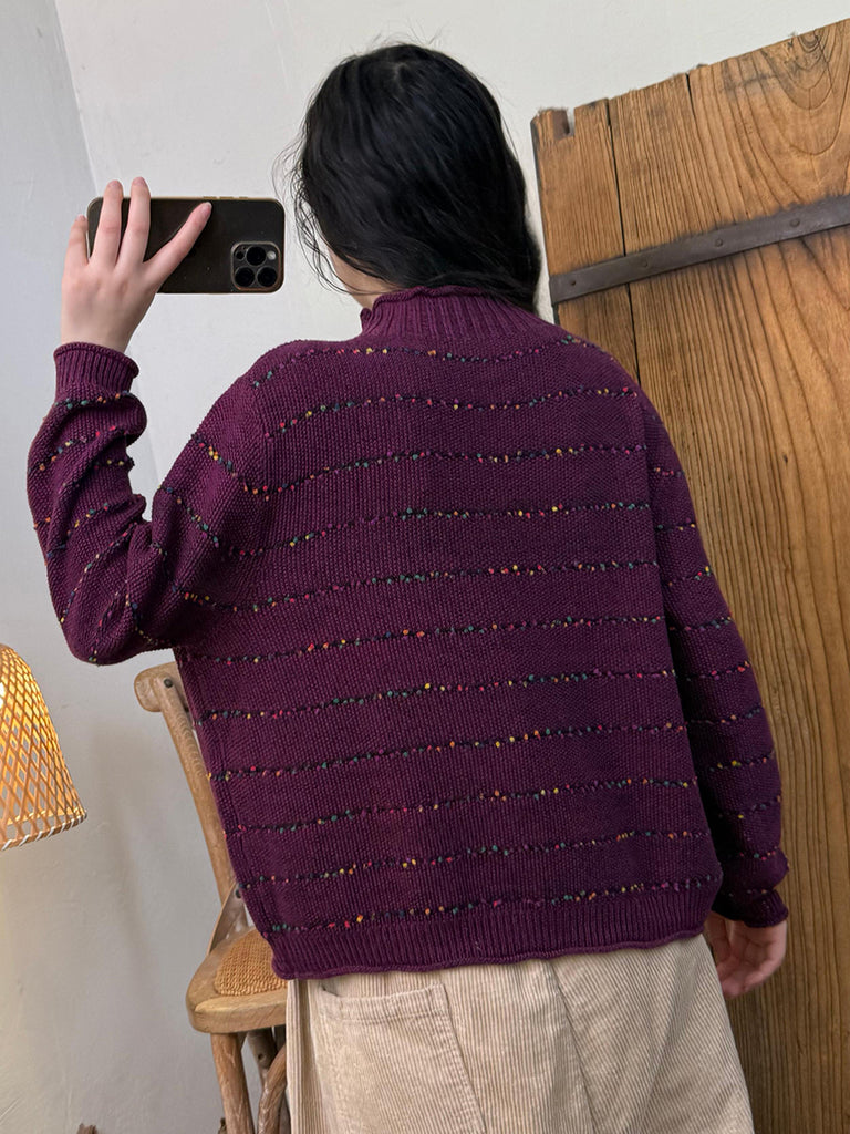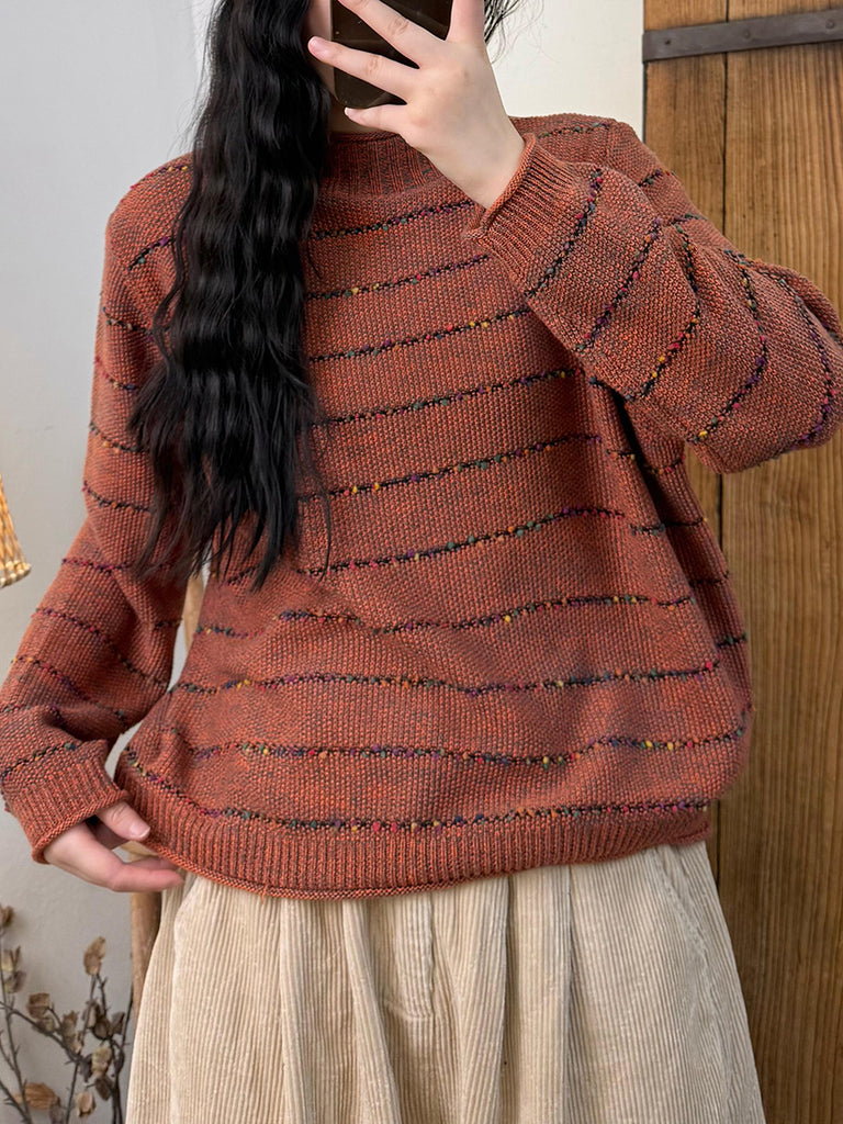 Suéter de punto con cuello alto y rayas vintage para mujer