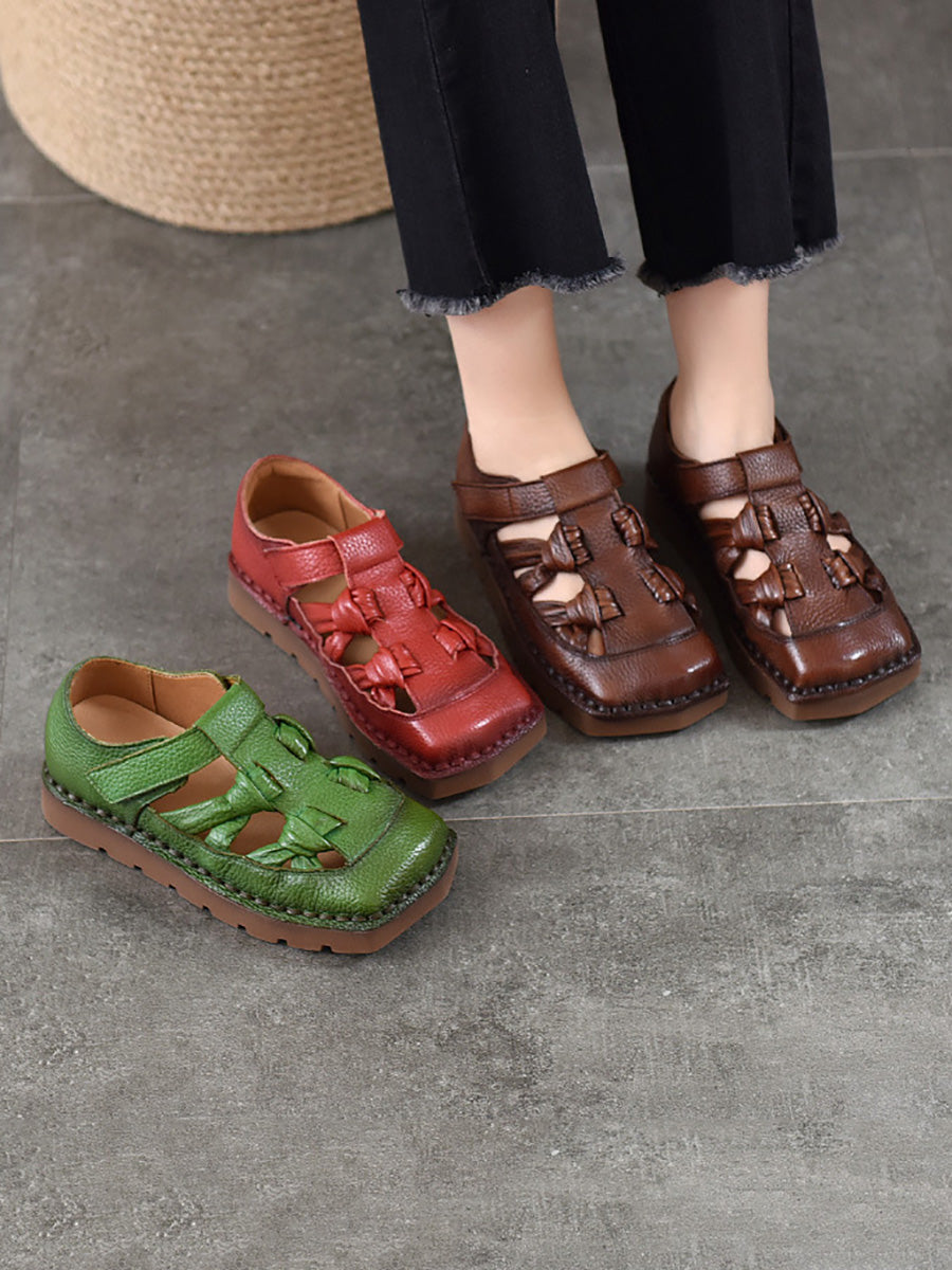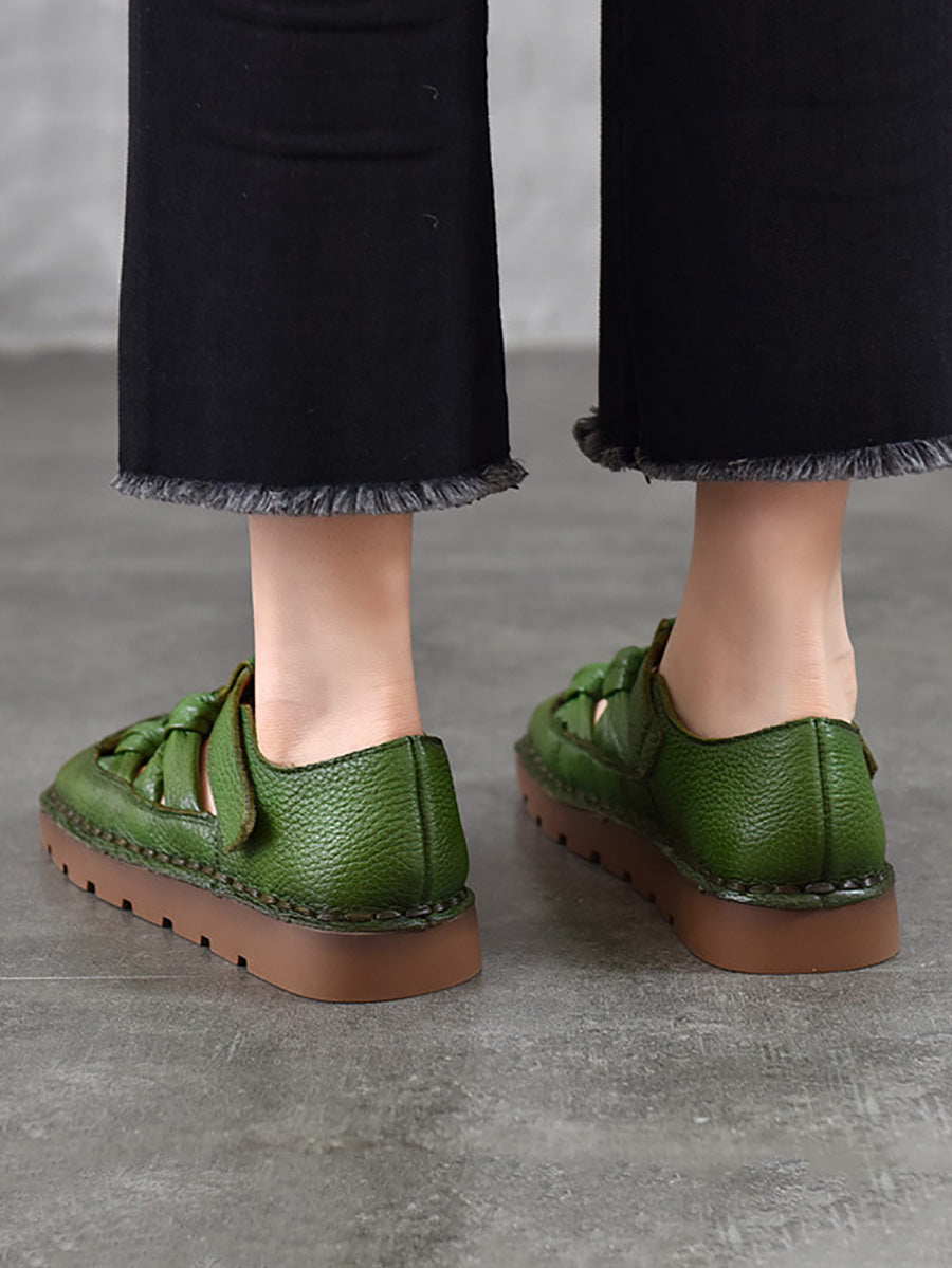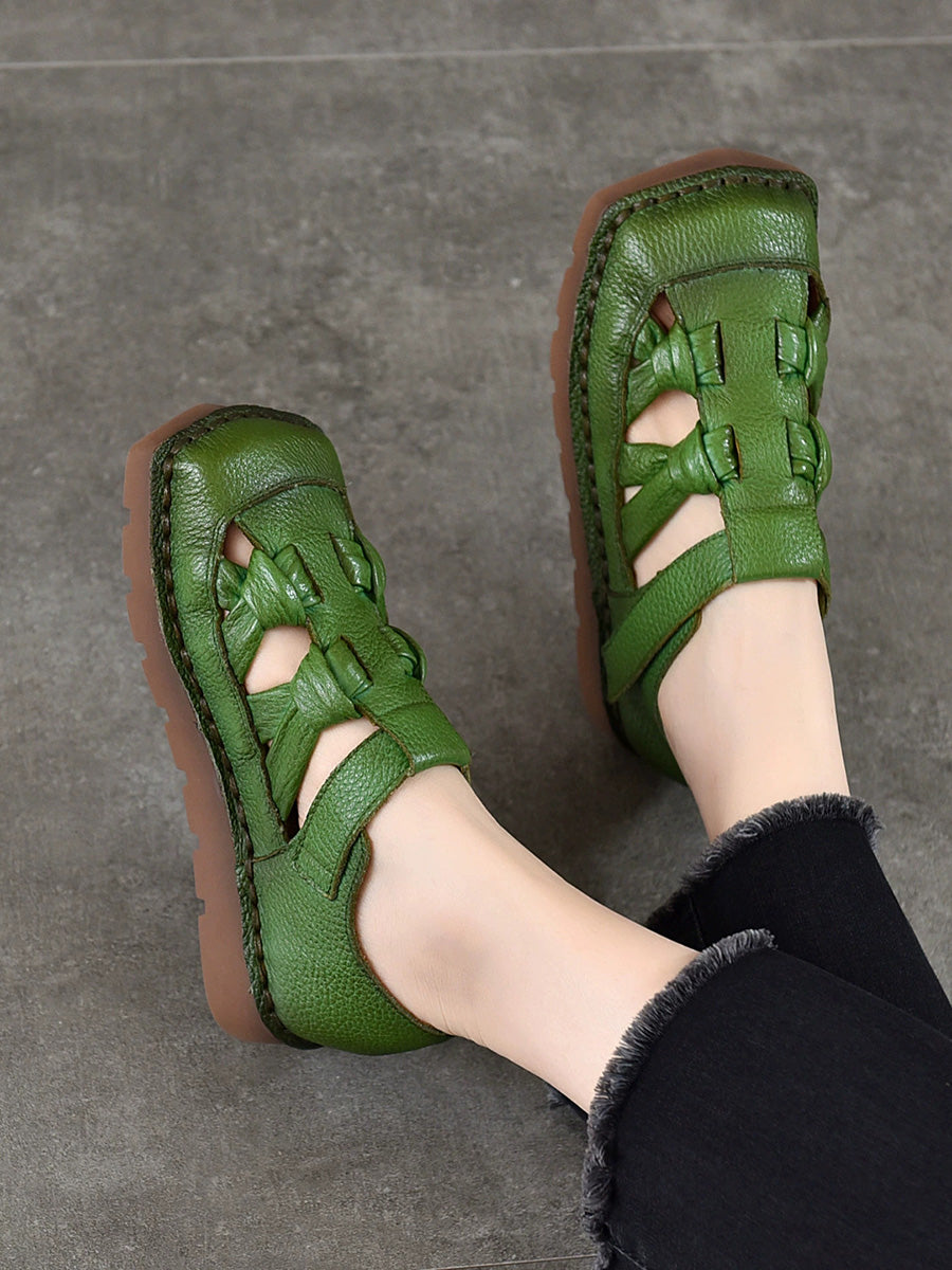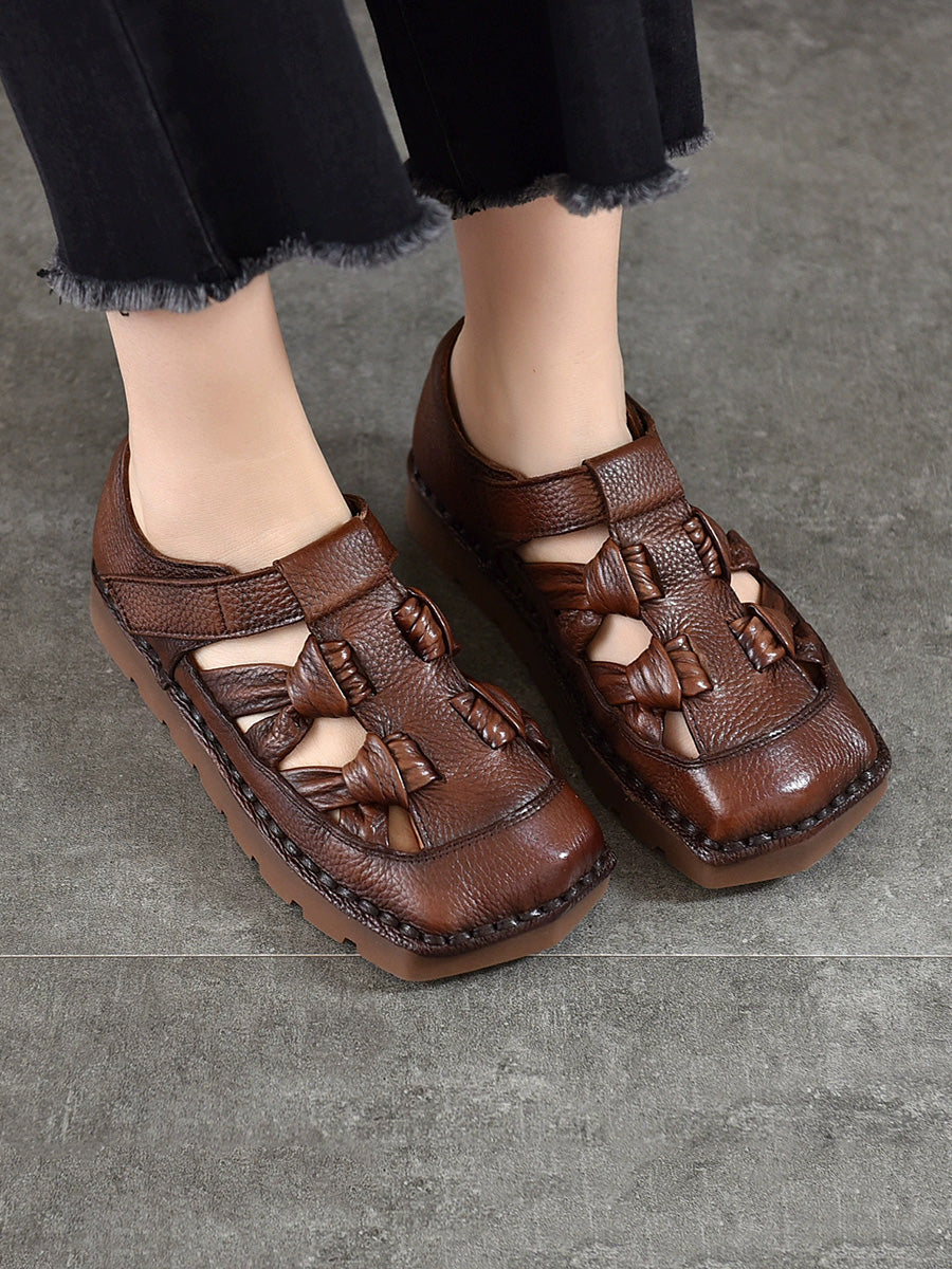 Sandalias de mujer de cuero tejido estilo vintage para verano