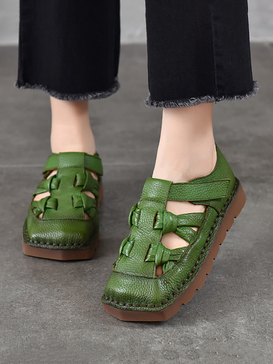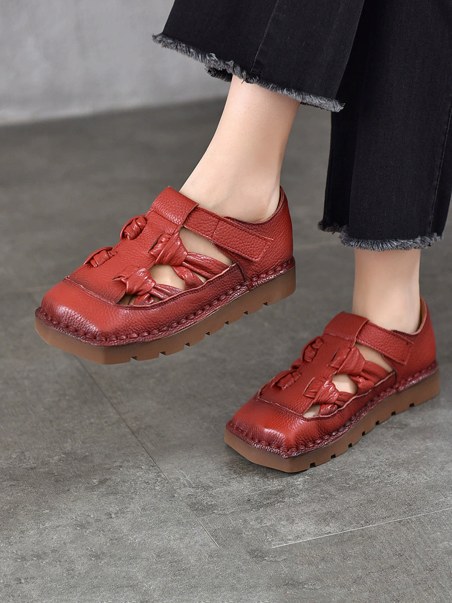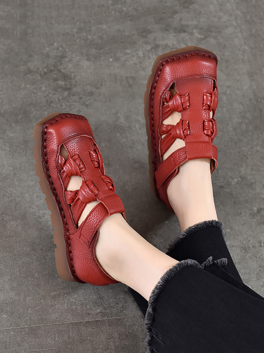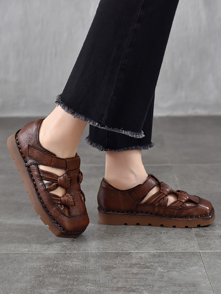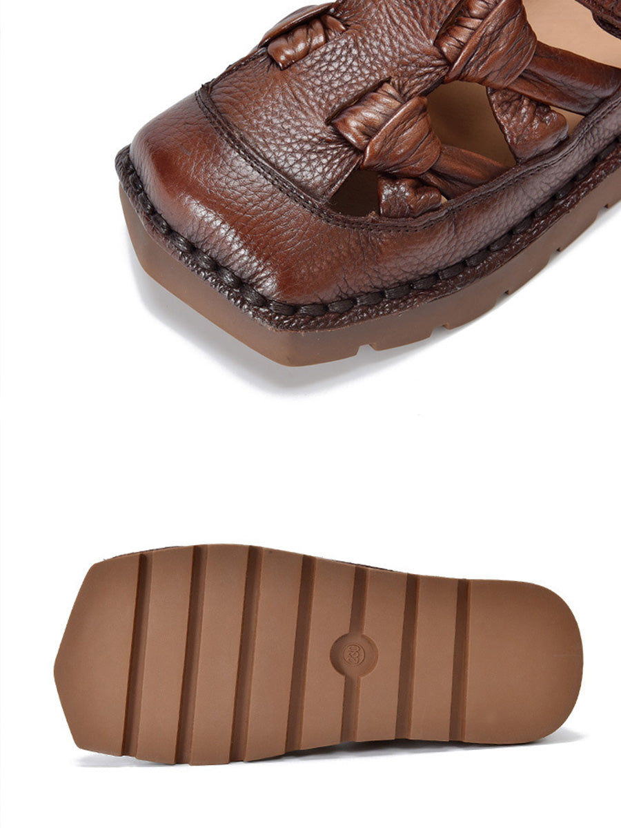 Sandalias de mujer de cuero tejido estilo vintage para verano