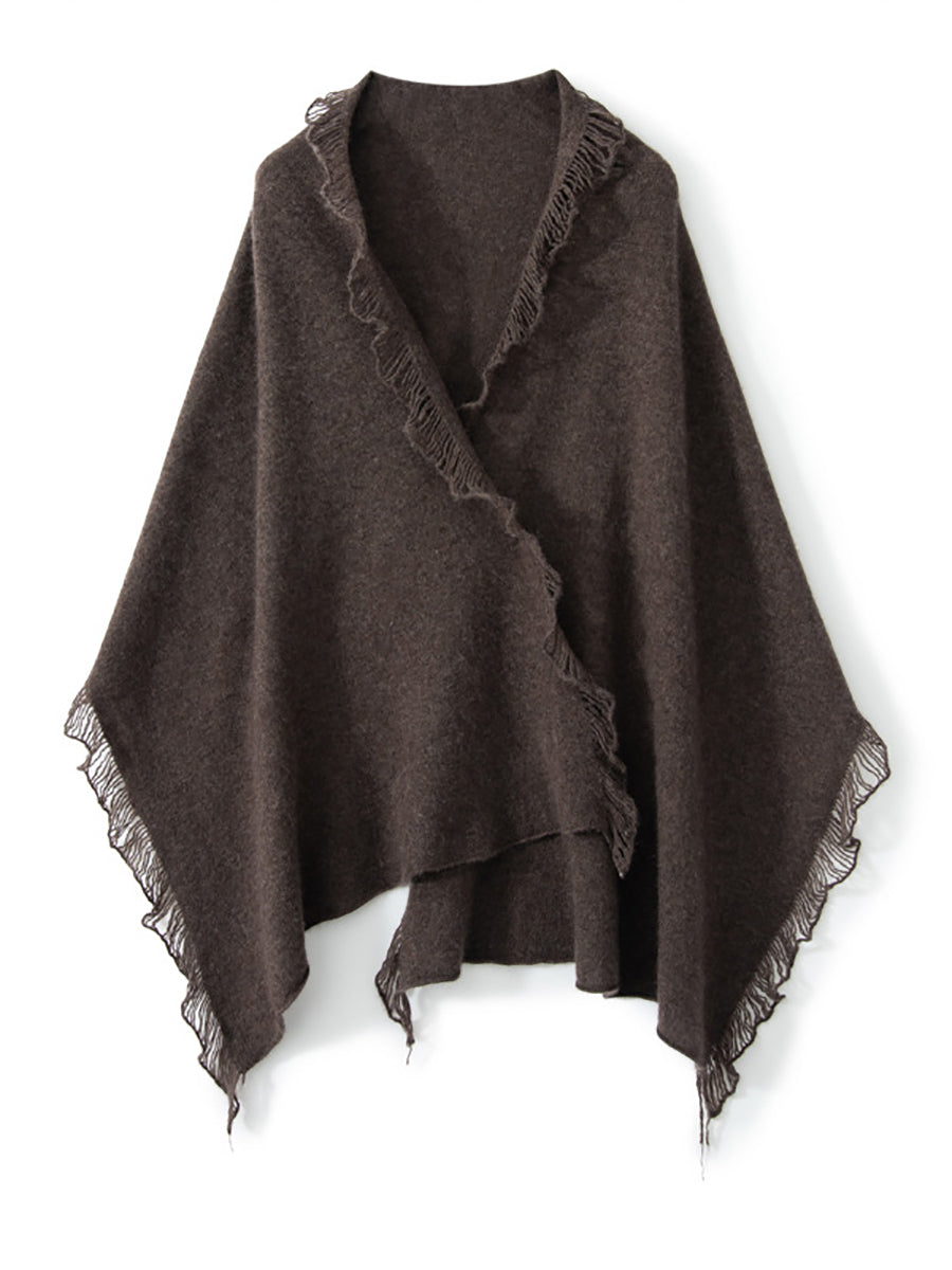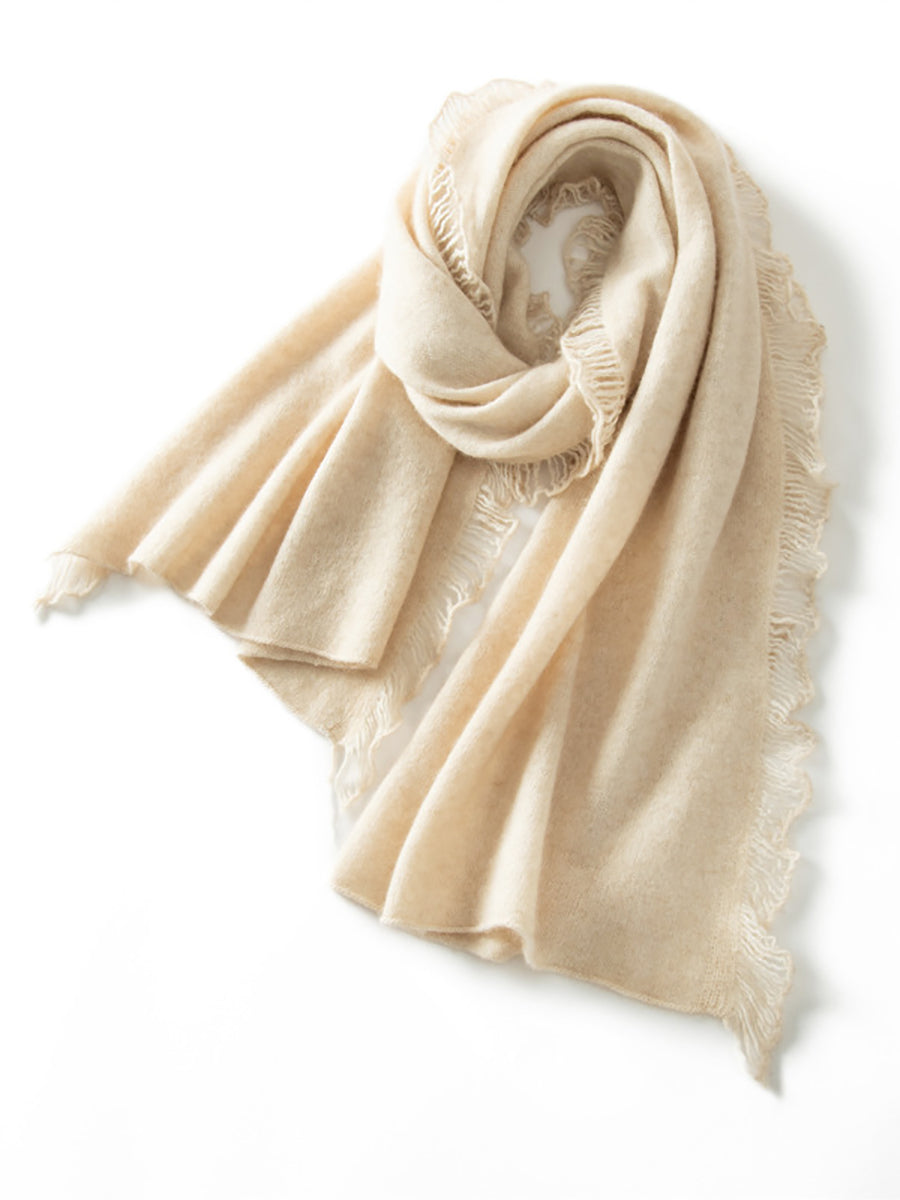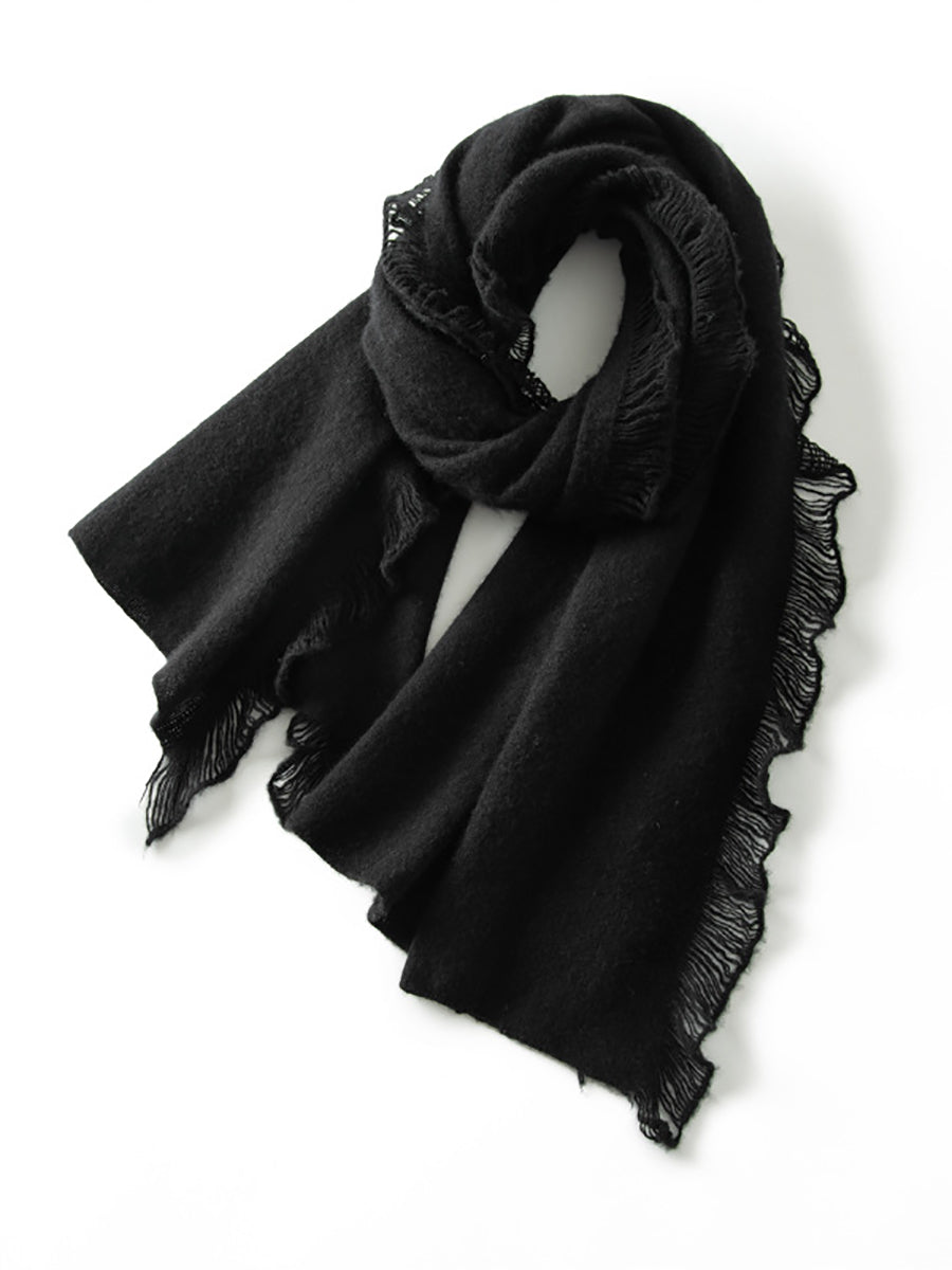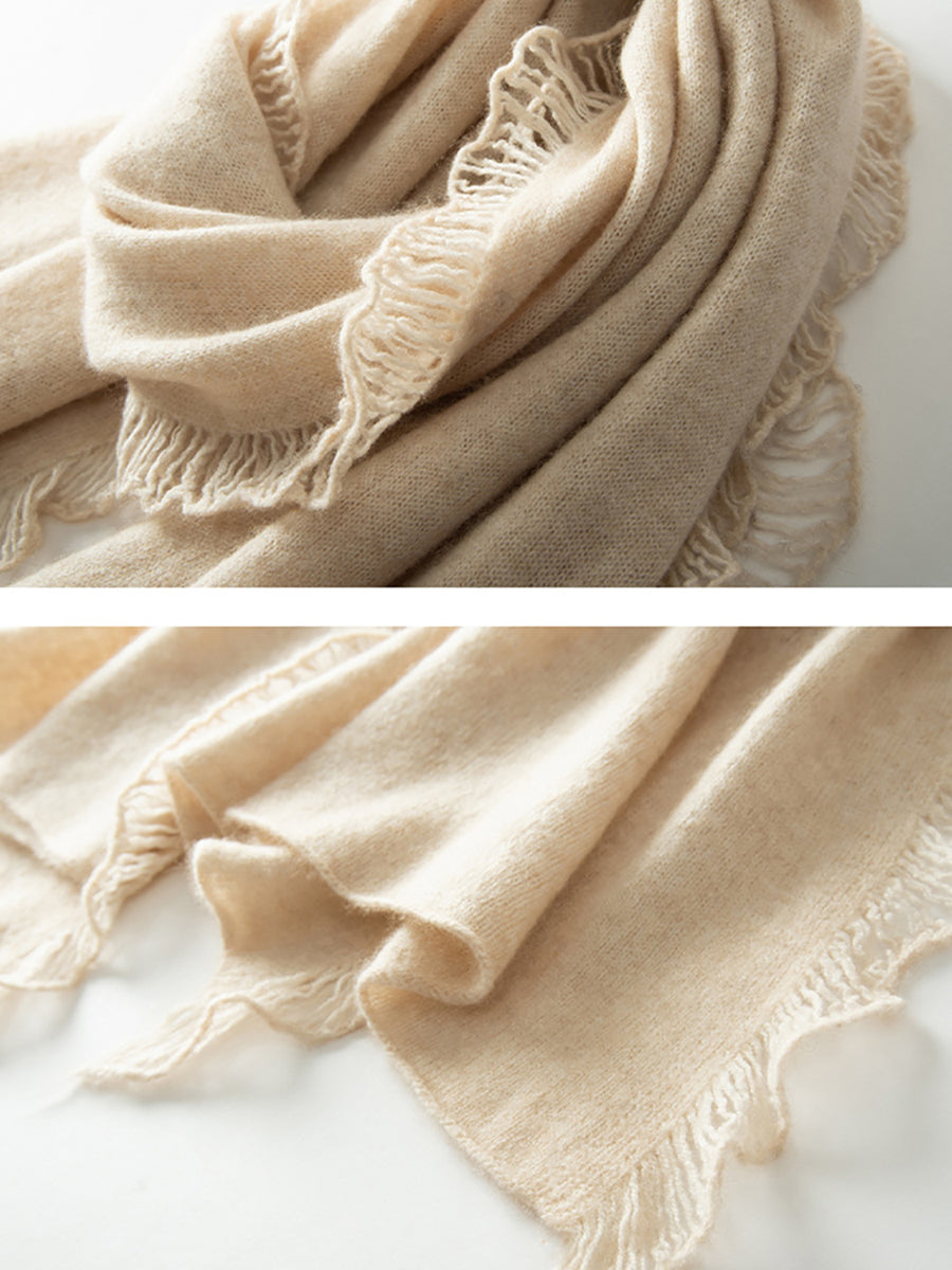 Bufanda con borlas lisas de cachemira cálida vintage para mujer