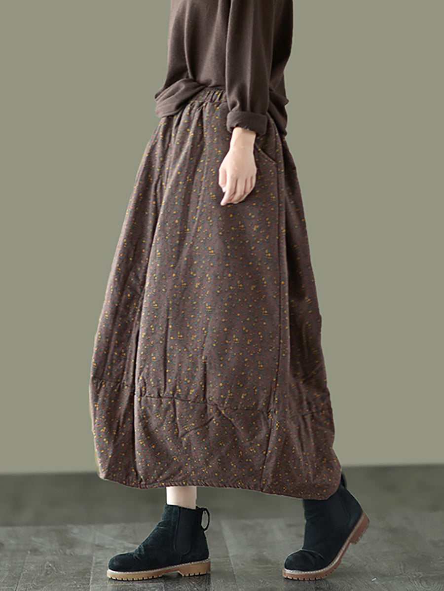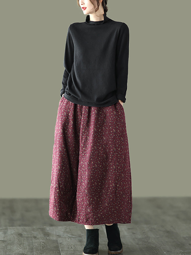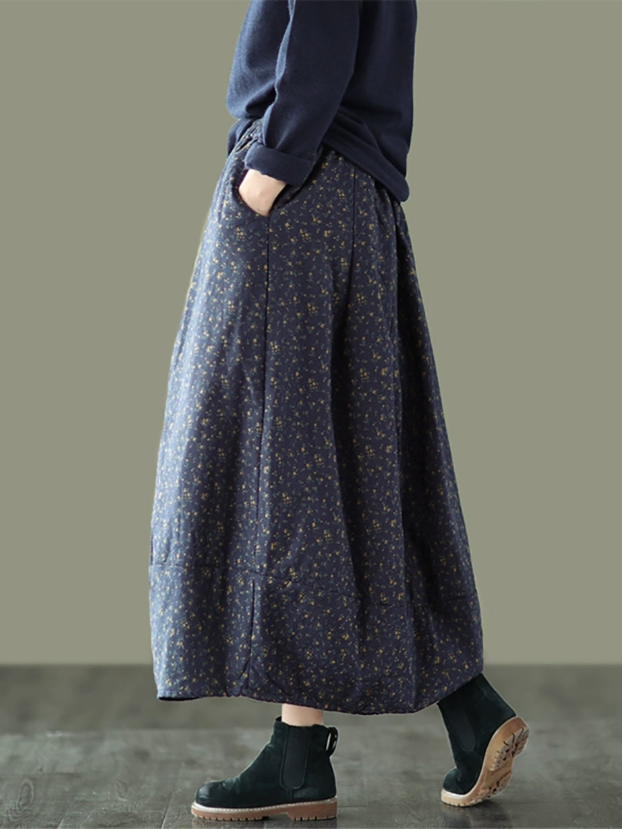 Falda acolchada con estampado floral artístico de invierno para mujer