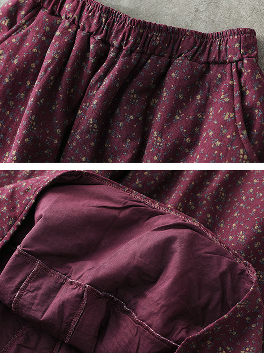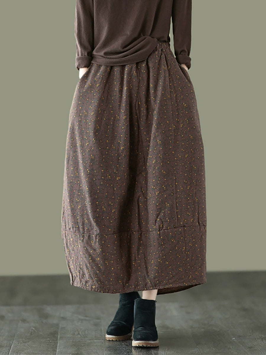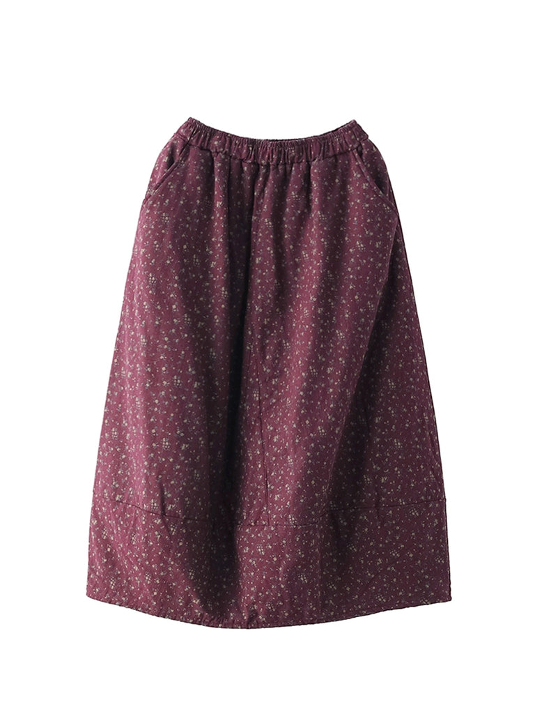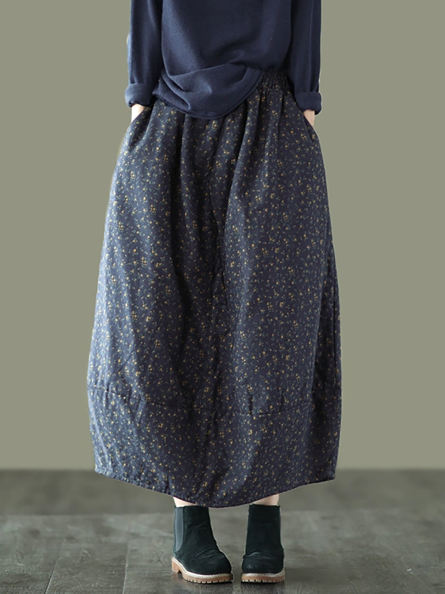Falda acolchada con estampado floral artístico de invierno para mujer