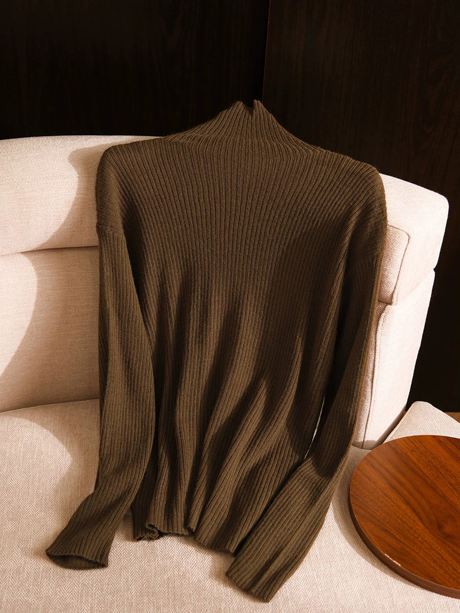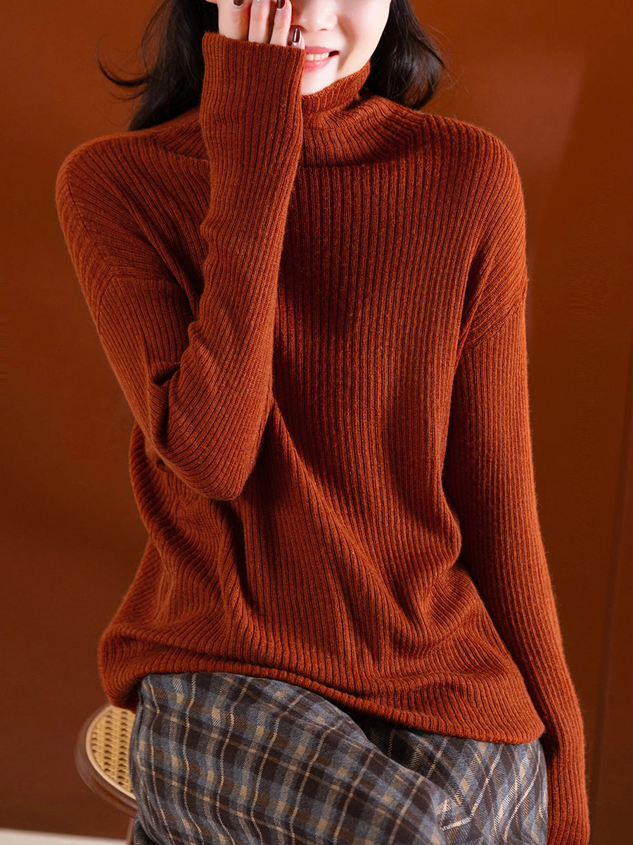 Suéter de cuello alto de punto artístico de invierno para mujer