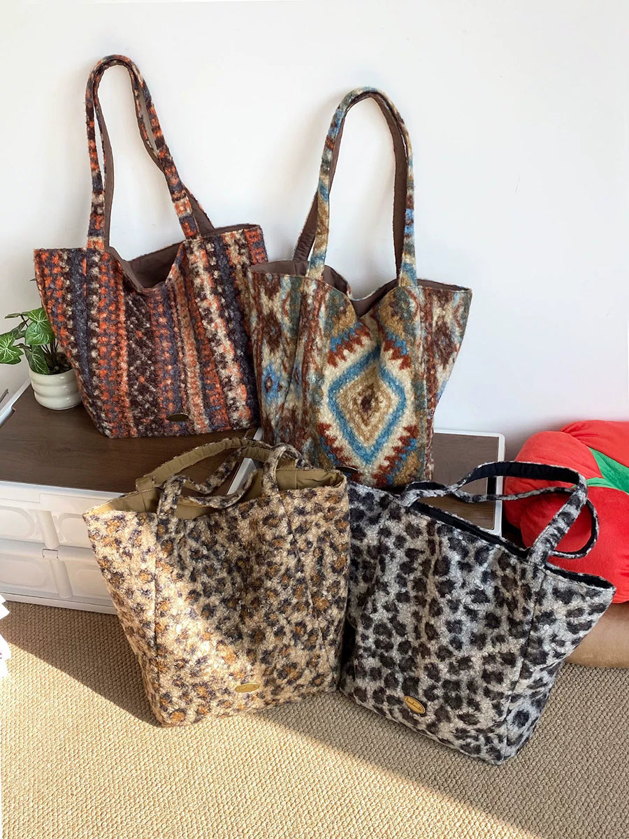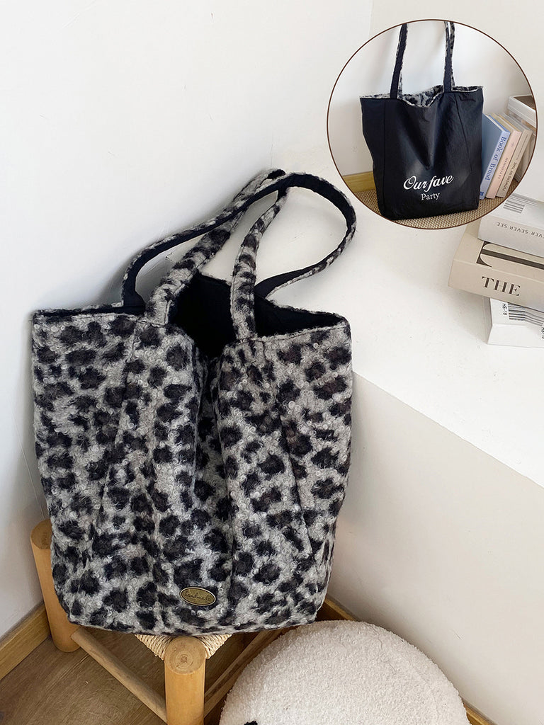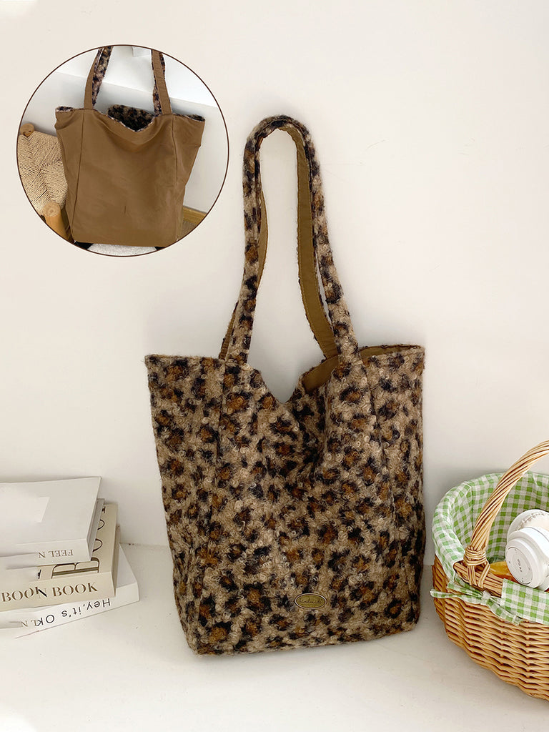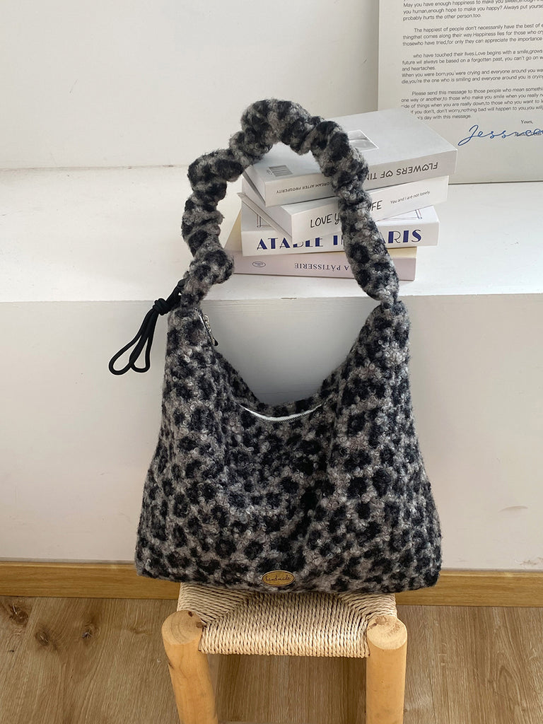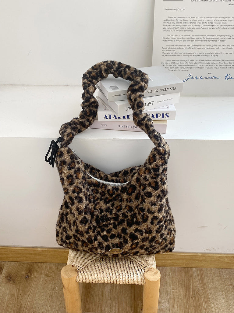 Bolso de hombro de polar con estampado de leopardo artístico de invierno para mujer