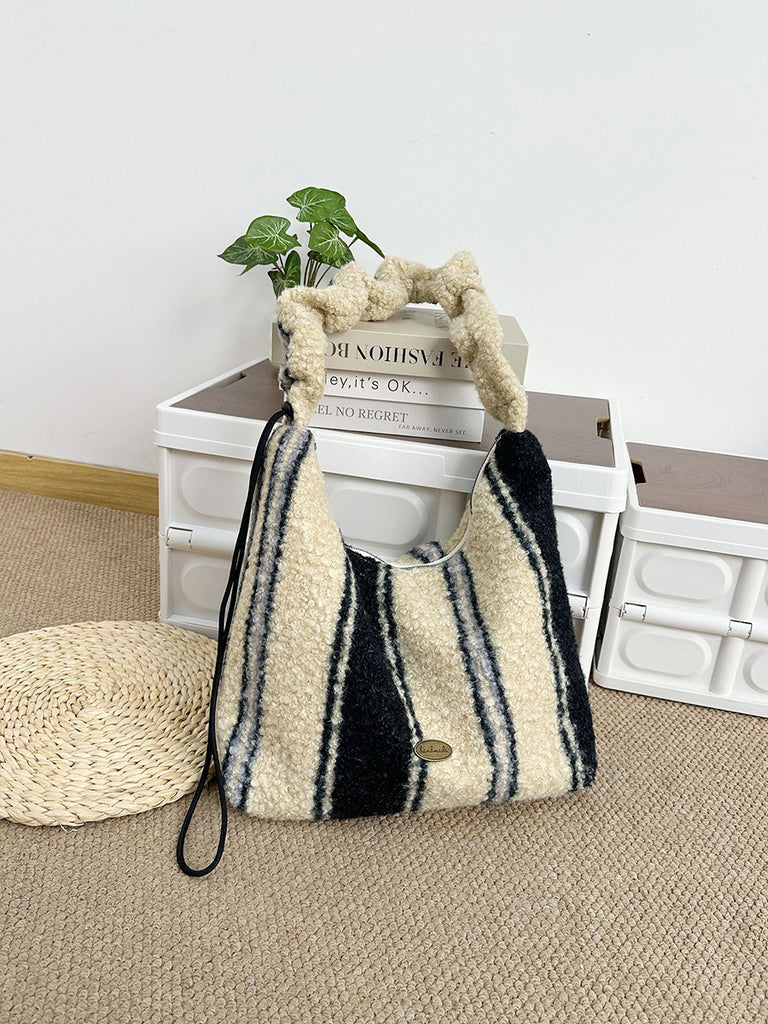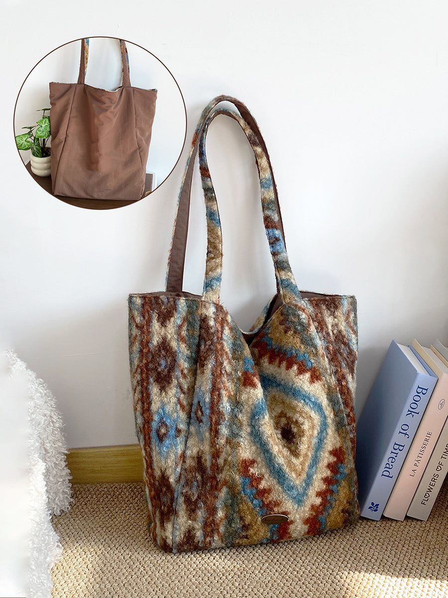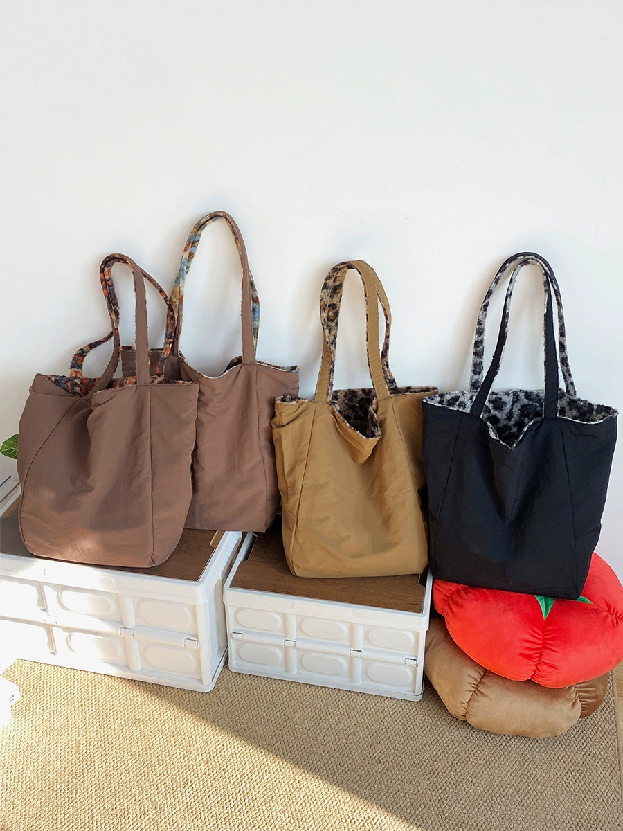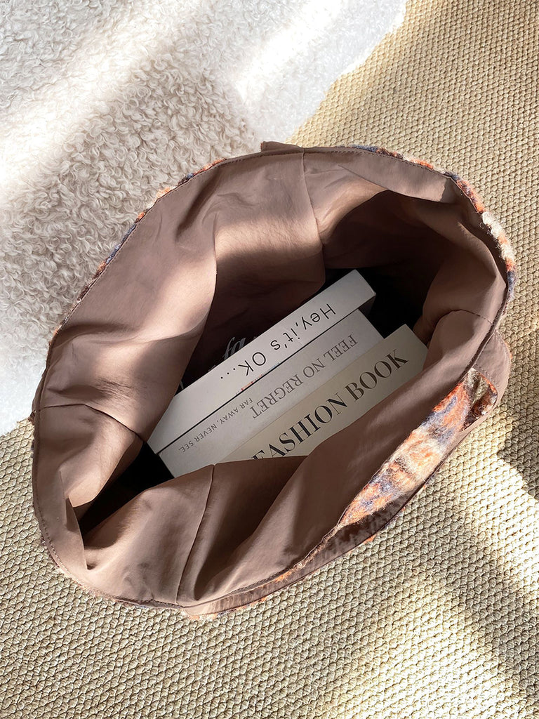 Bolso de hombro de polar con estampado de leopardo artístico de invierno para mujer