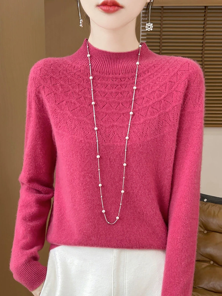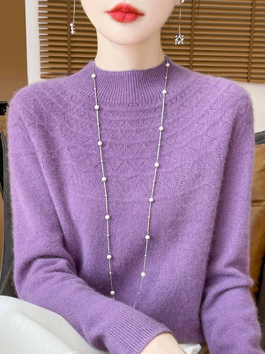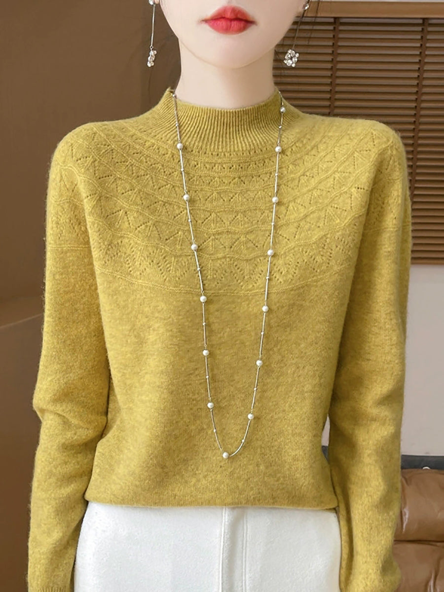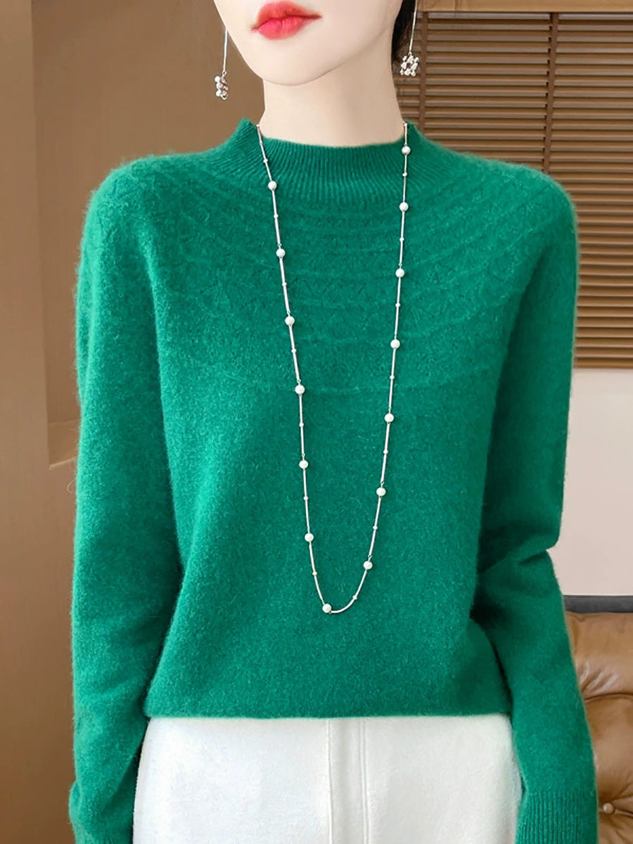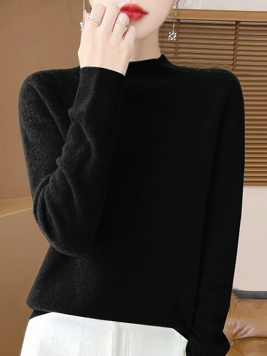 Suéter de cuello alto medio de color puro y artístico de invierno para mujer