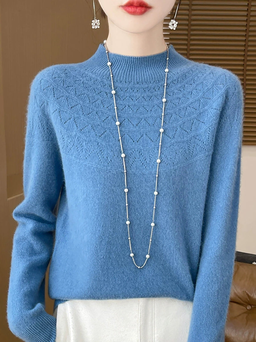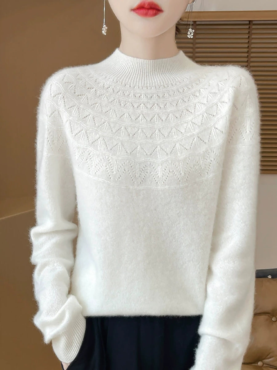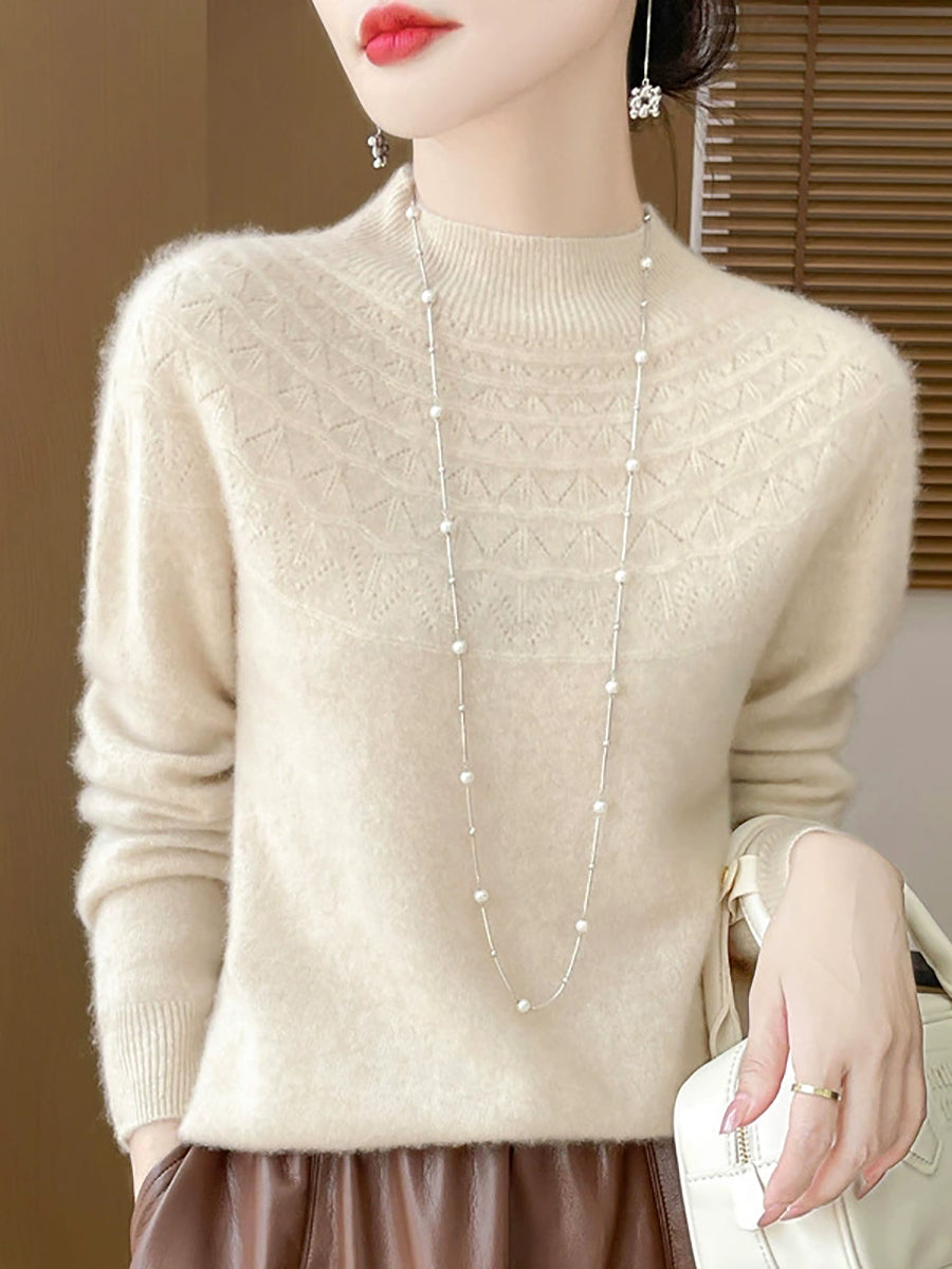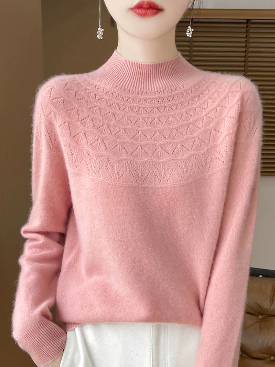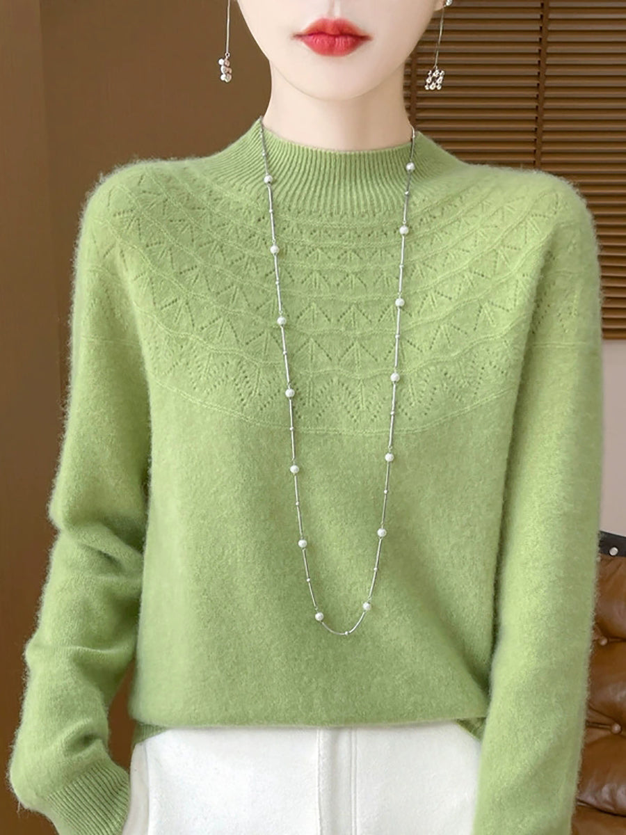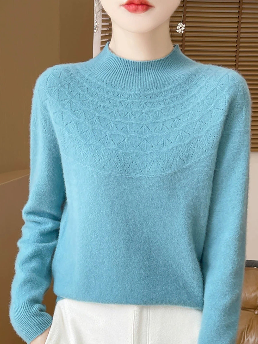 Suéter de cuello alto medio de color puro y artístico de invierno para mujer