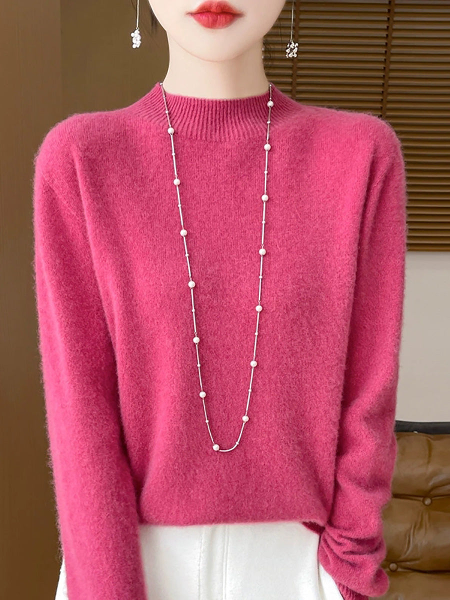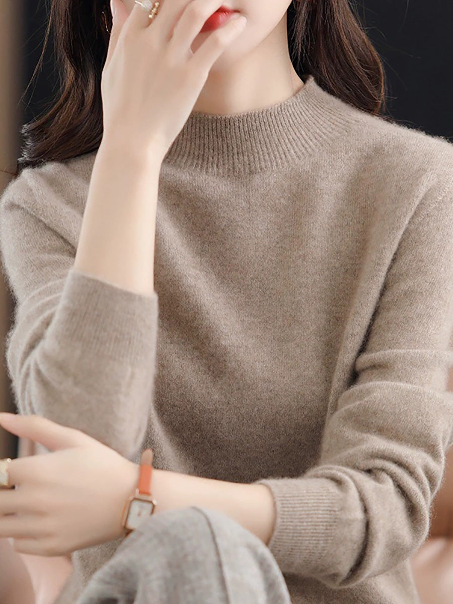 Suéter de cuello alto medio de color puro y artístico de invierno para mujer