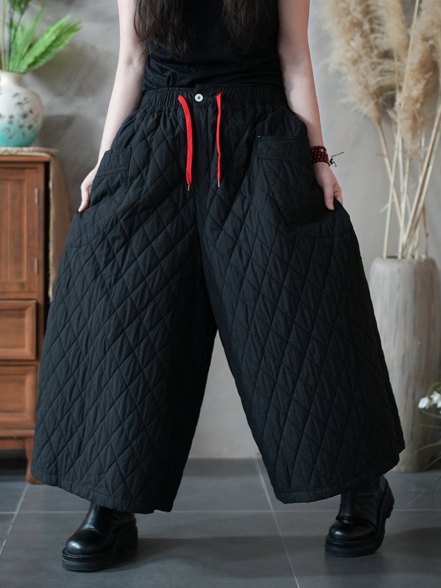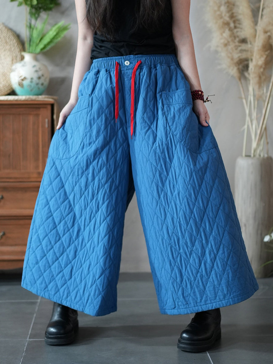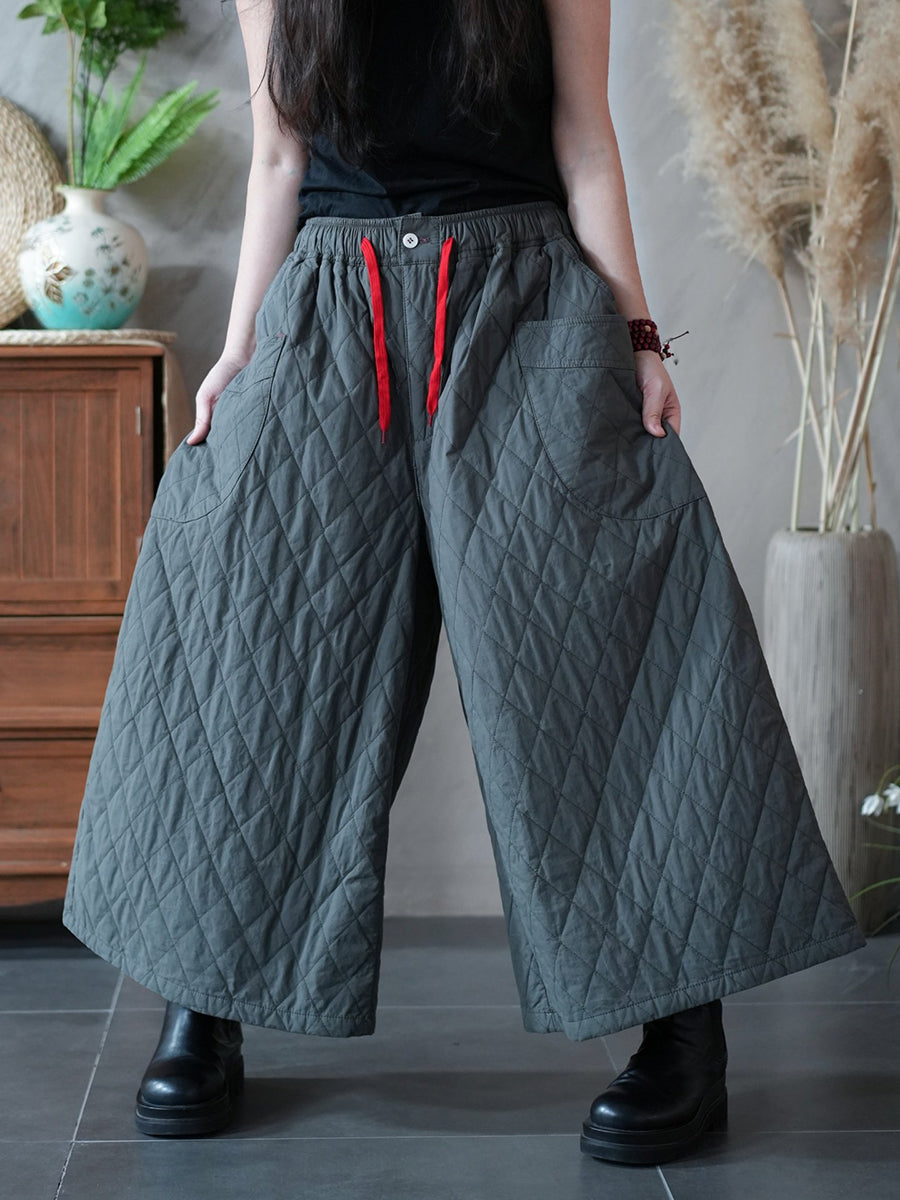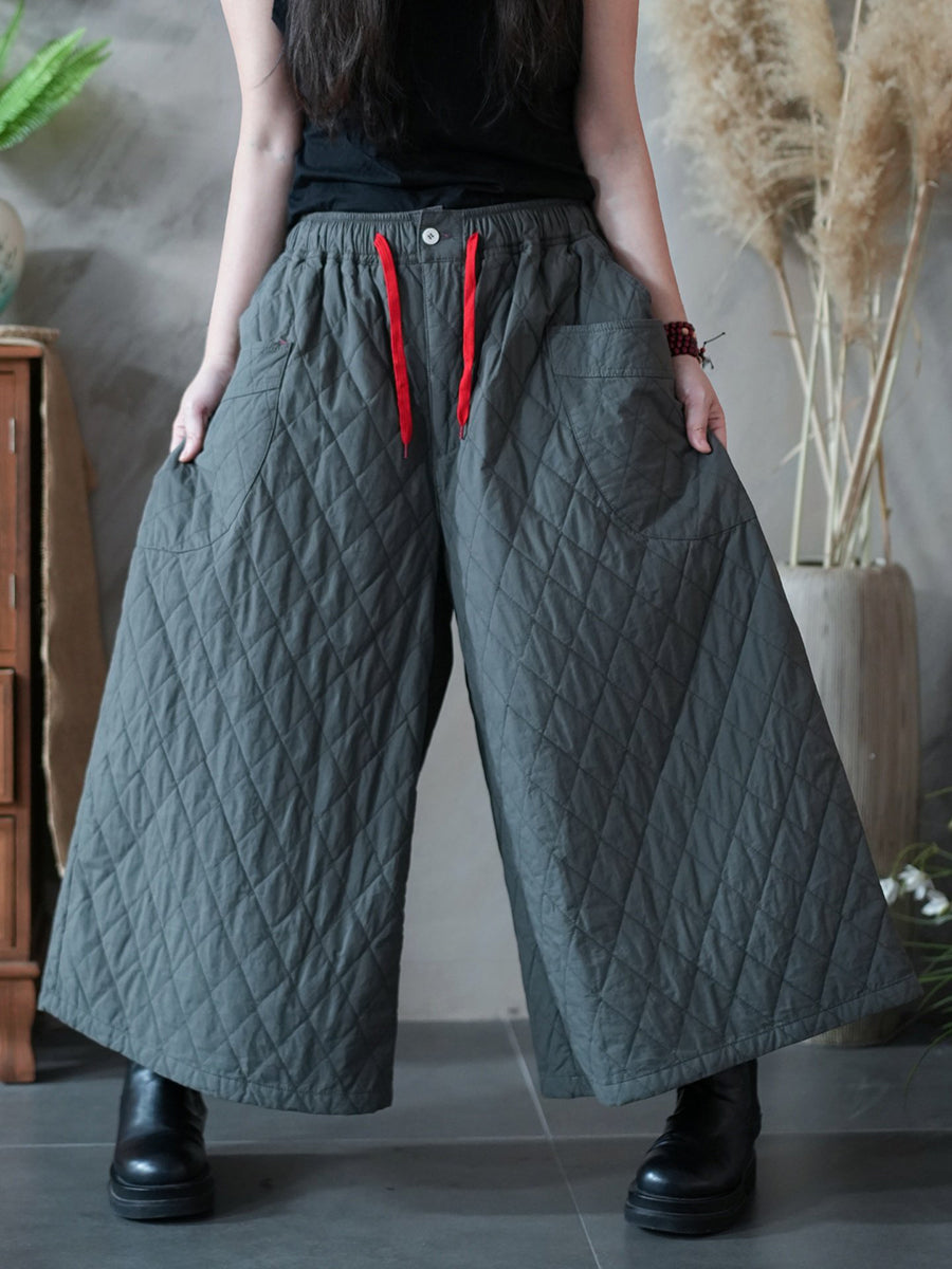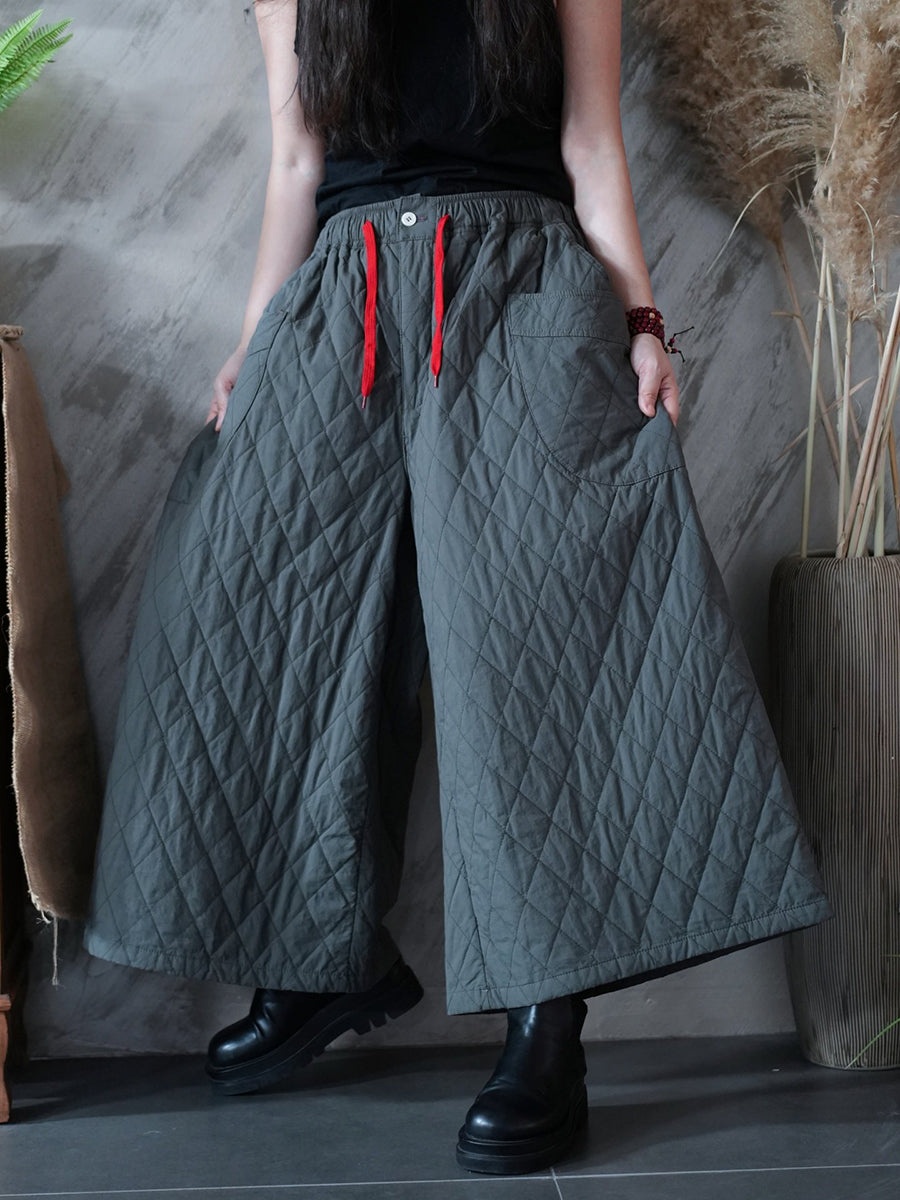 Pantalones anchos acolchados de color puro Artsy de invierno para mujer