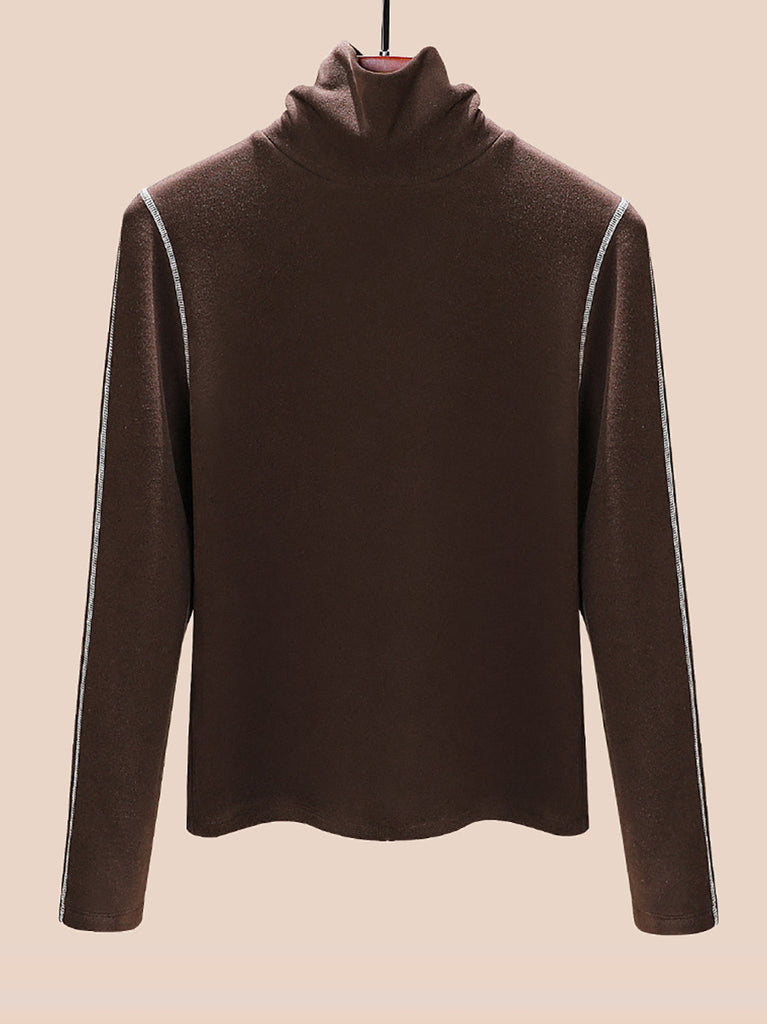 Blusa informal de cuello alto con forro polar para mujer, de invierno
