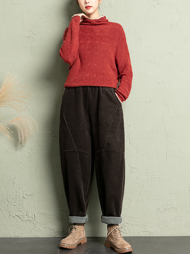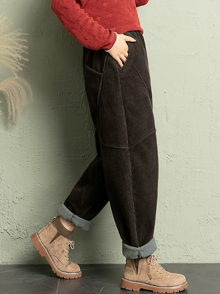 Pantalones harén de pana de color puro informales de invierno para mujer
