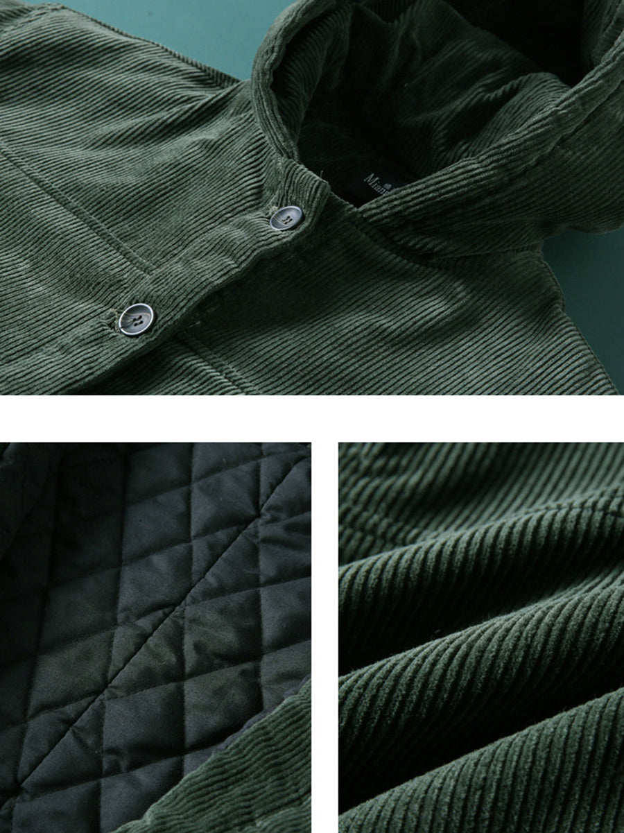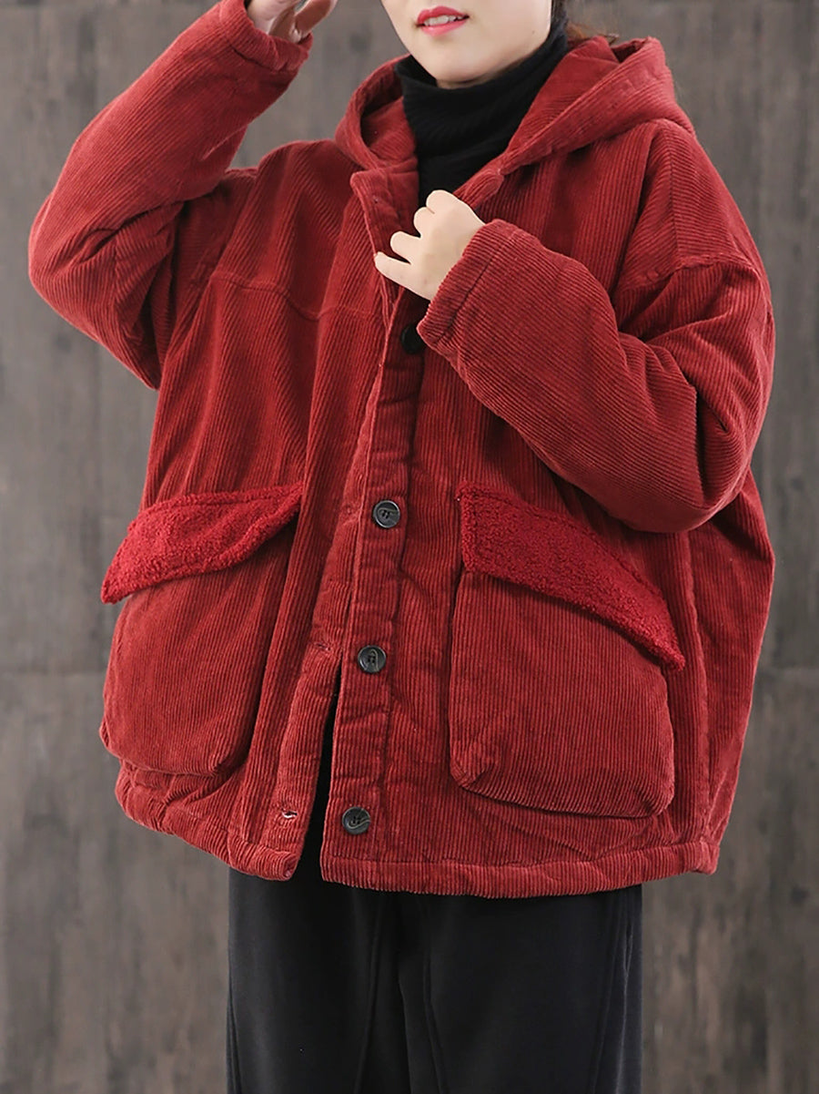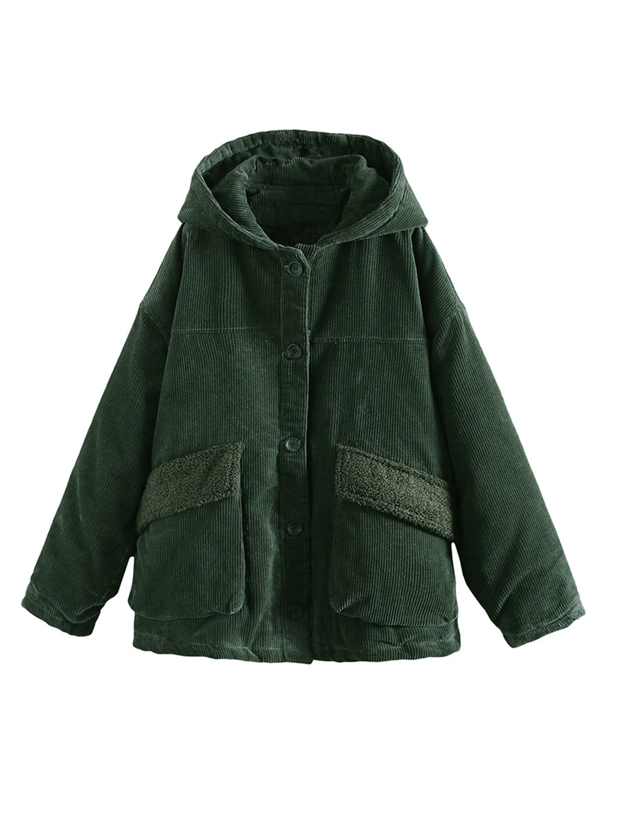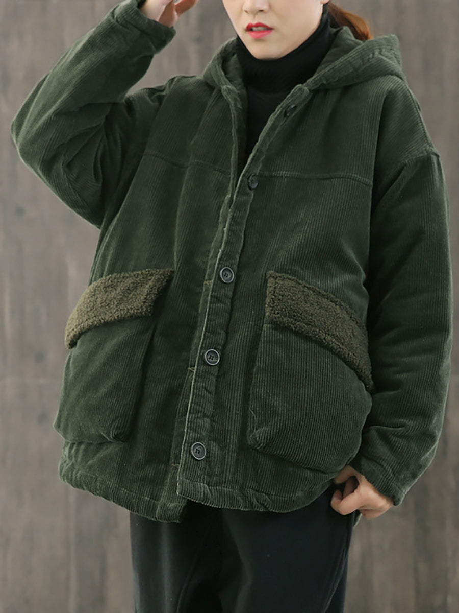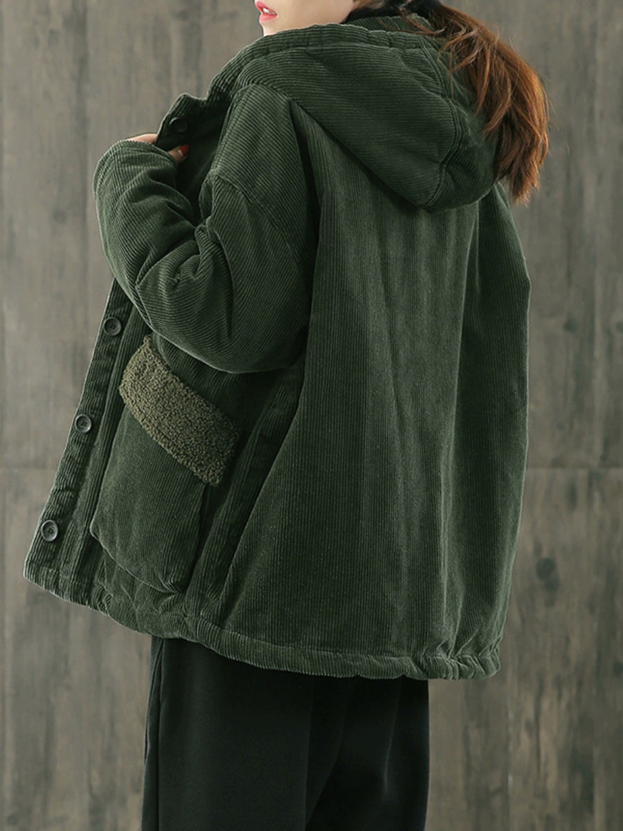Abrigo acolchado con capucha de pana de color liso para mujer, ideal para el invierno.