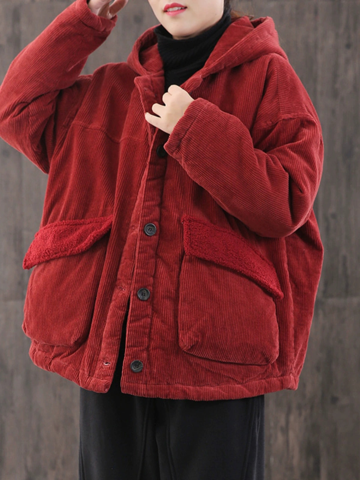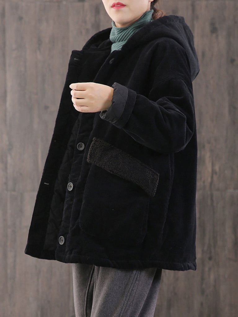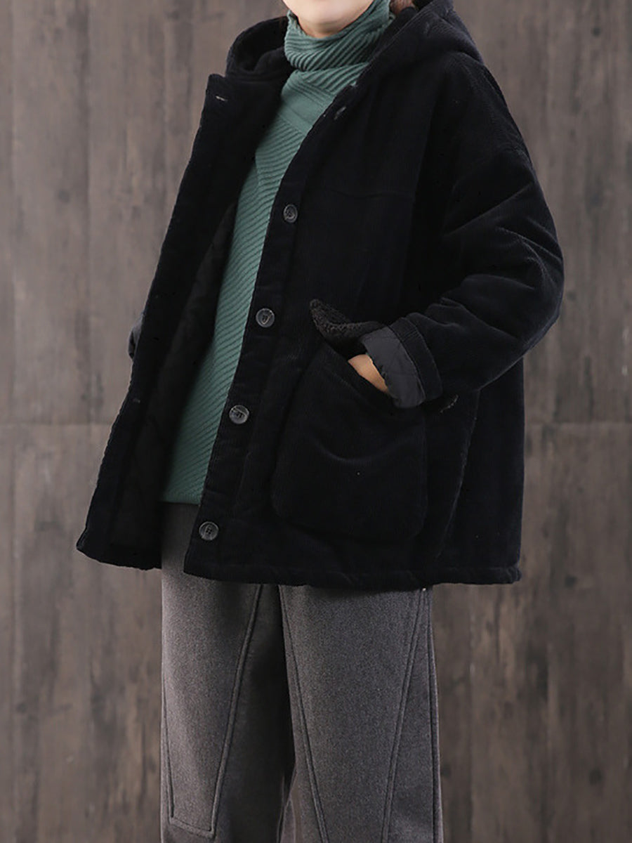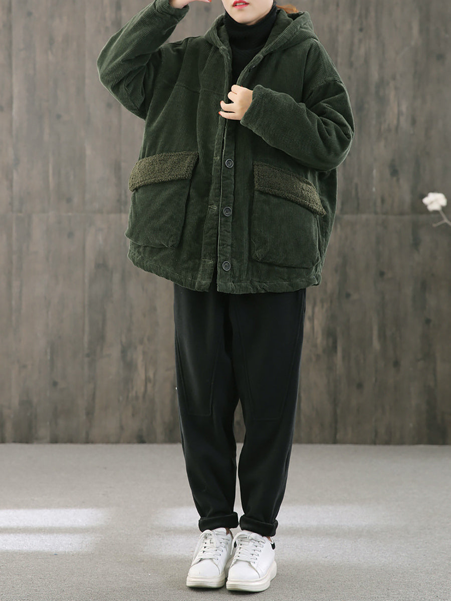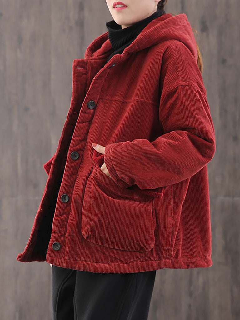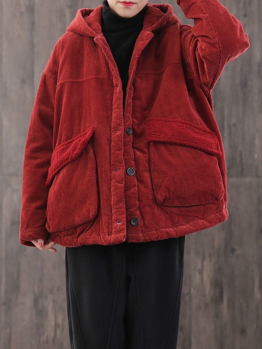 Abrigo acolchado con capucha de pana de color liso para mujer, ideal para el invierno.